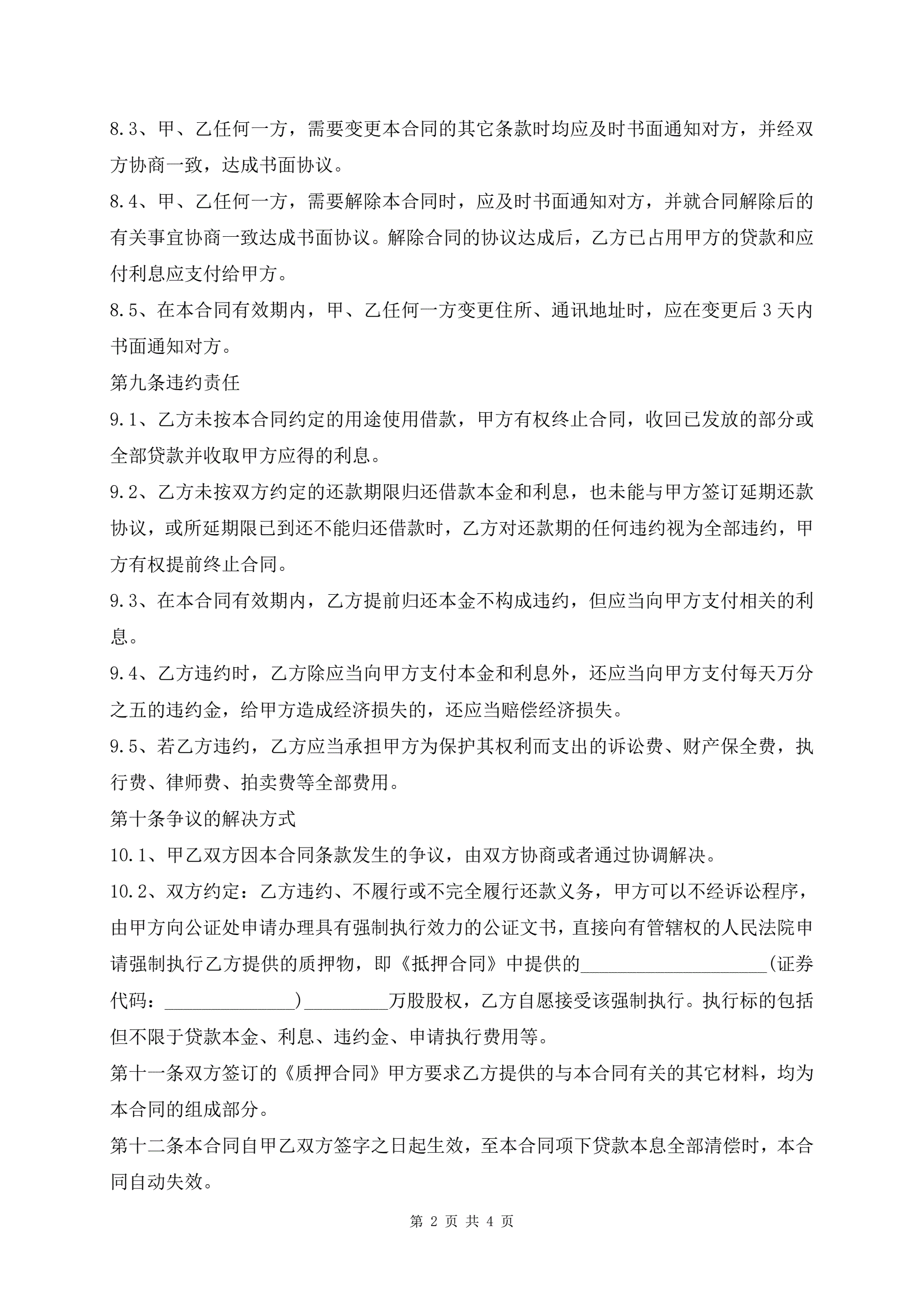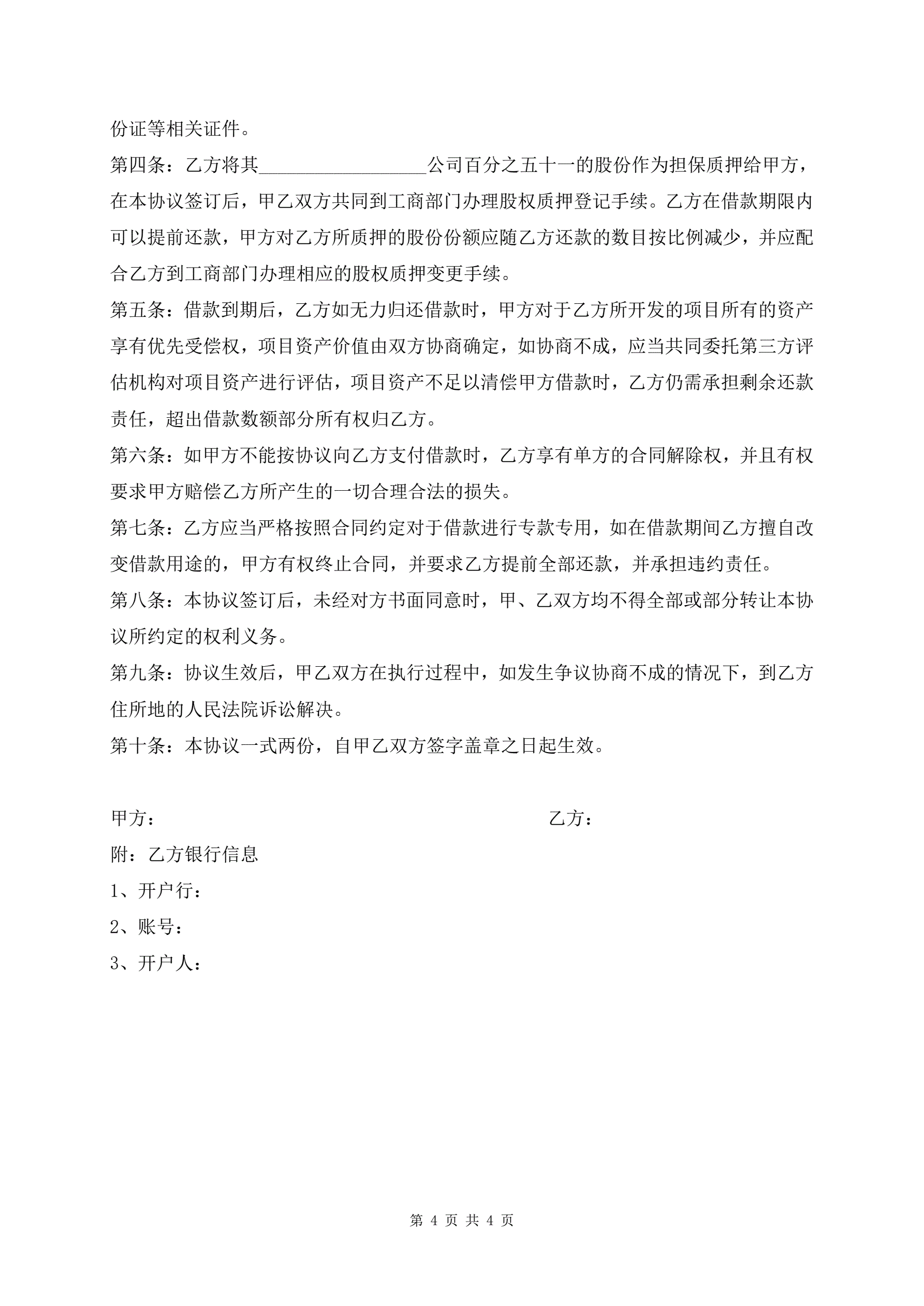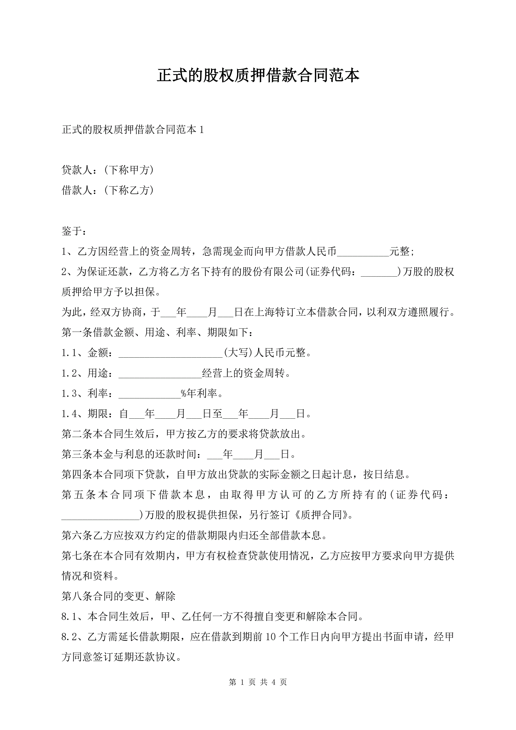 >正式的股权质押借款合同范本
