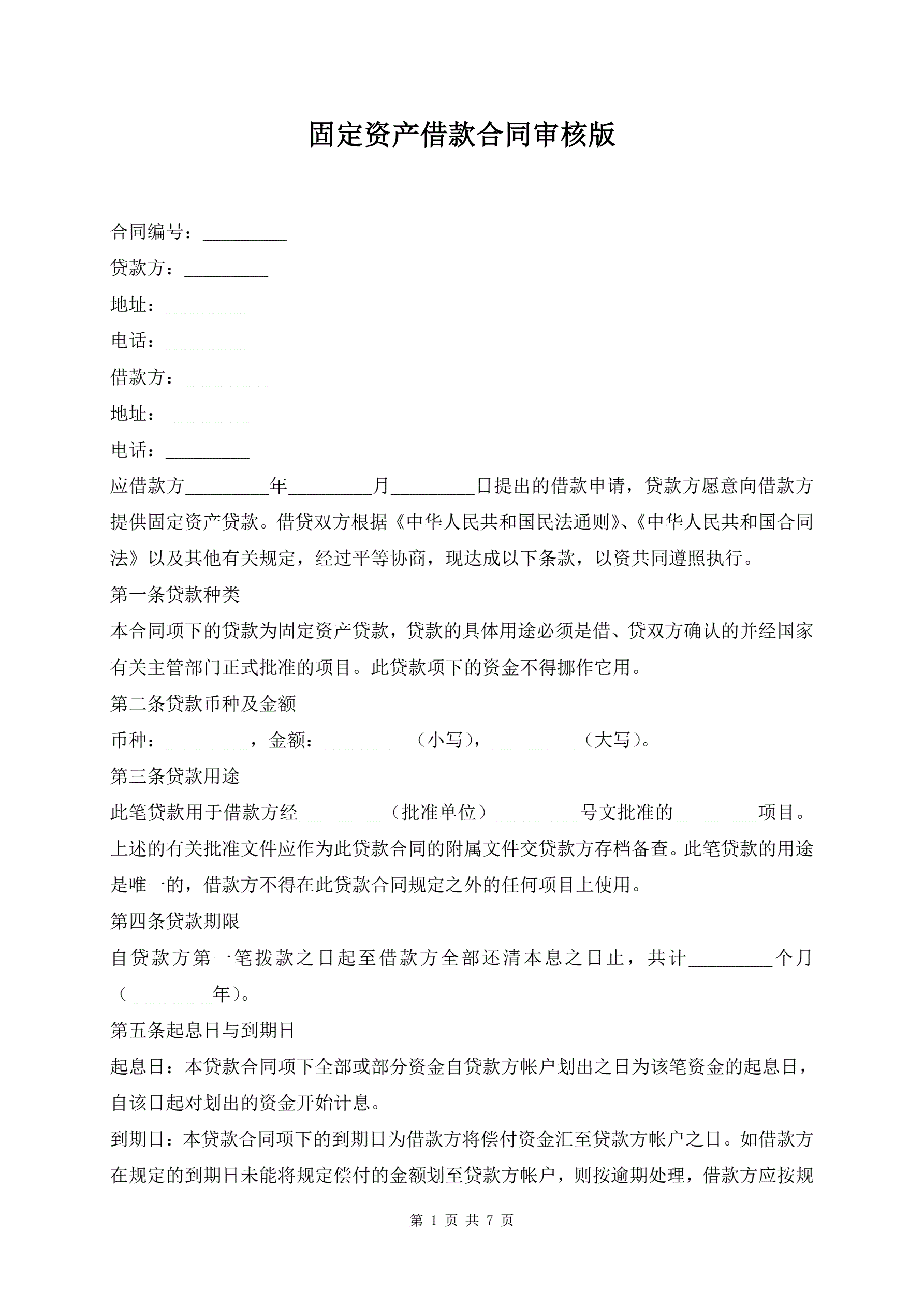 >固定资产借款合同审核版