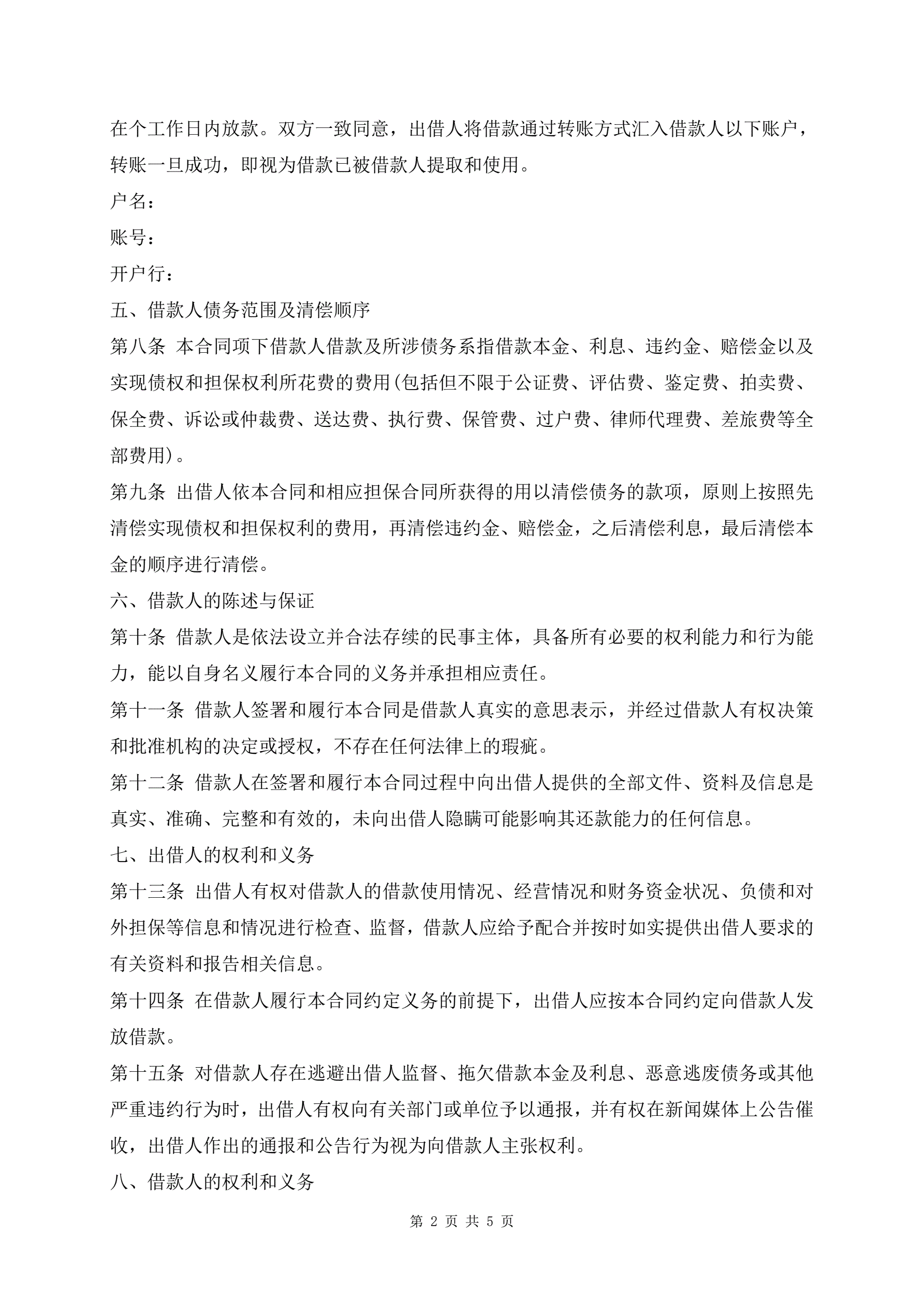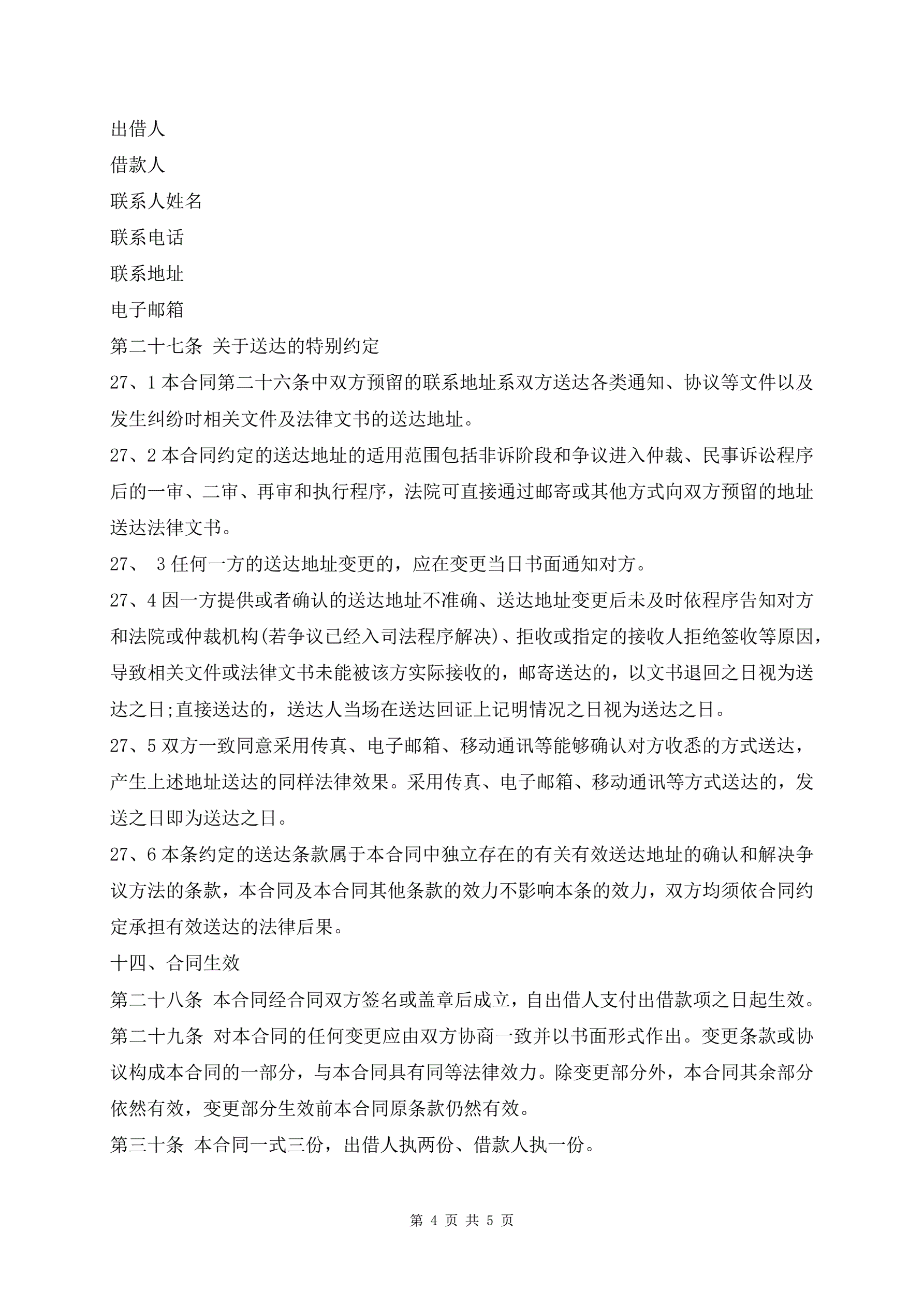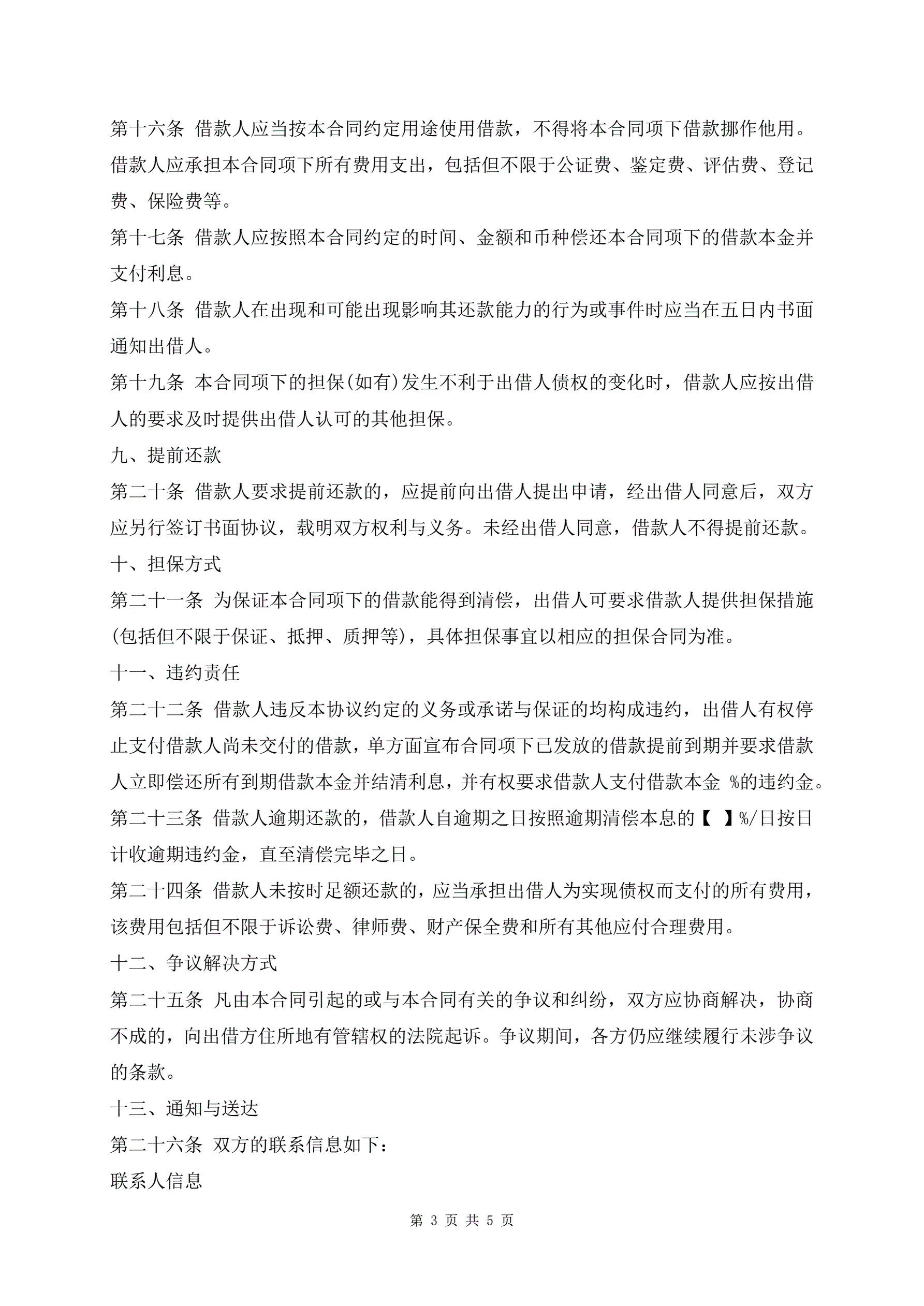 >借款合同模板(标准版)