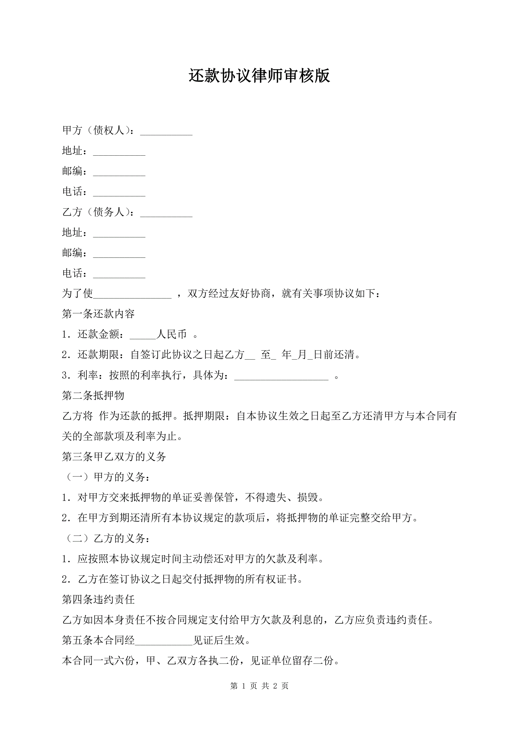 >还款协议律师审核版