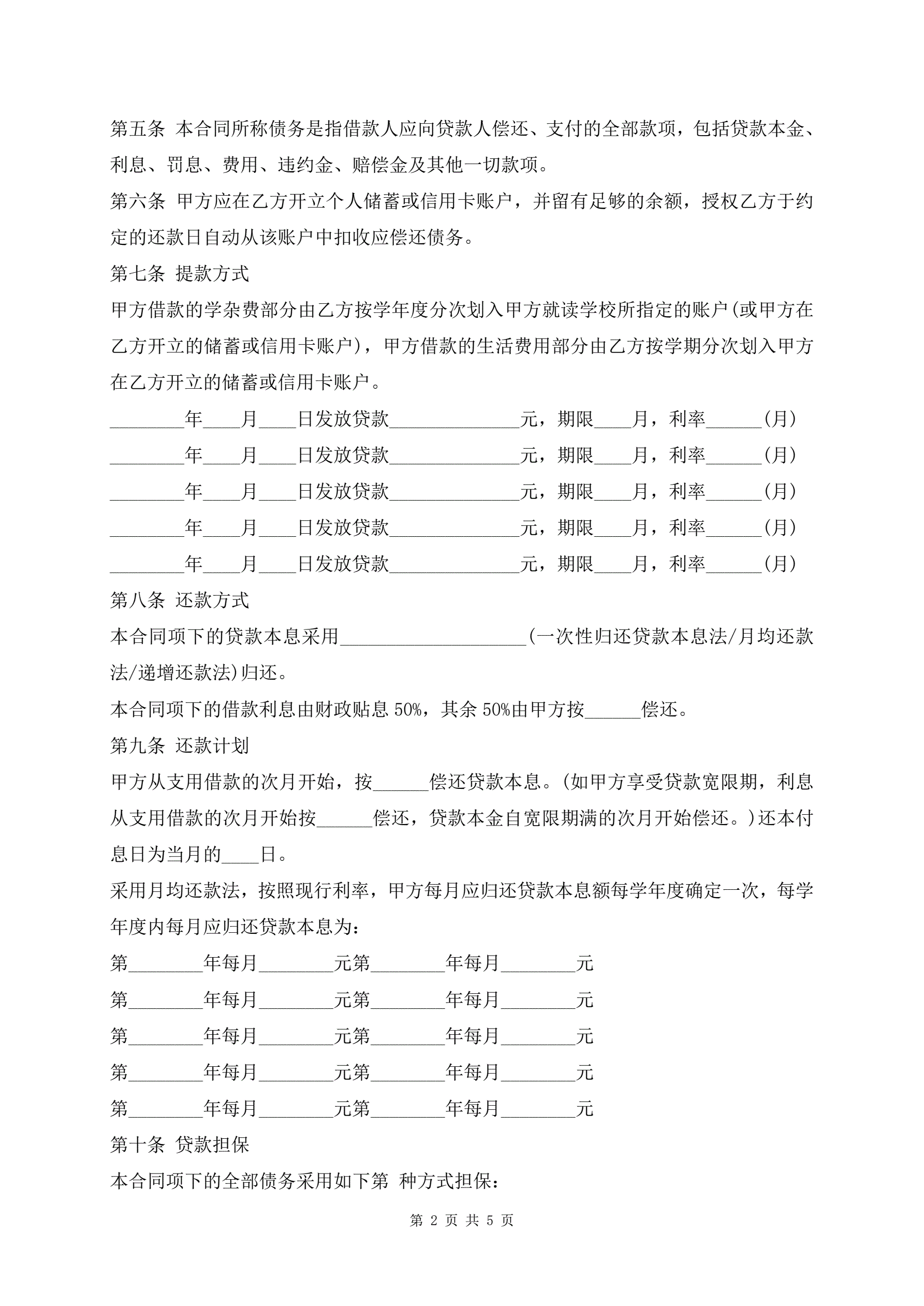 中国银行国家助学借款合同范本模板