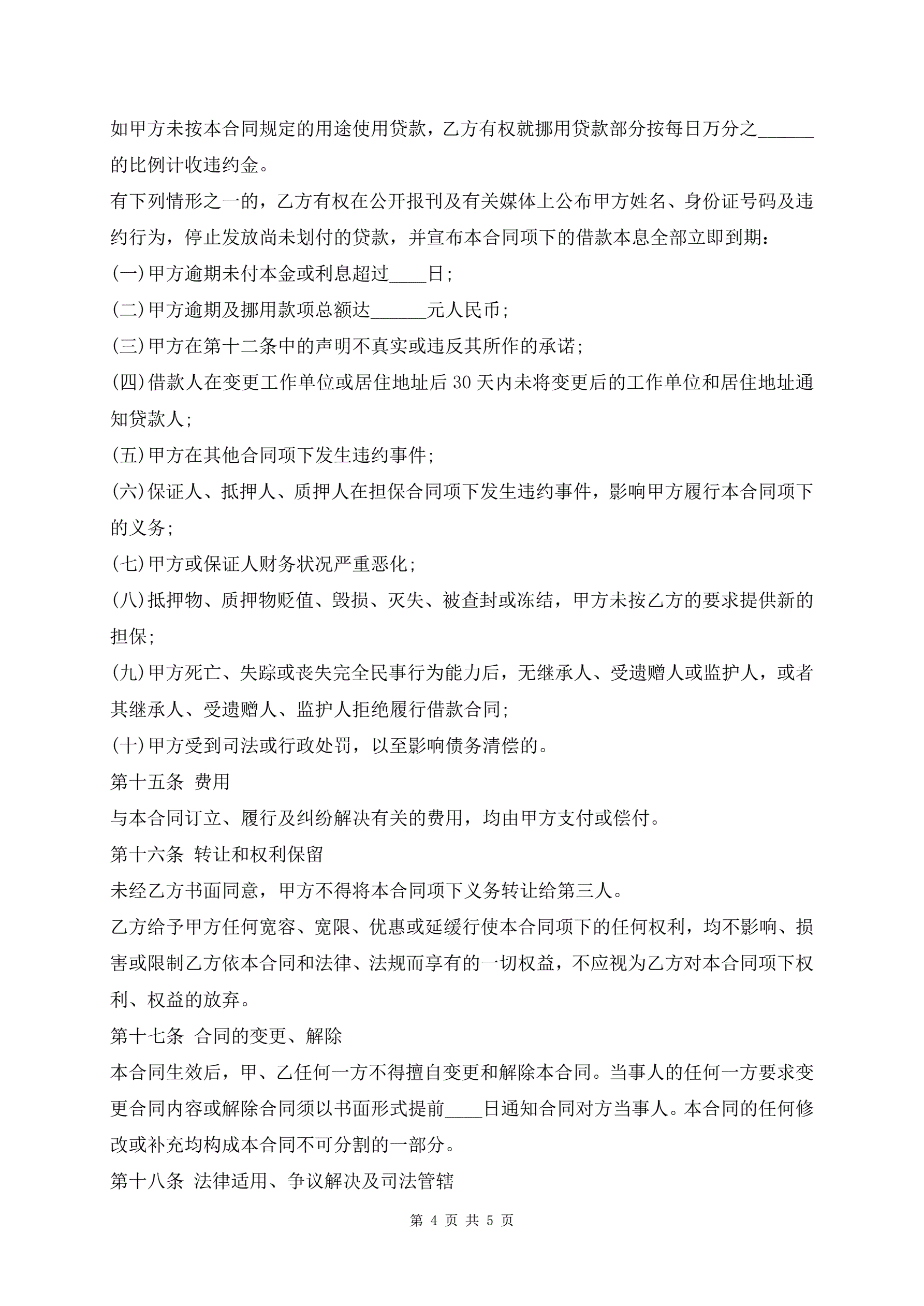 >中国银行国家助学借款合同范本模板