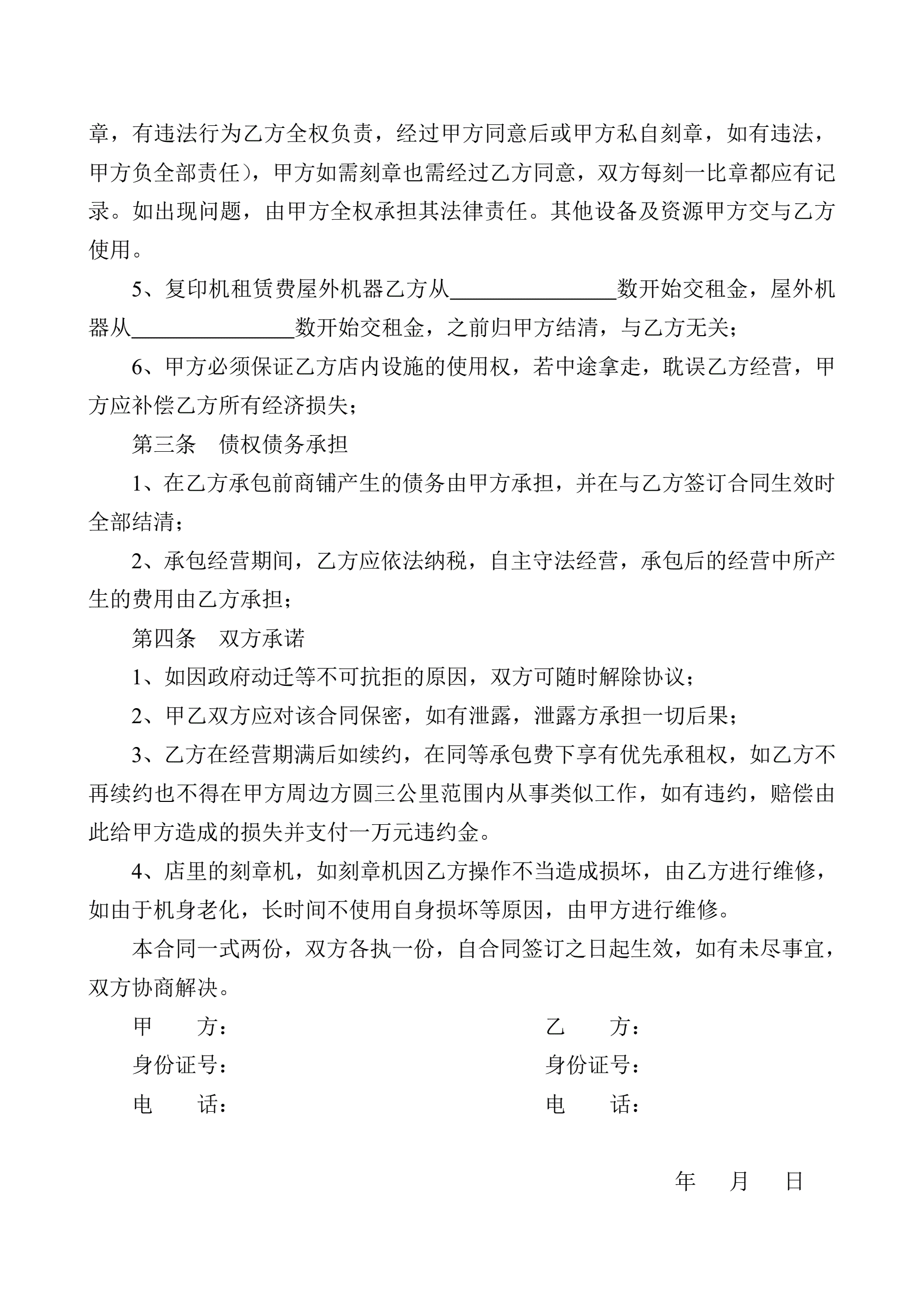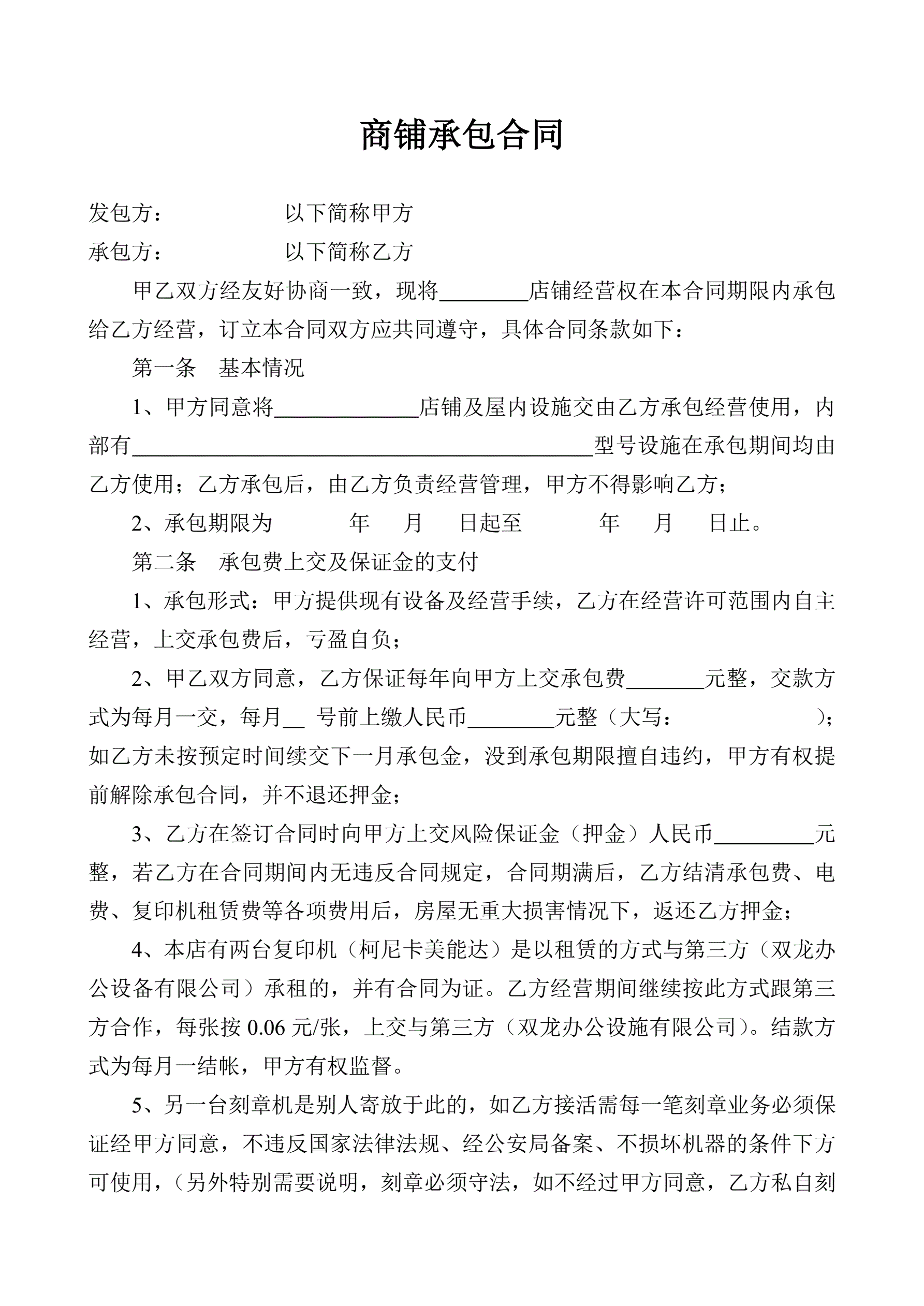 商铺承包合同