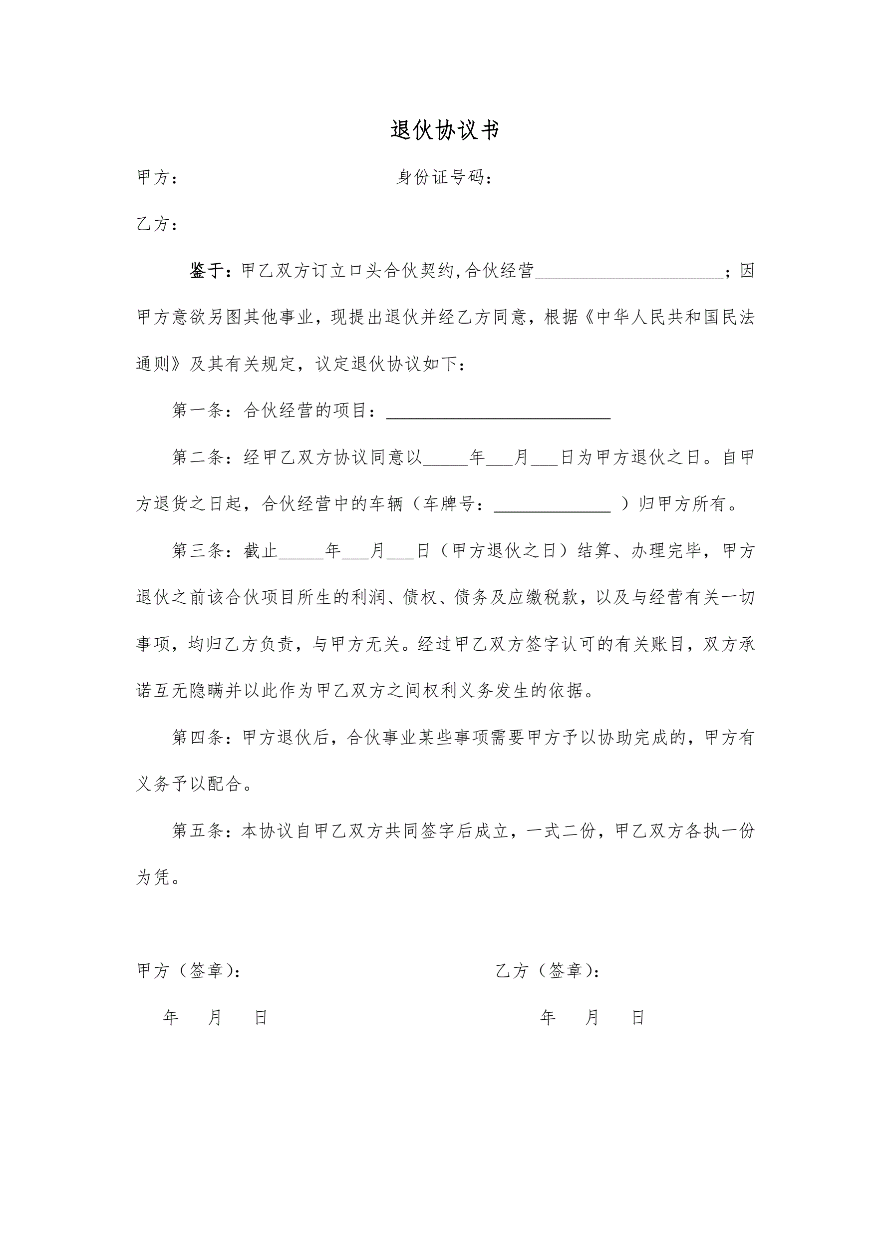 >退伙协议书