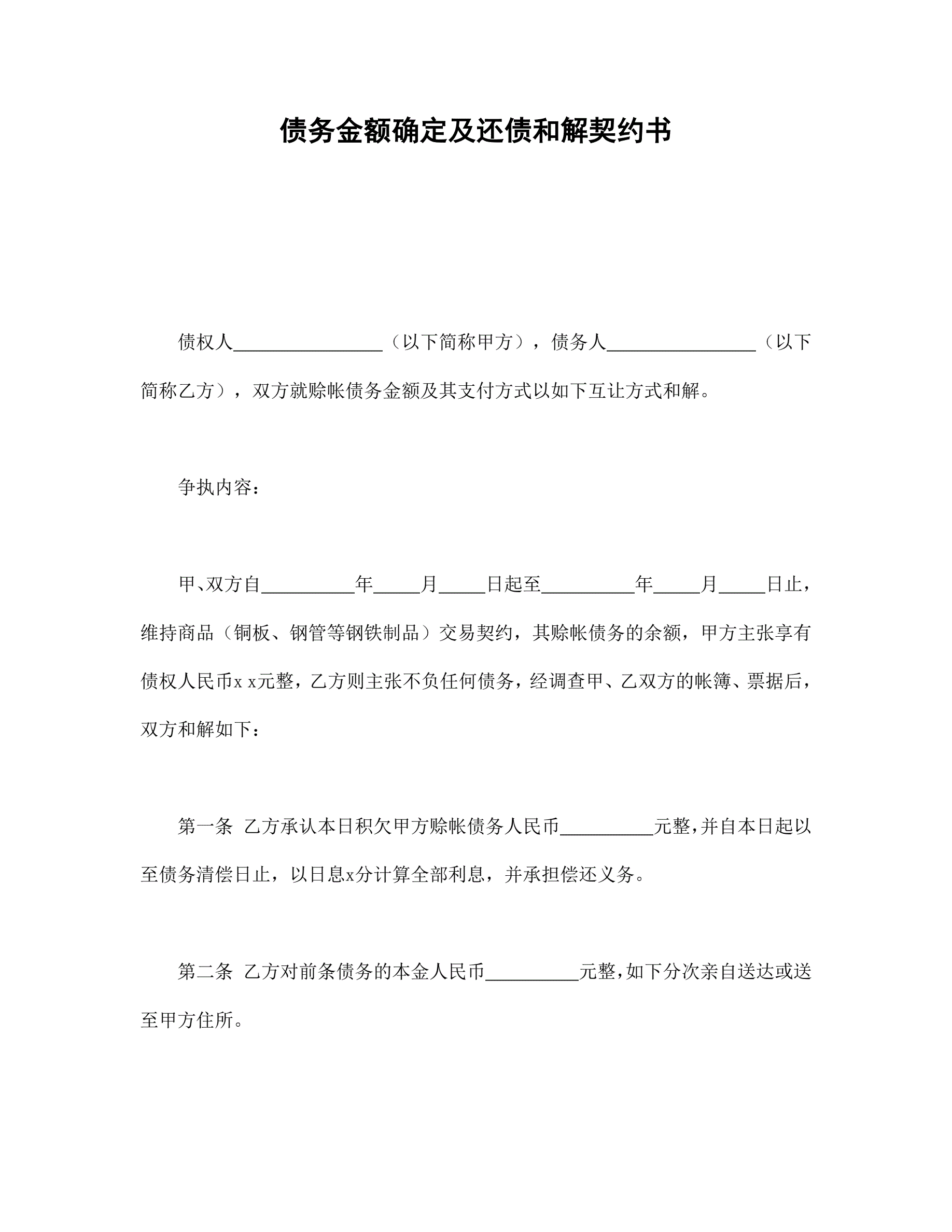 >债务金额确定及还债和解契约书