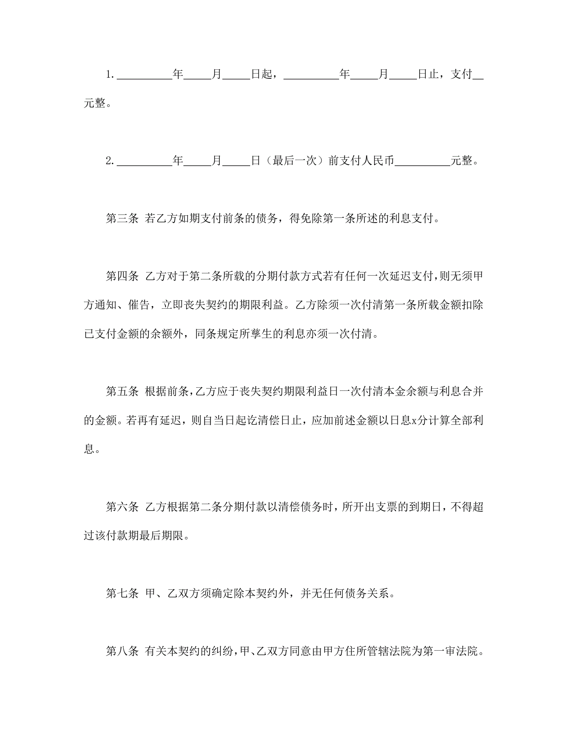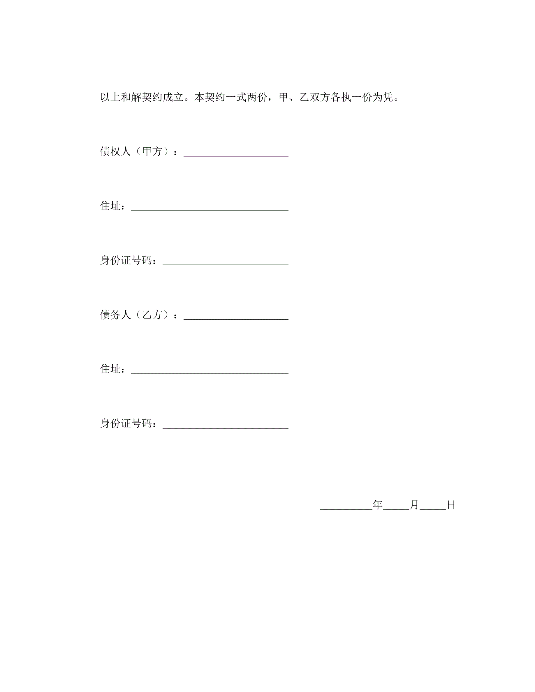 债务金额确定及还债和解契约书