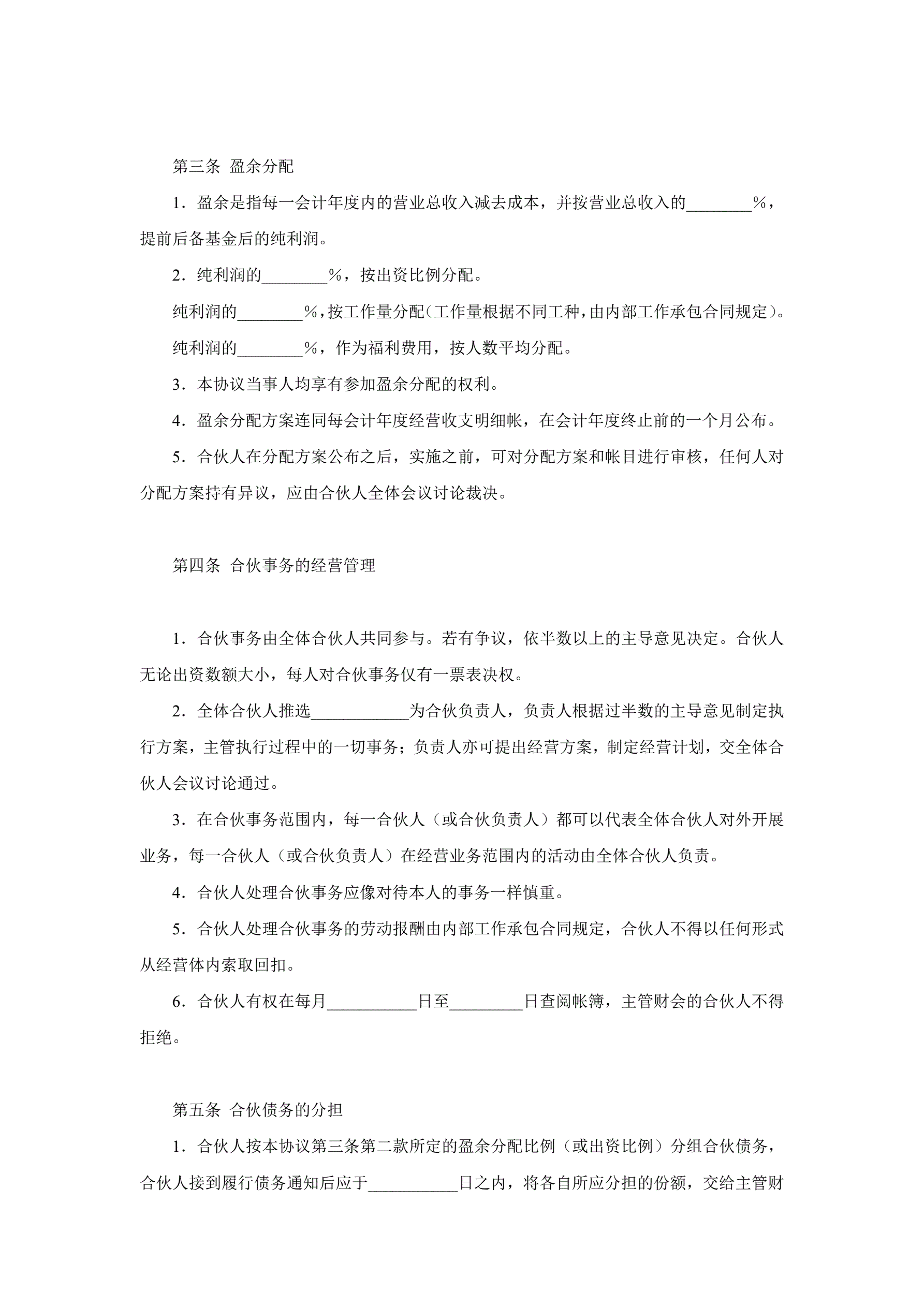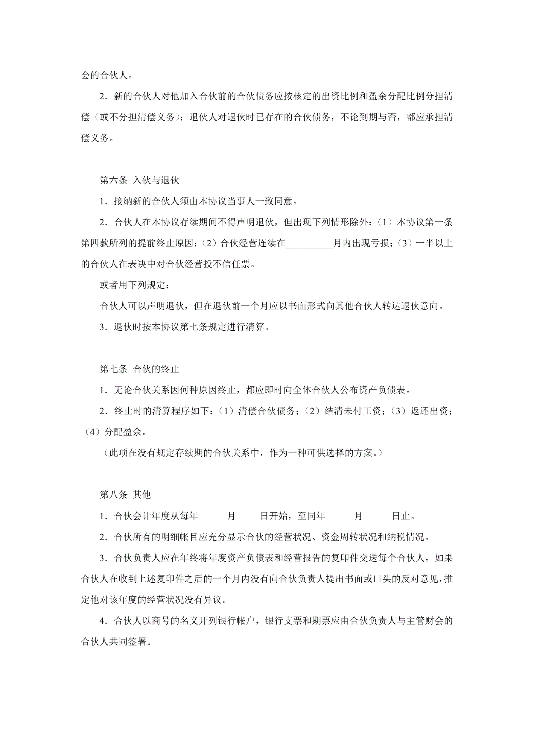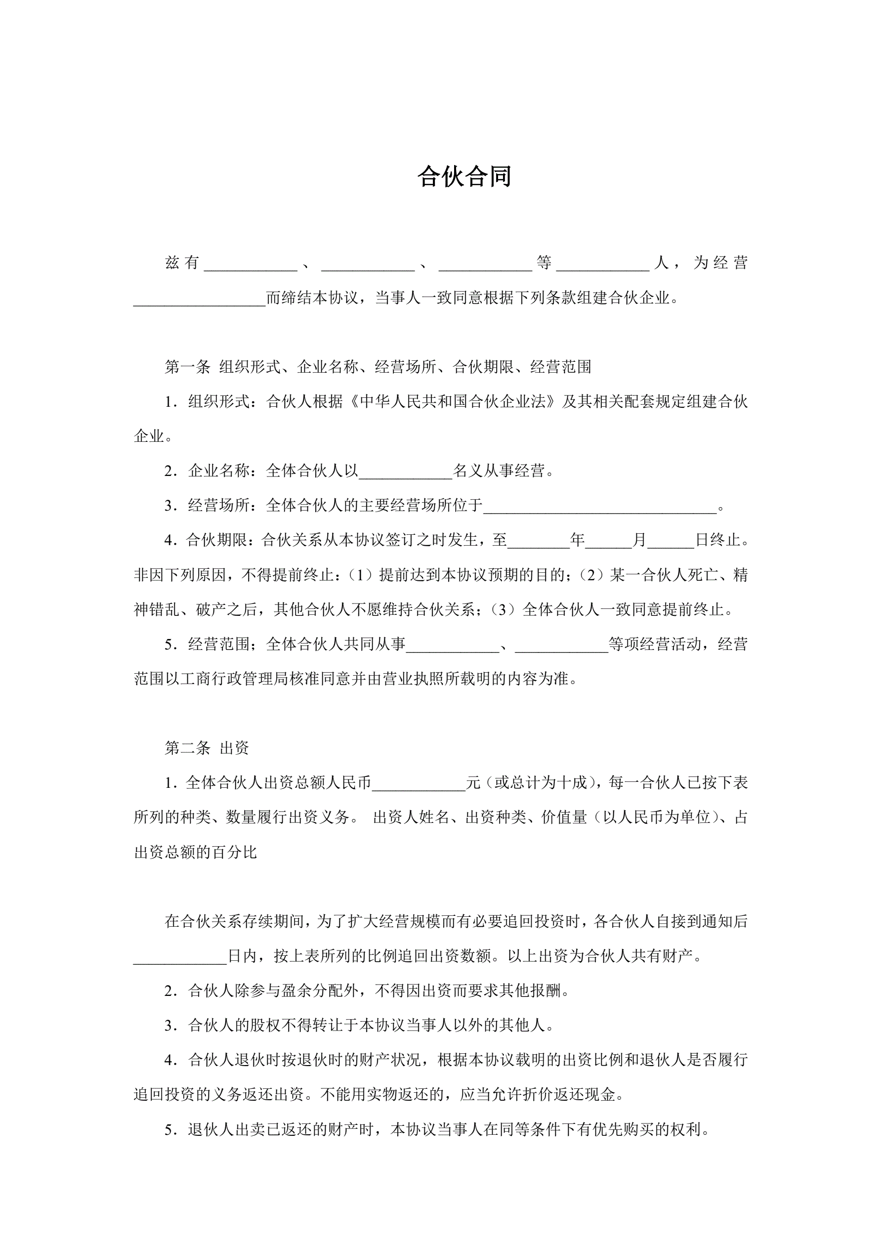 合伙企业合伙人合同