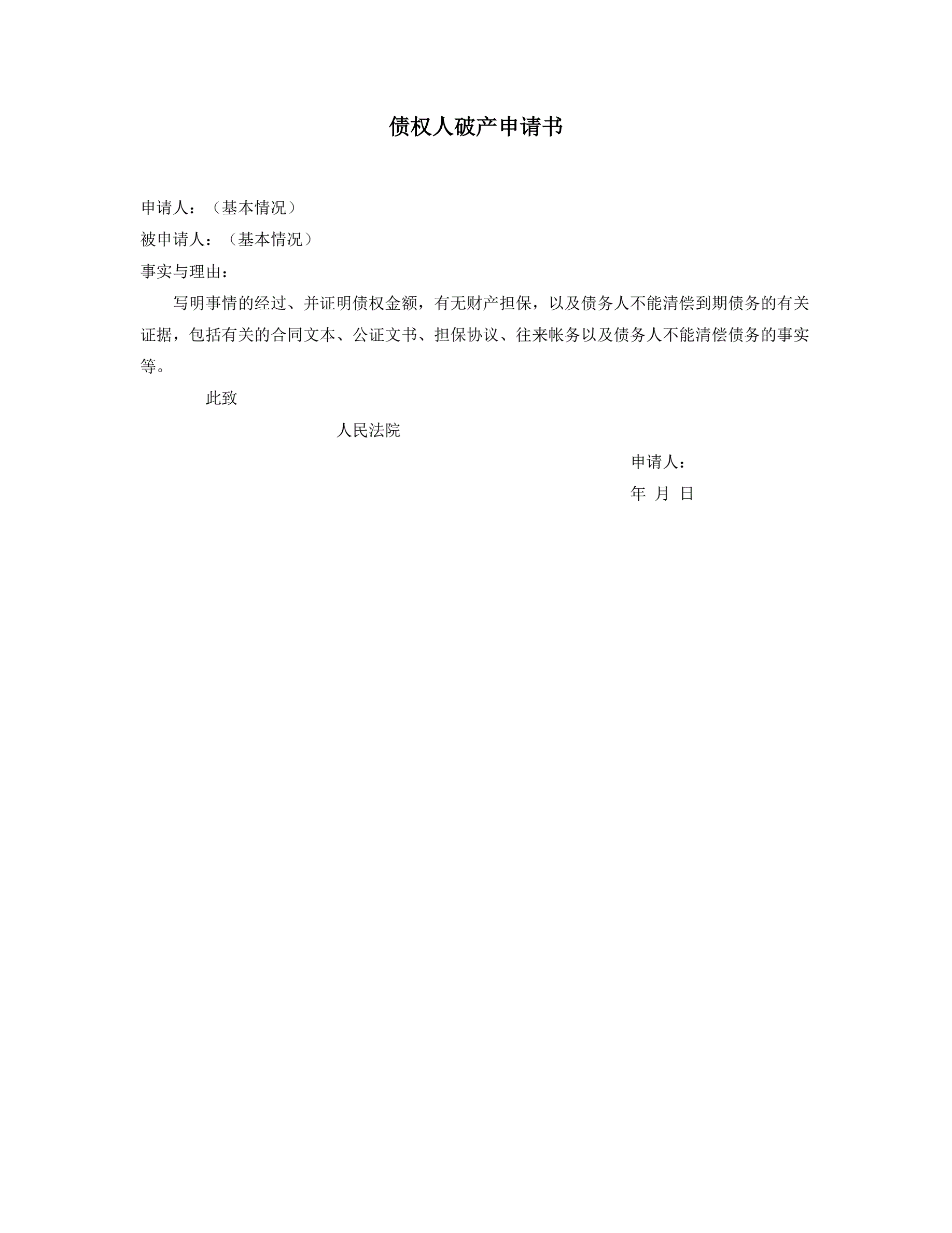 债权人破产申请书