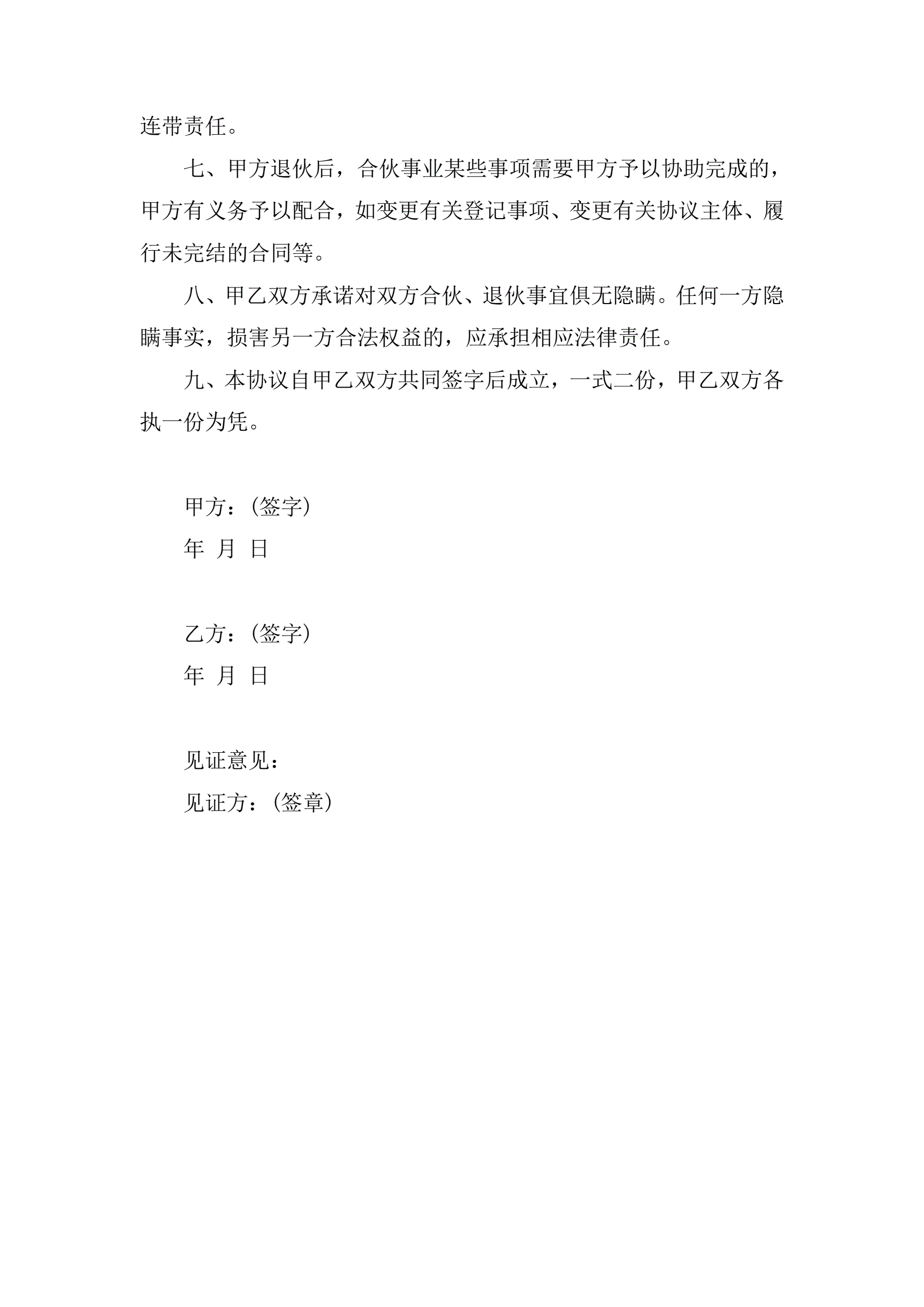 >合伙退伙协议书范本
