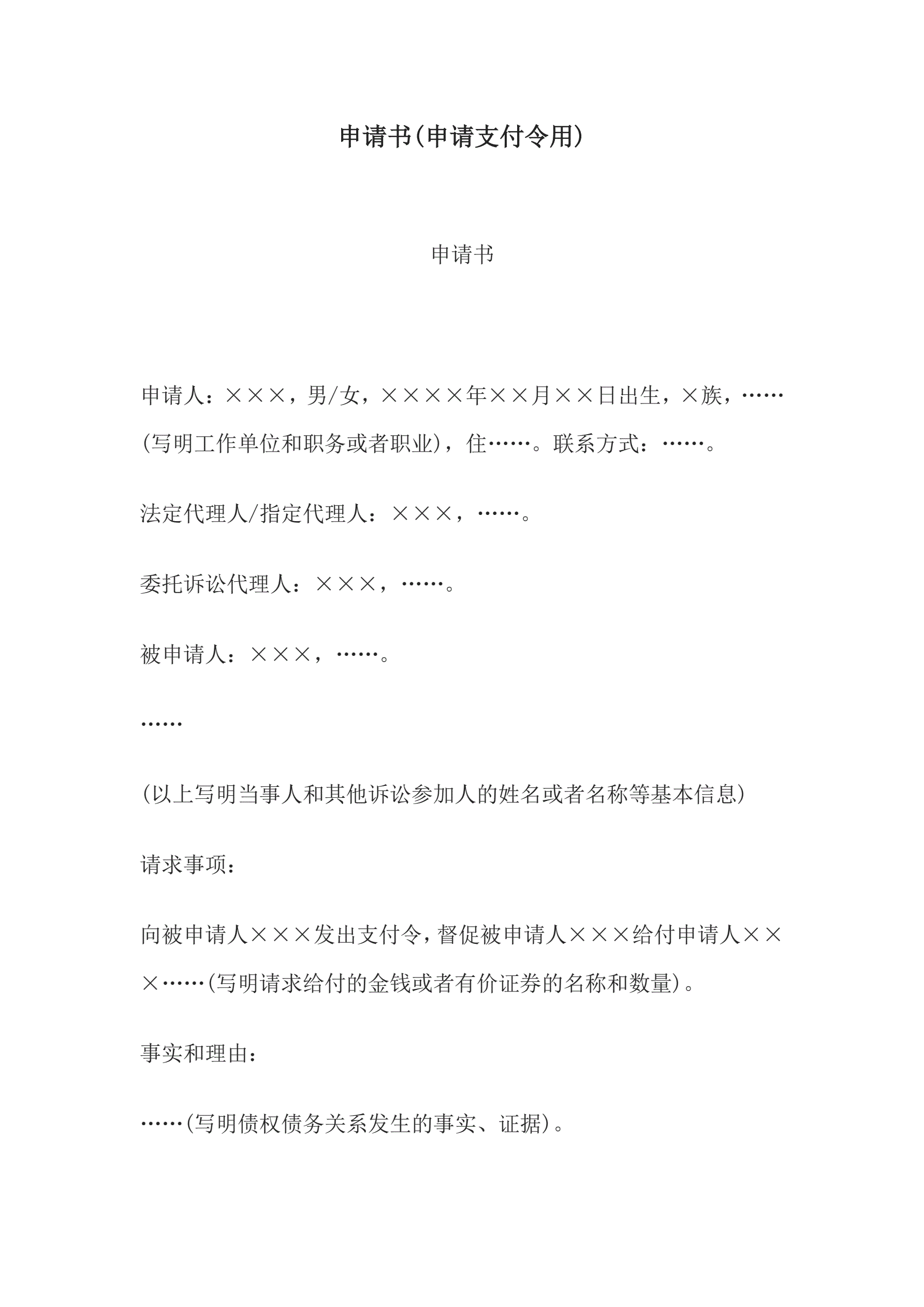 >申请书(申请支付令用)