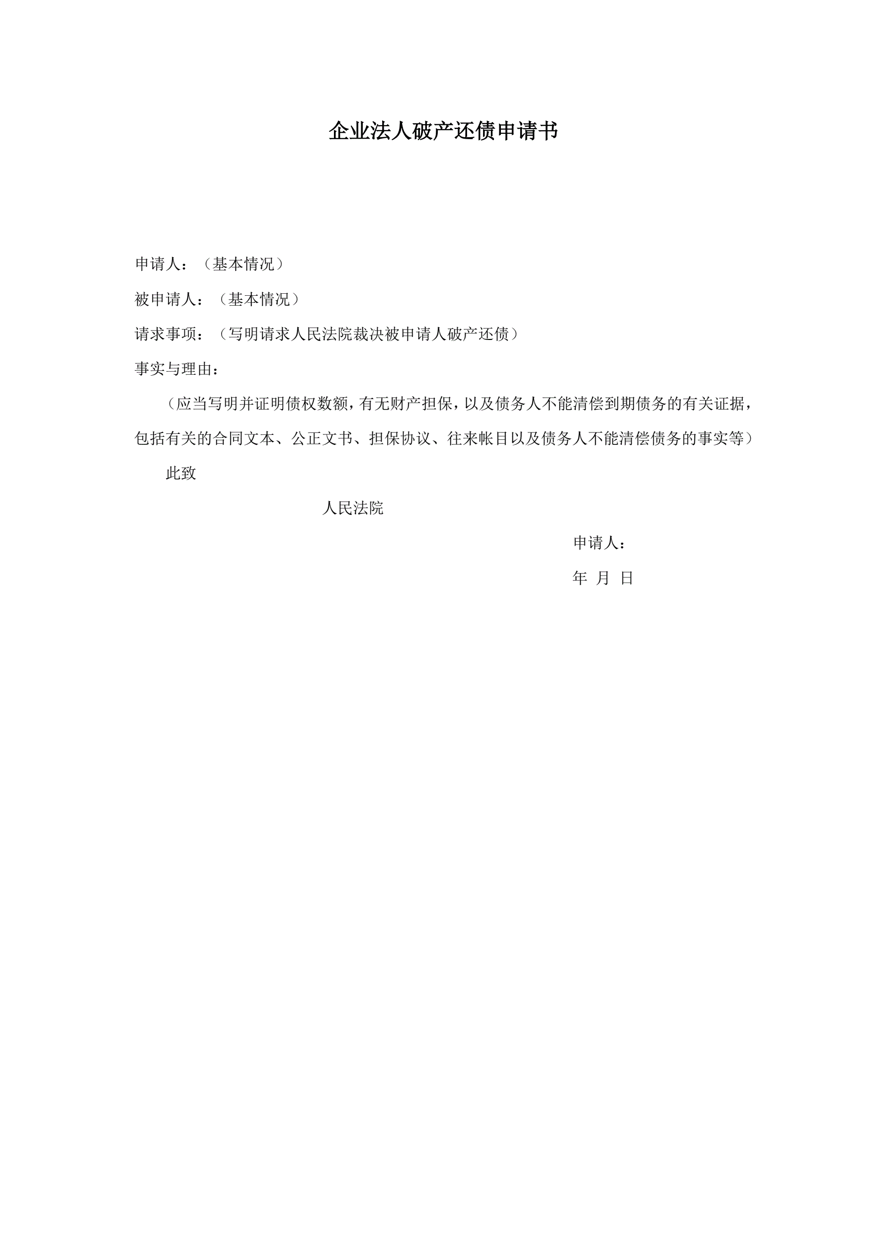 >企业法人破产还债申请书