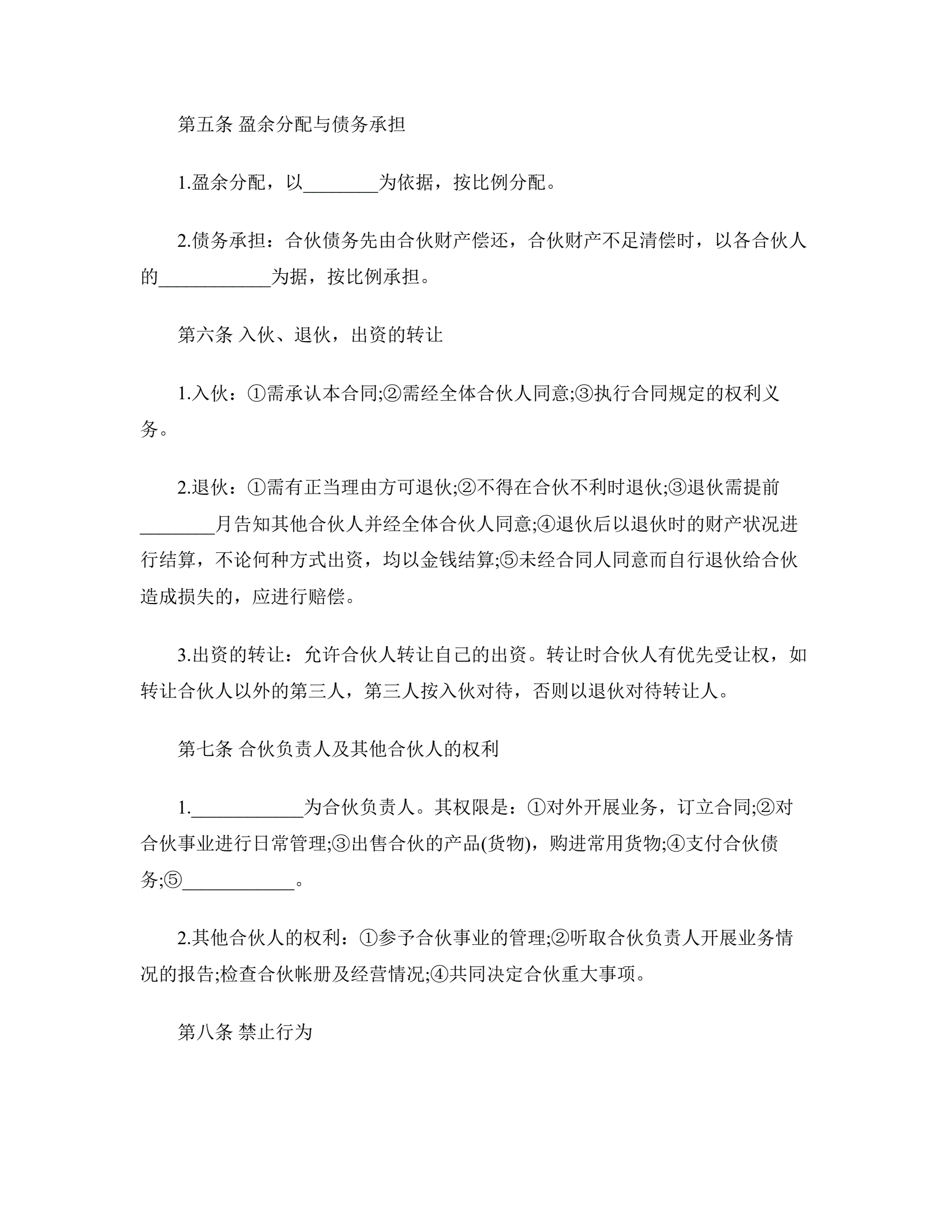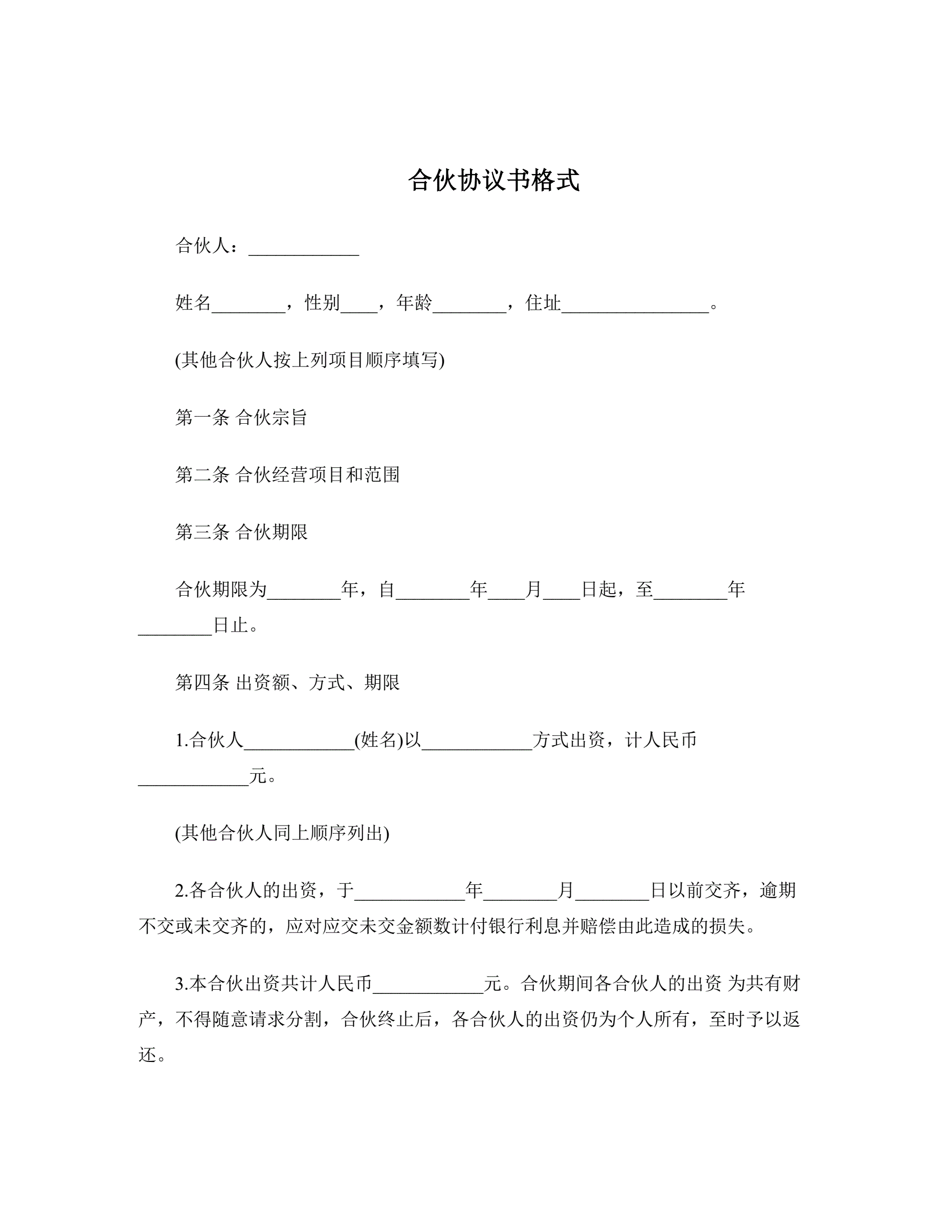 >合伙协议书格式