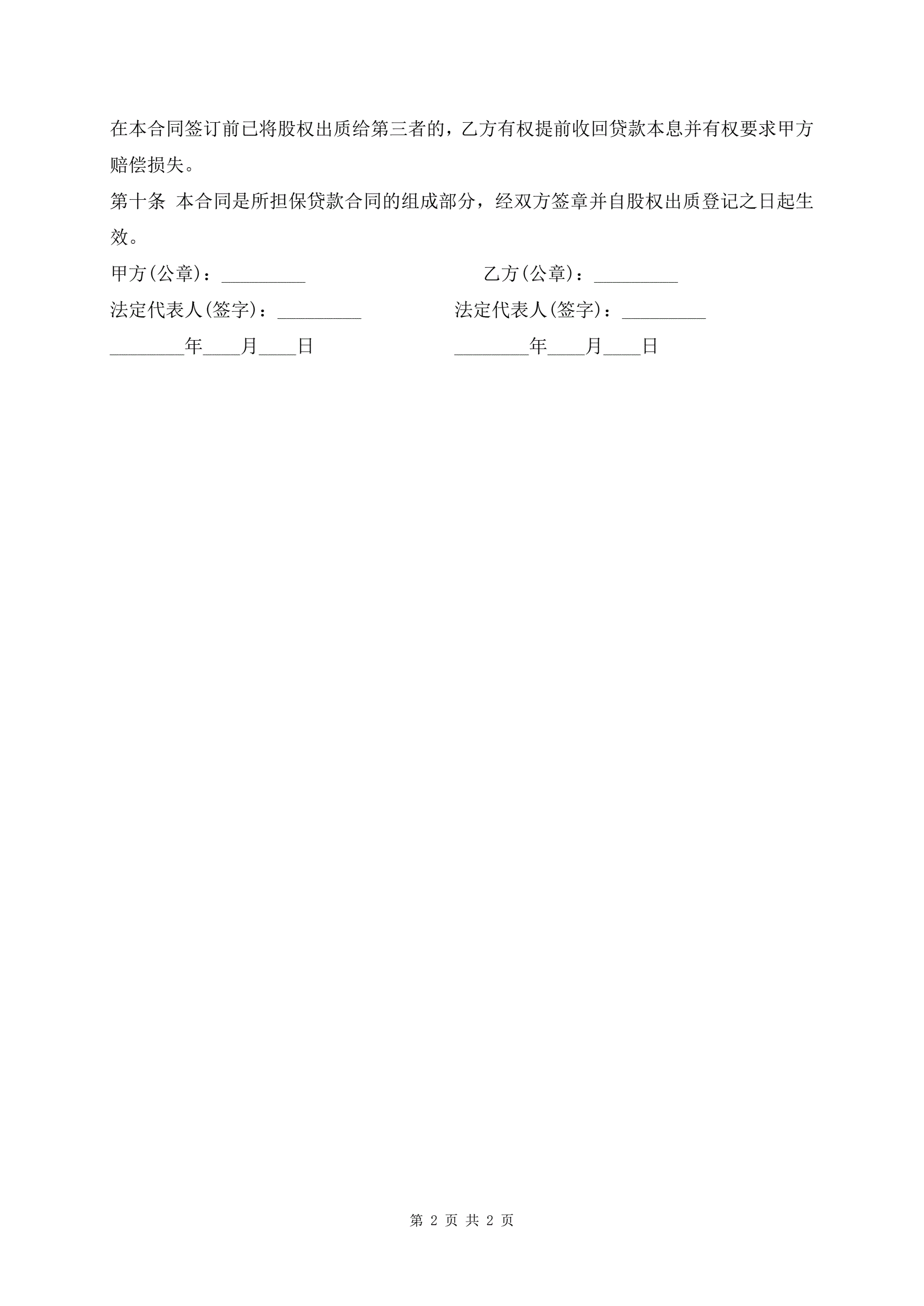 >股权质押借款合同最新标准模板