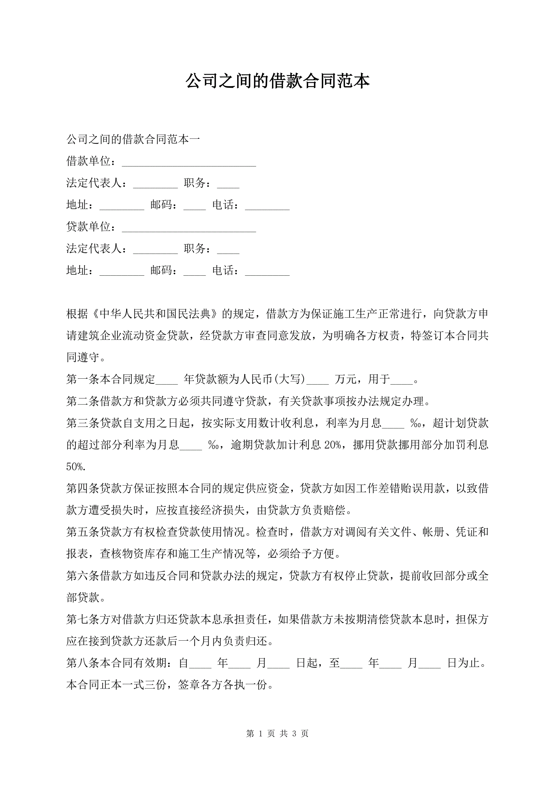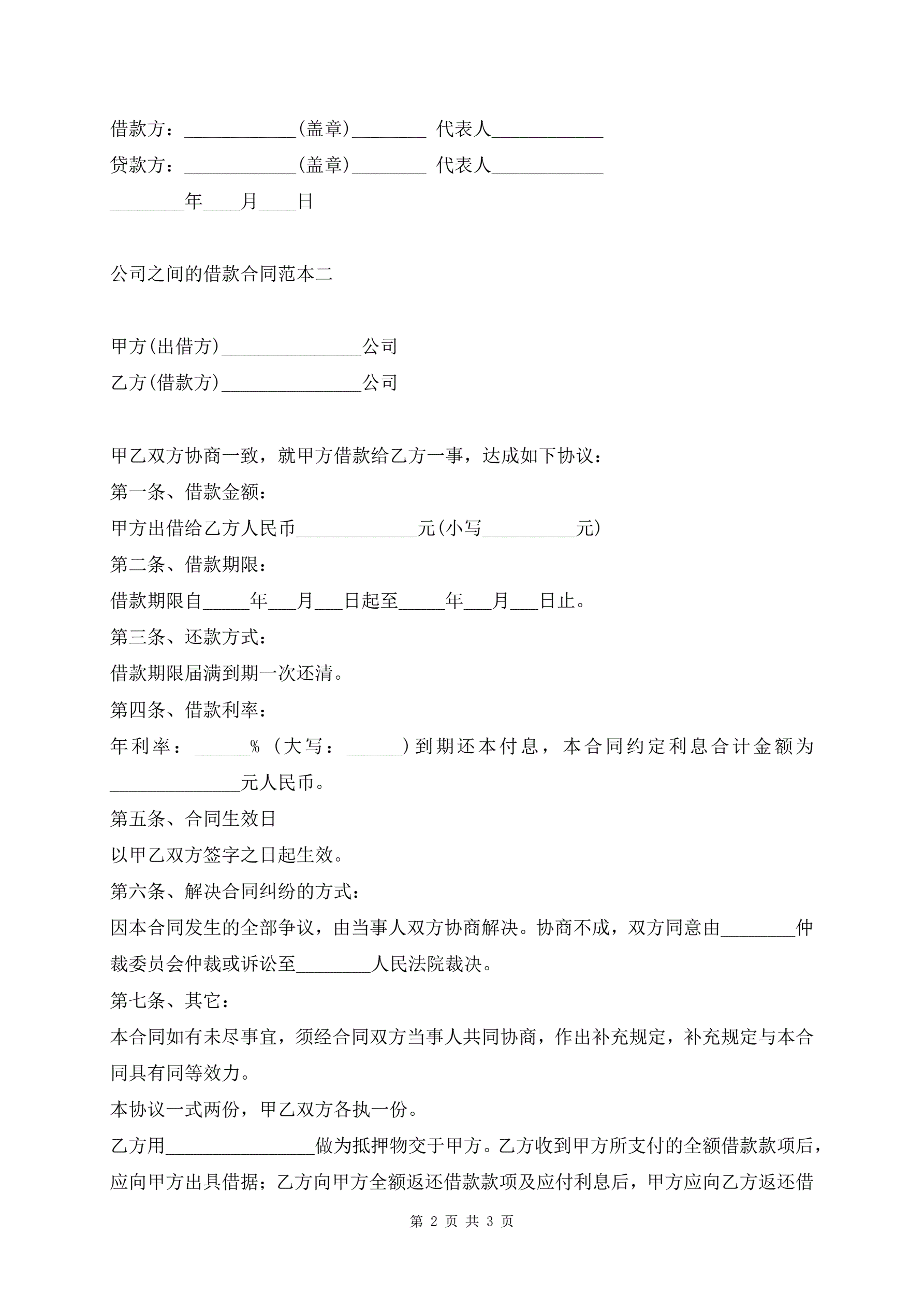 公司之间的借款合同范本