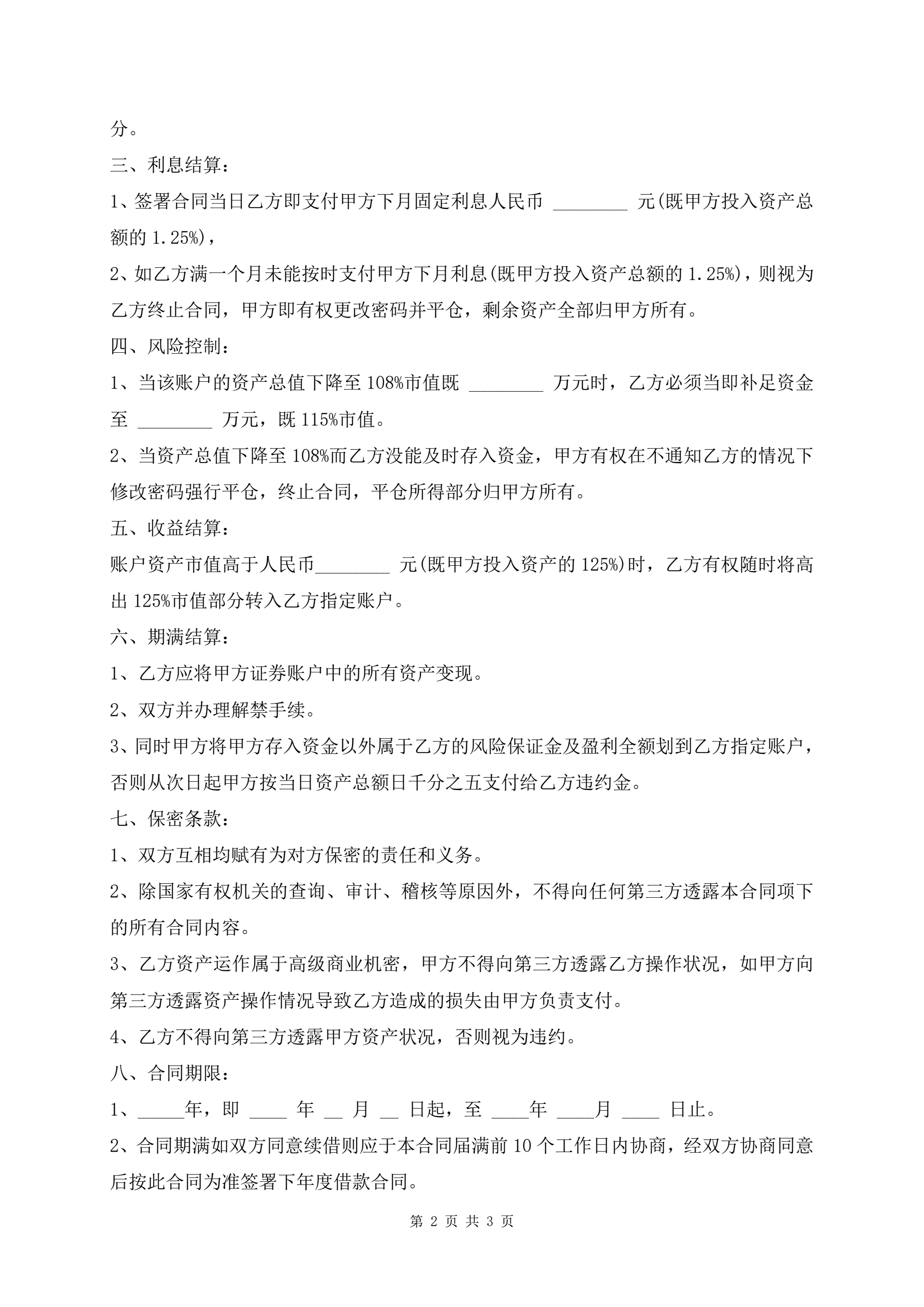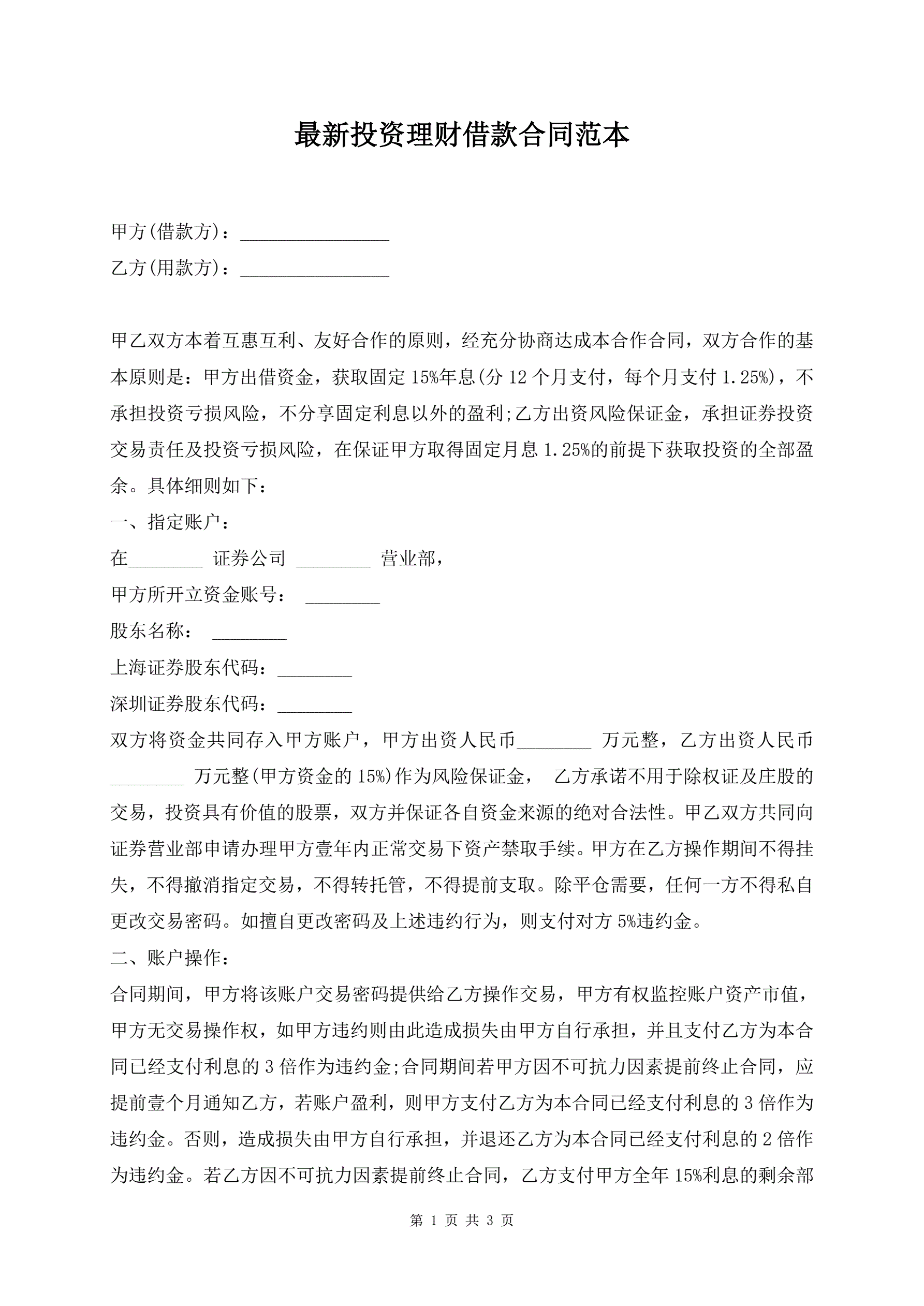 最新投资理财借款合同范本