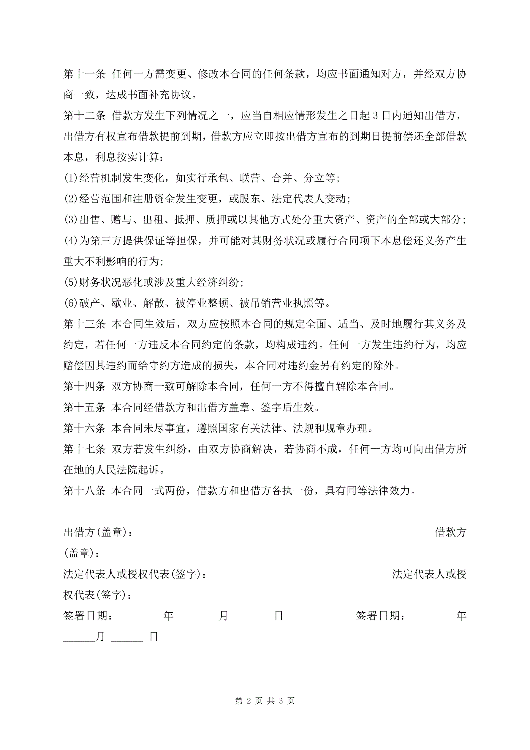 >借款合同模板(通用版)