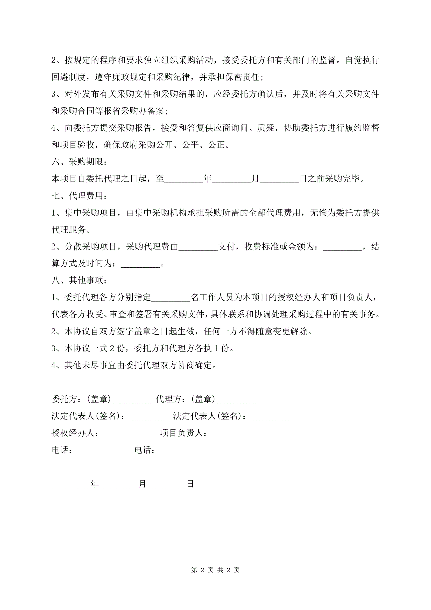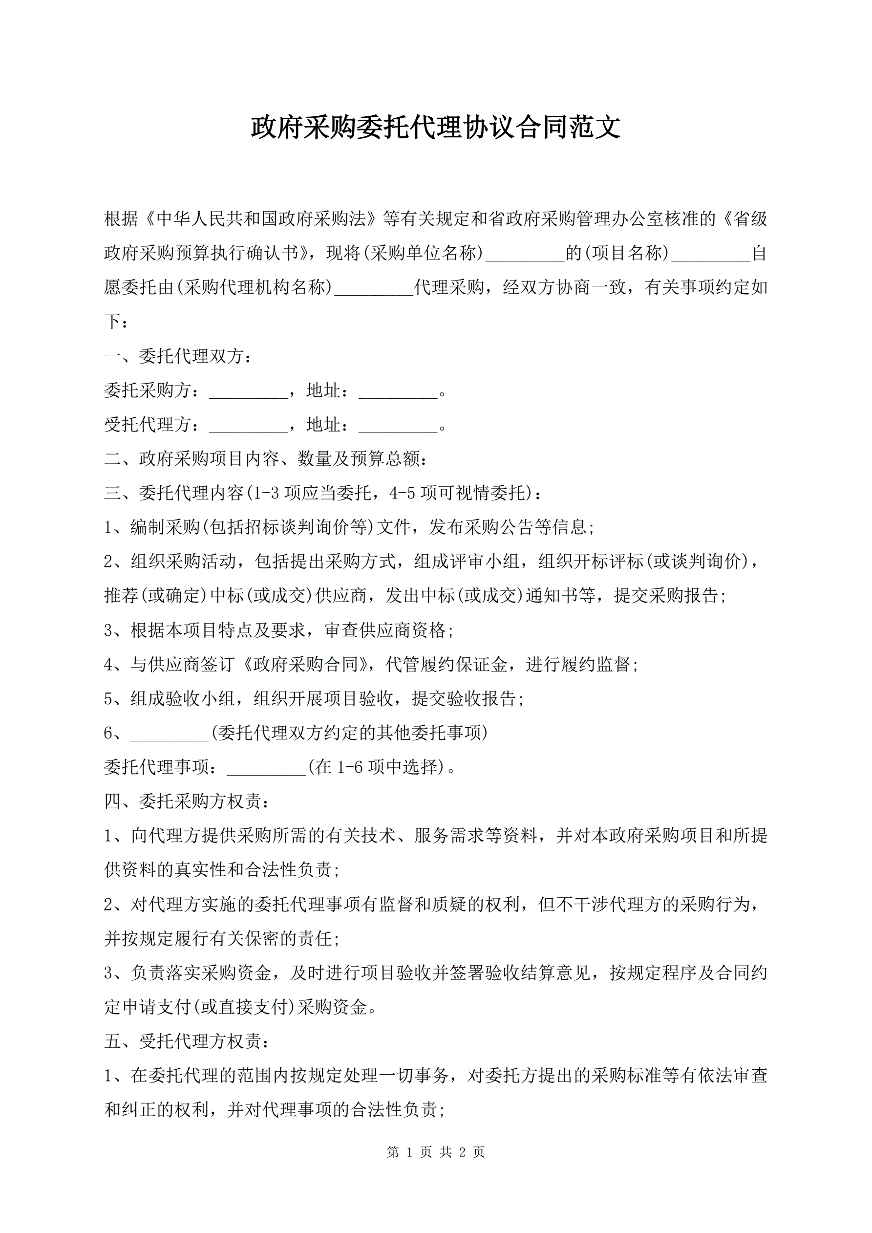 >政府采购委托代理协议合同范文