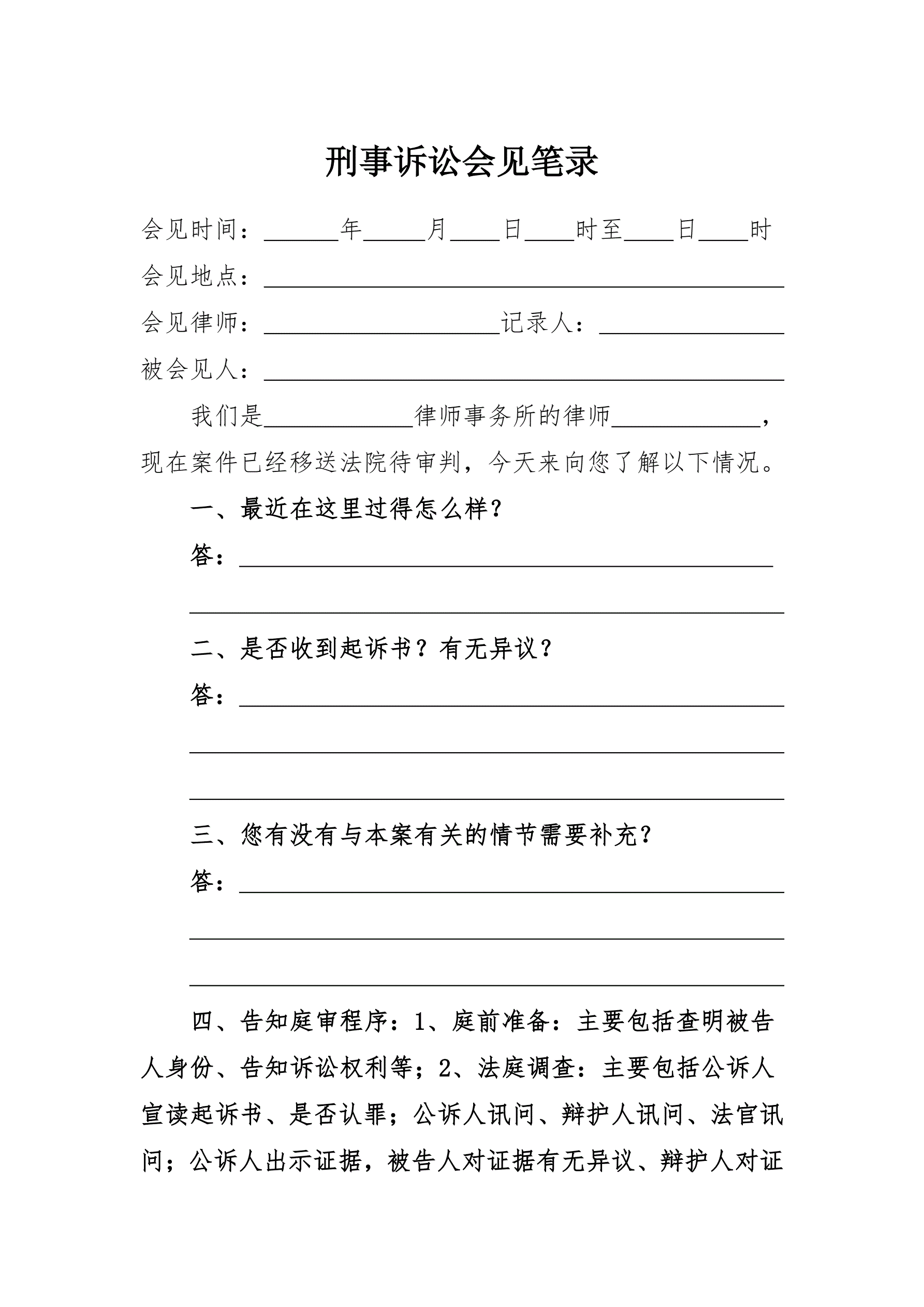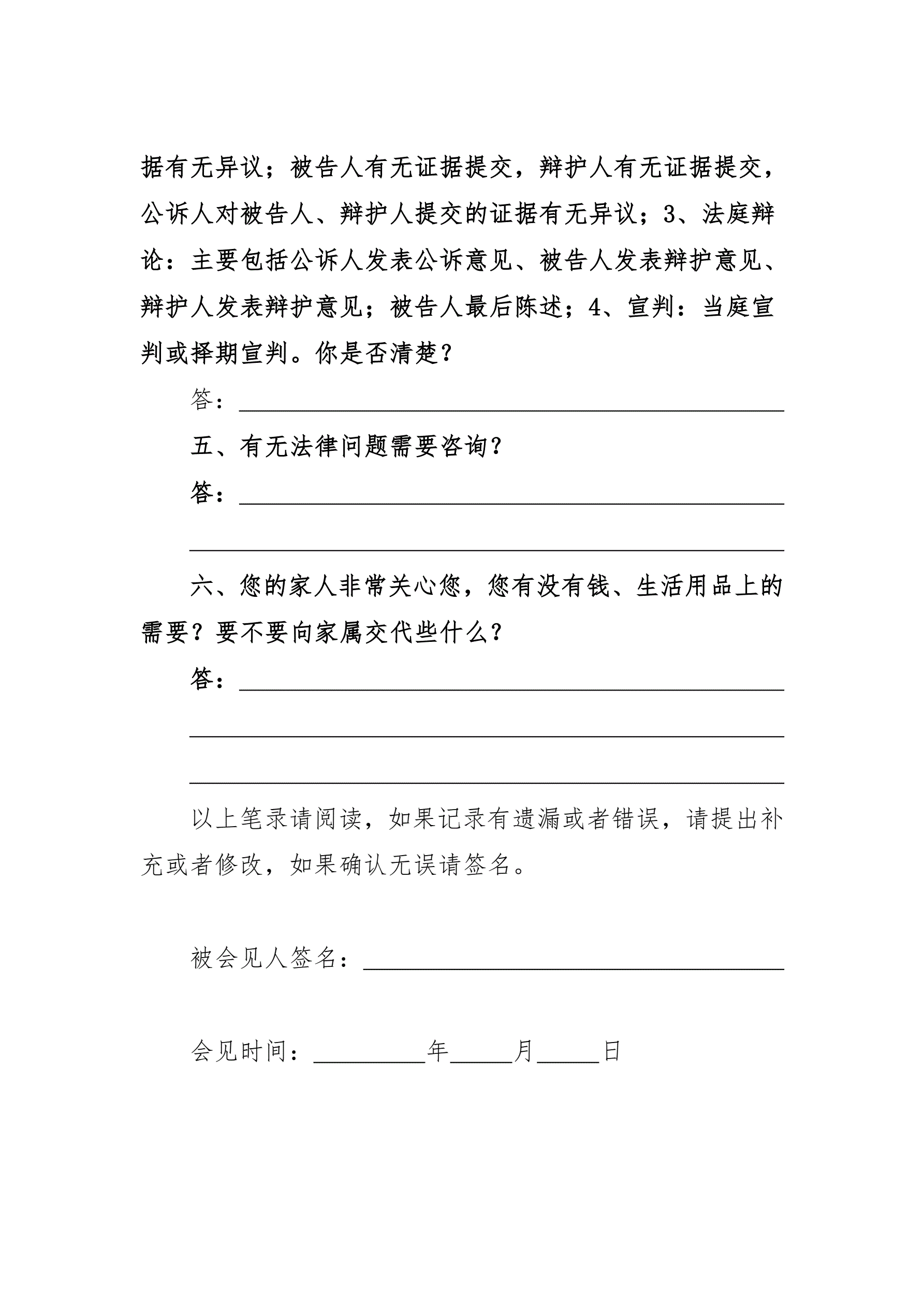一审审判阶段会见笔录(延续委托)