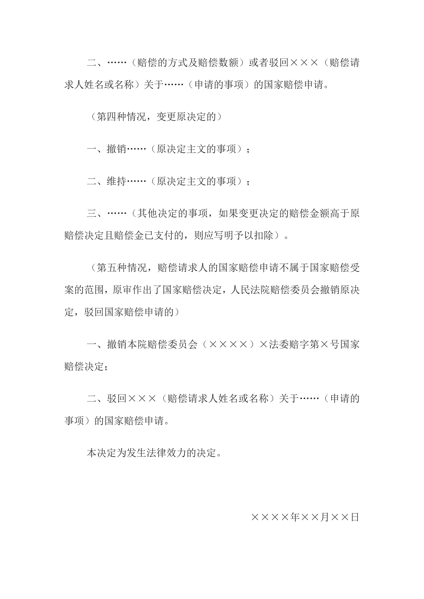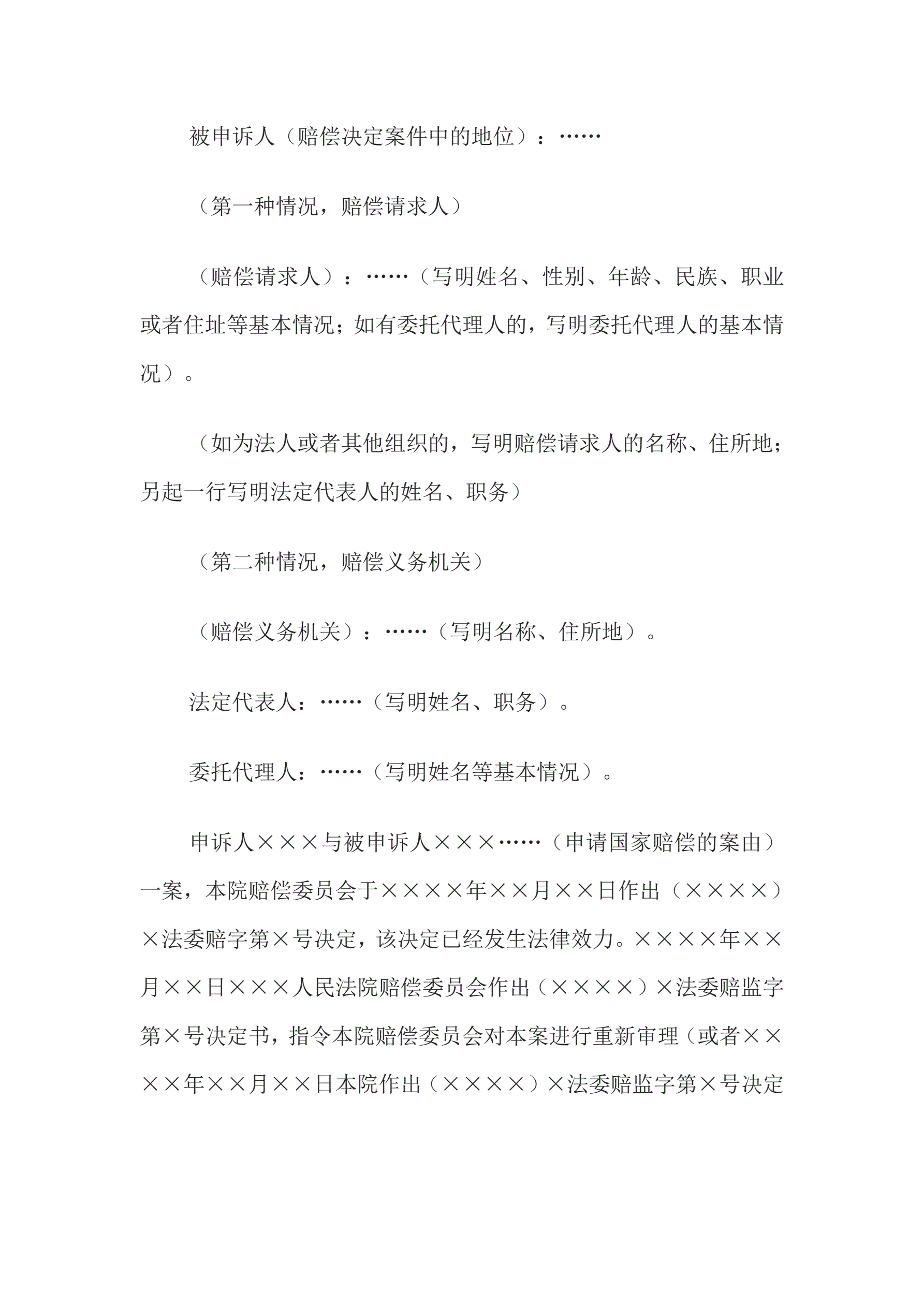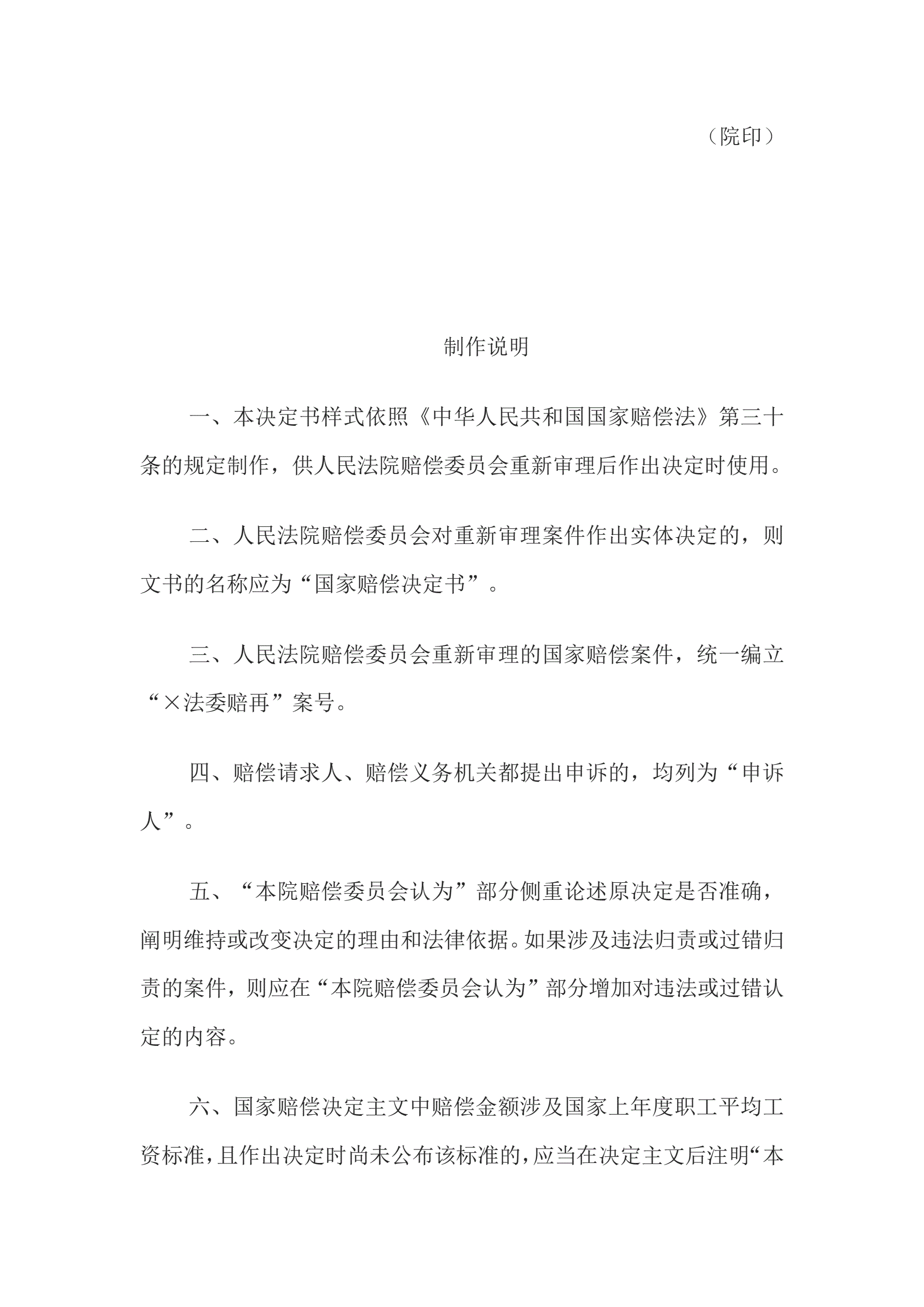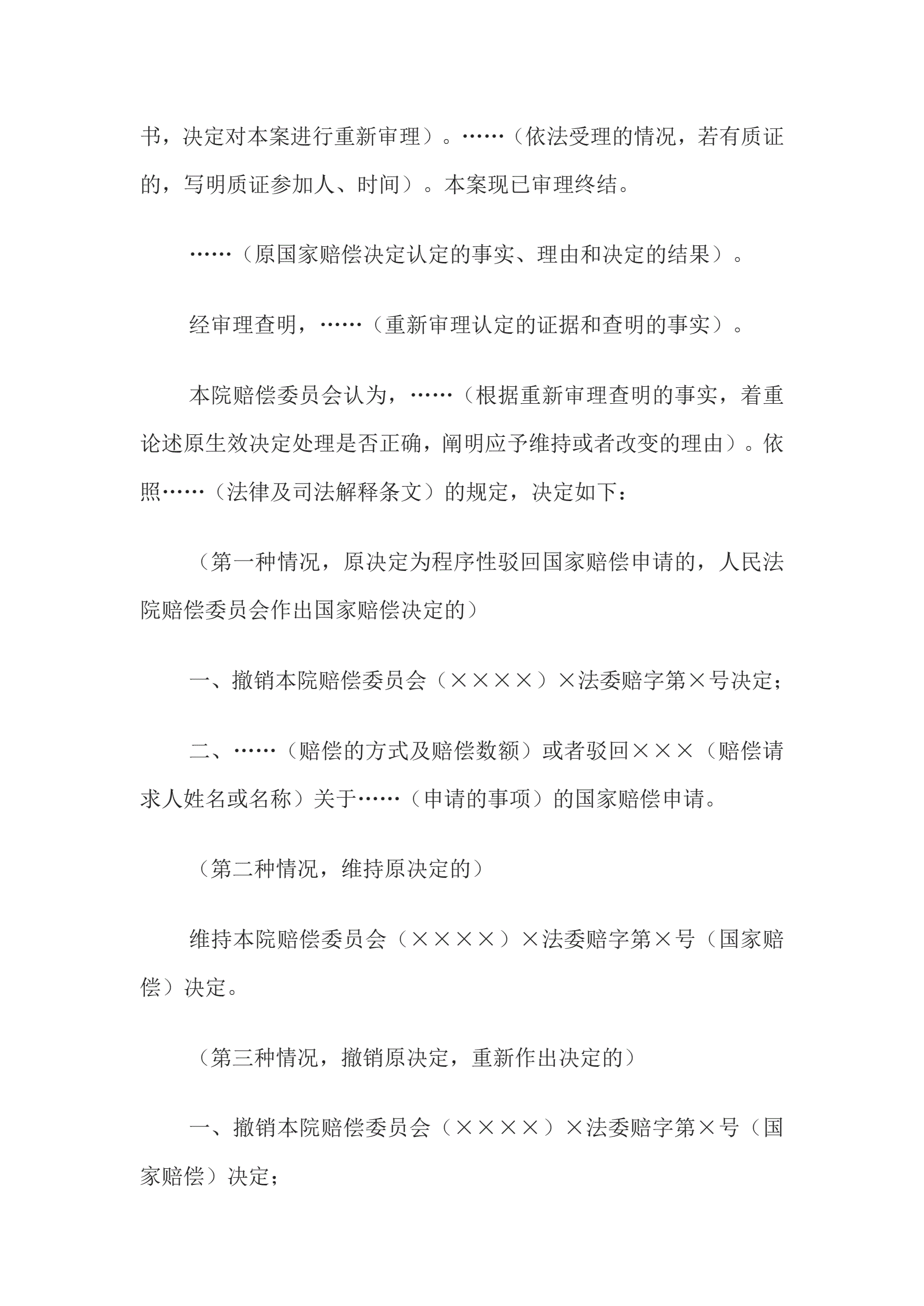 决定书(人民法院赔偿委员会重新审理案件用)