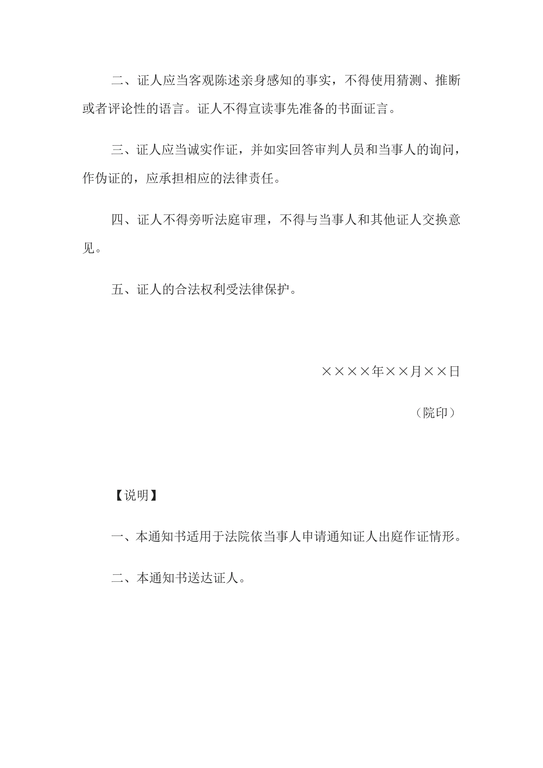 >通知书(法院依当事人申请通知证人出庭作证用)