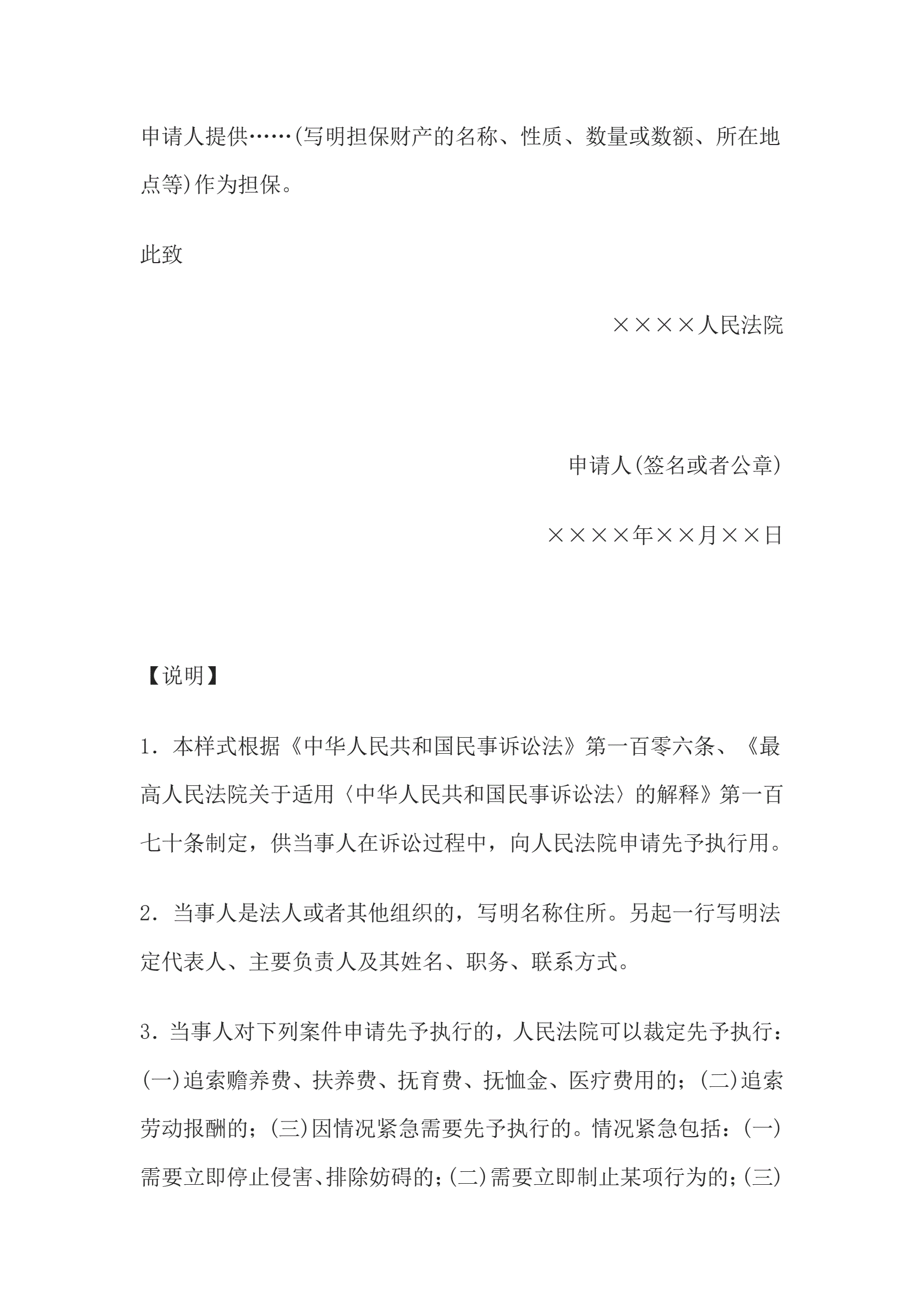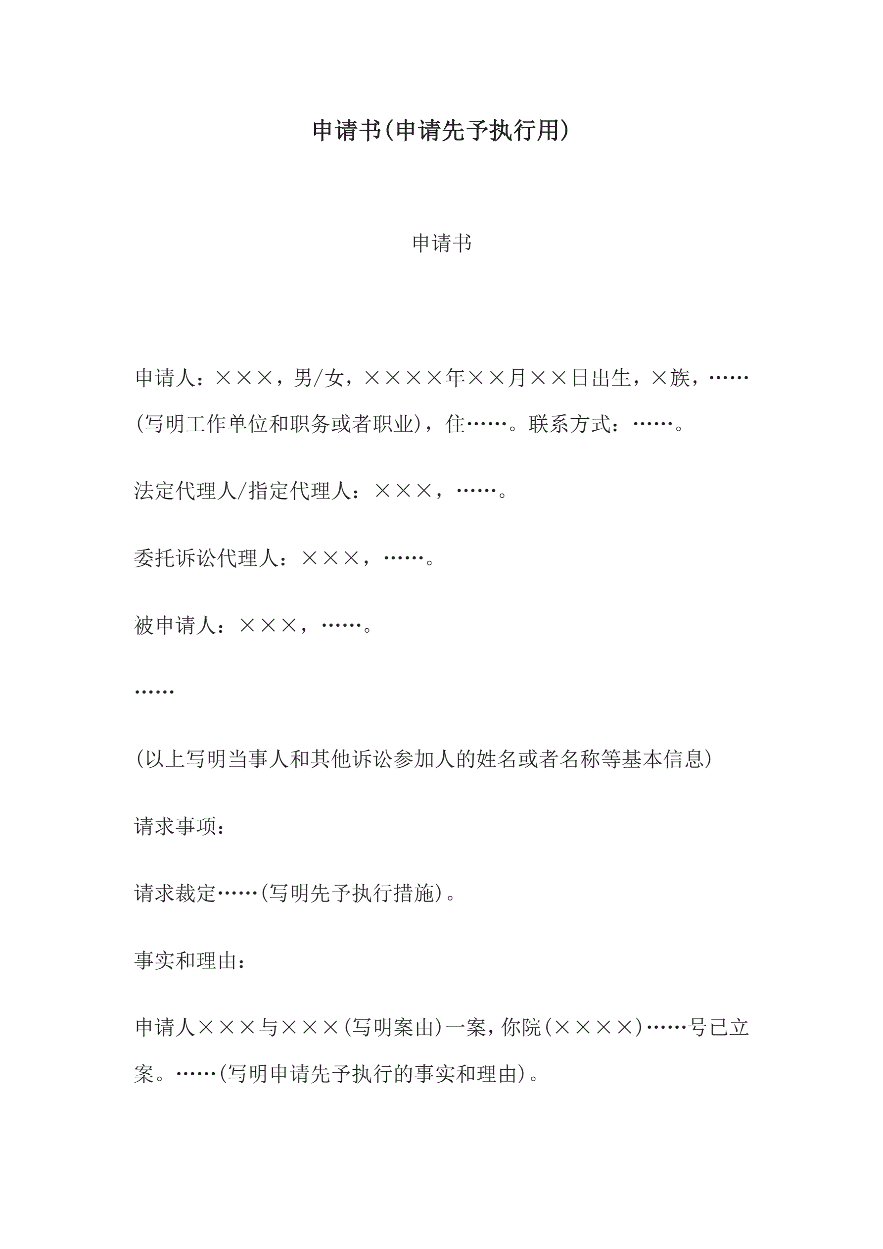 >申请书(申请先予执行用)