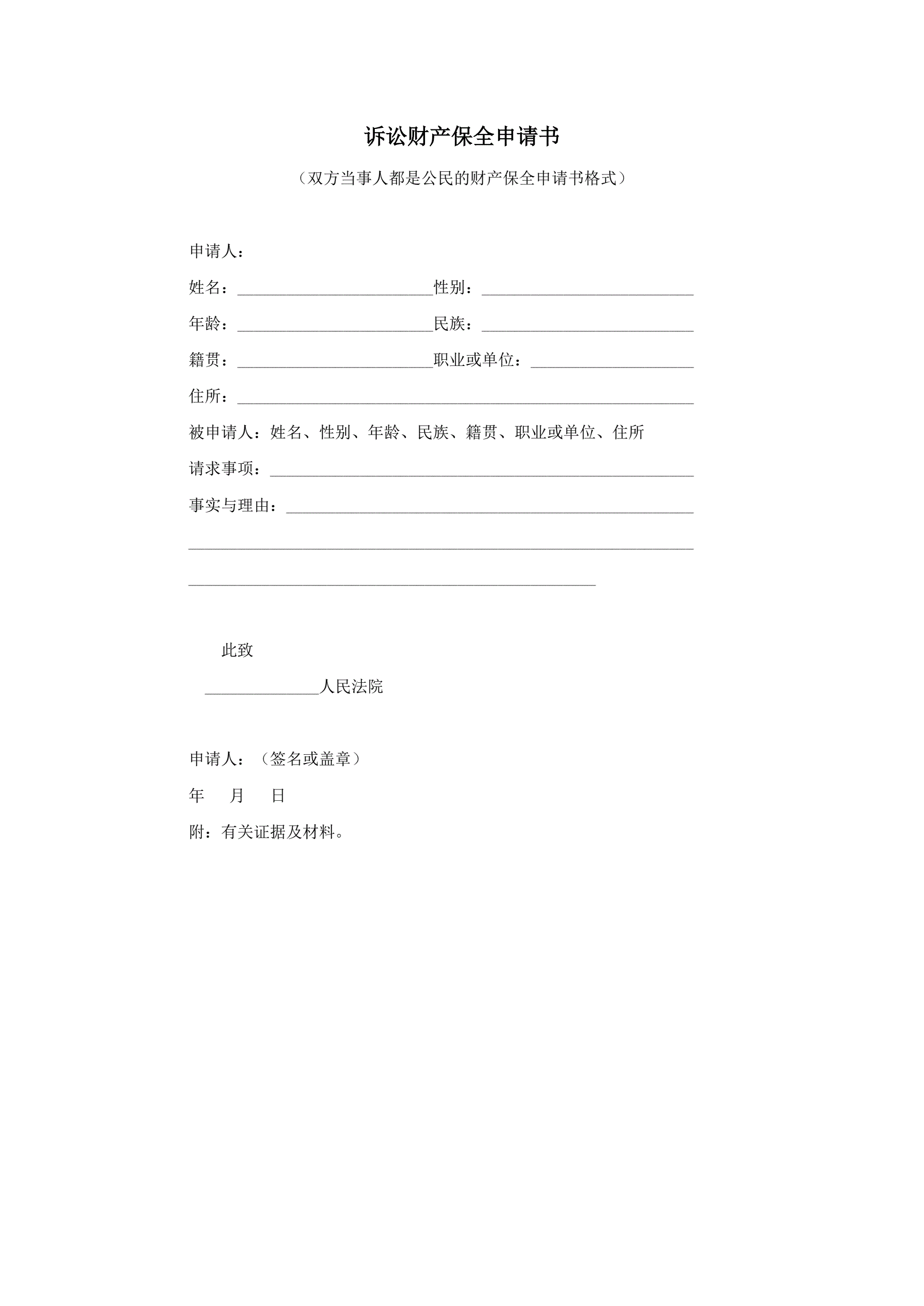 >诉讼财产保全申请书