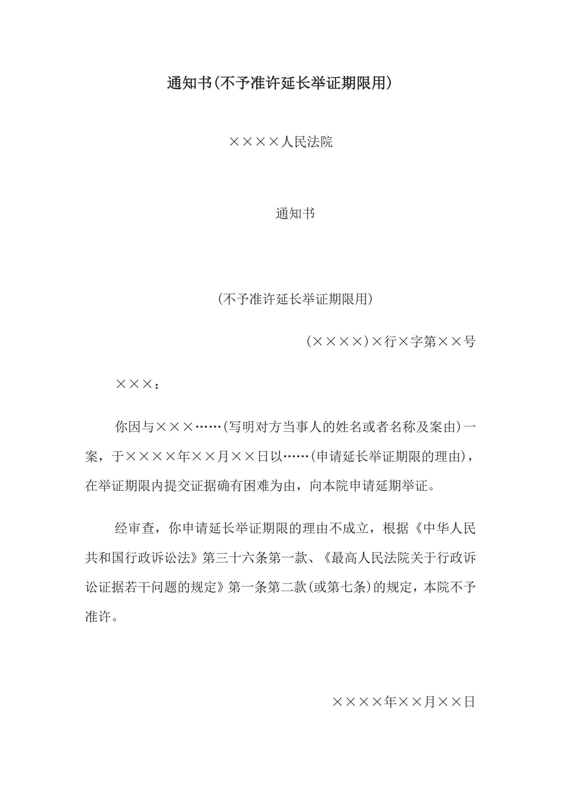 >通知书(不予准许延长举证期限用)