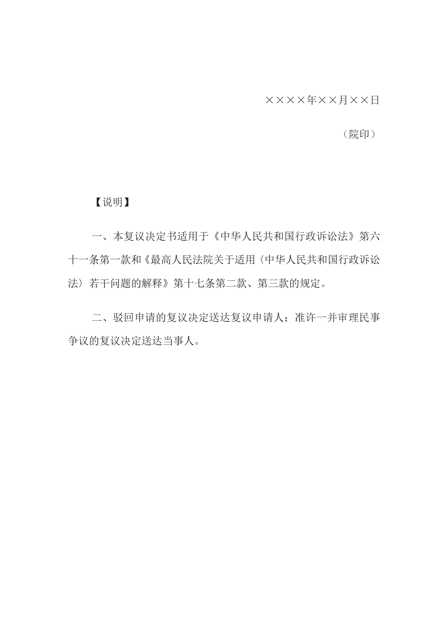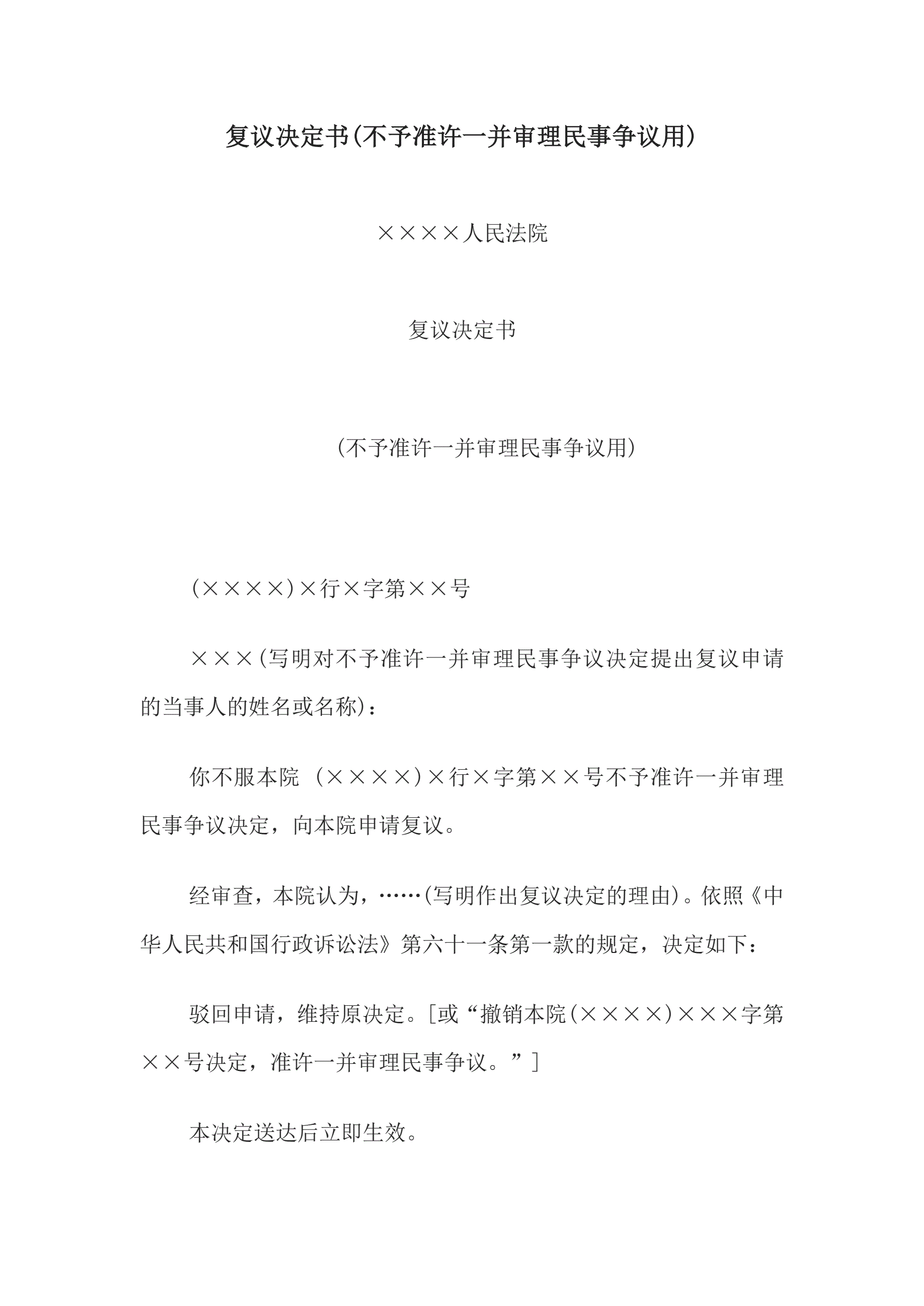 复议决定书(不予准许一并审理民事争议用)