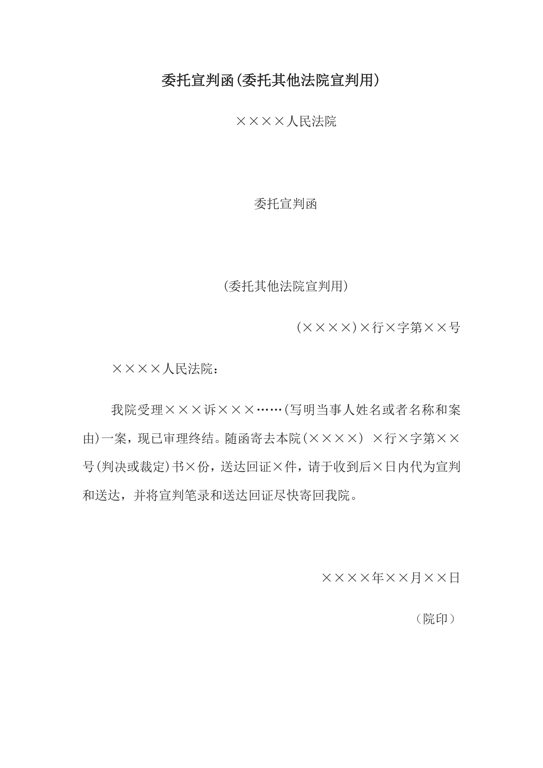 >委托宣判函(委托其他法院宣判用)