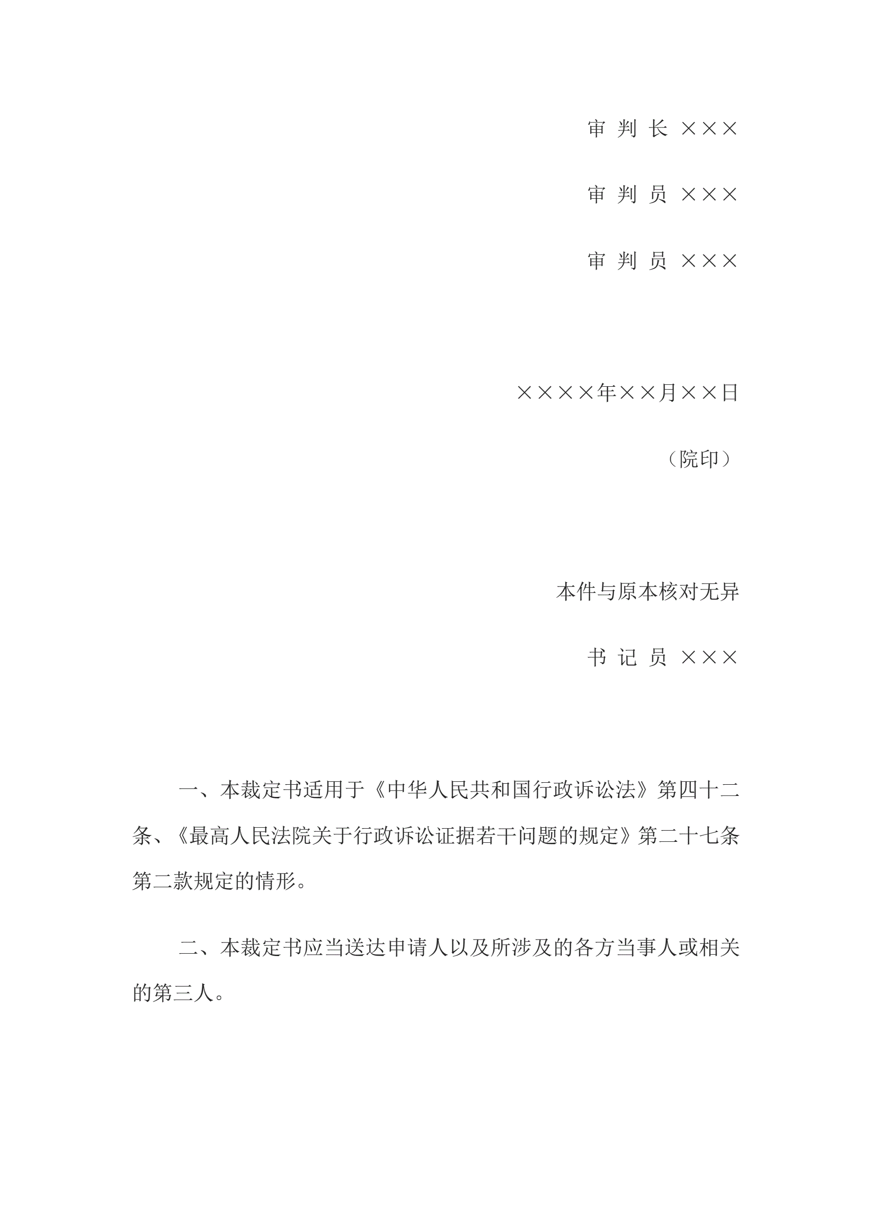 >行政裁定书(证据保全用)