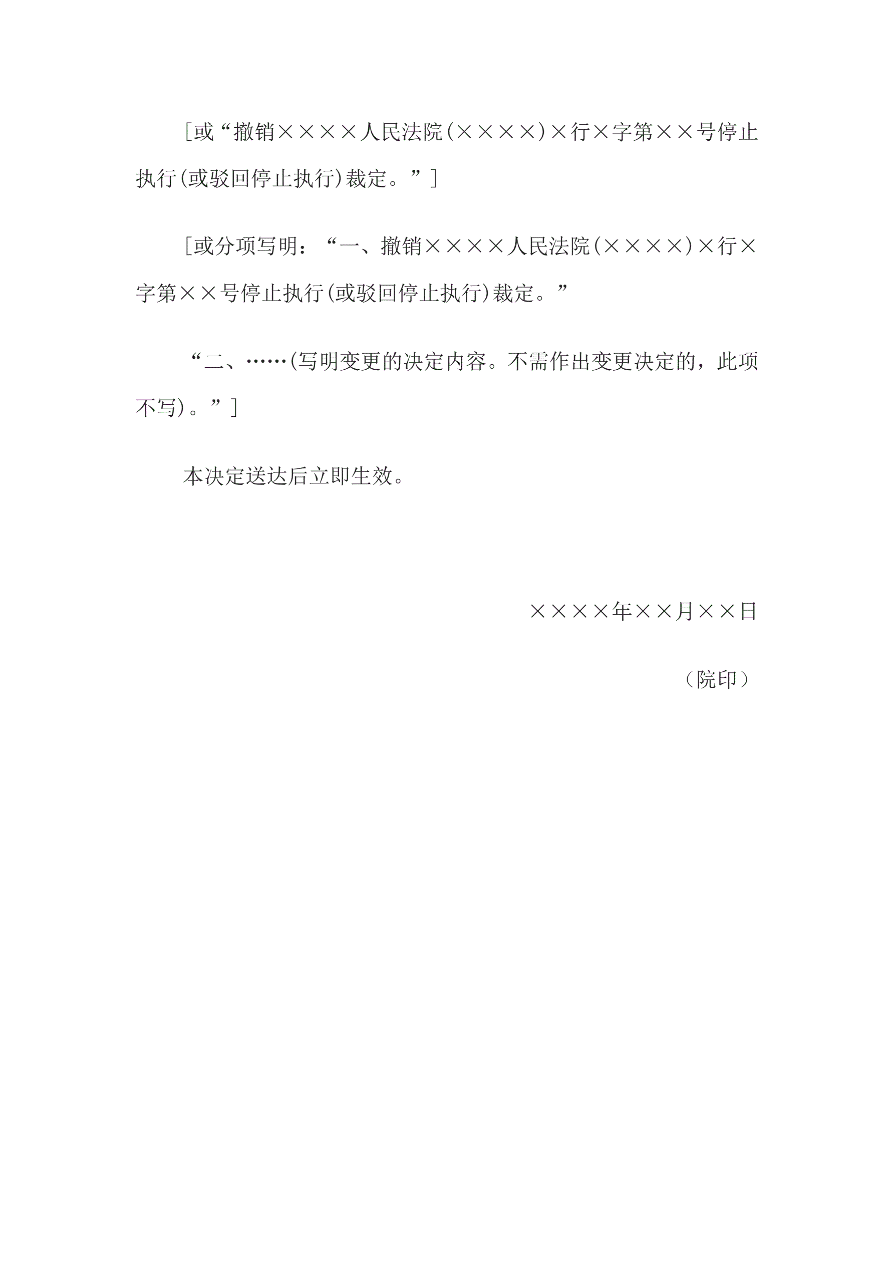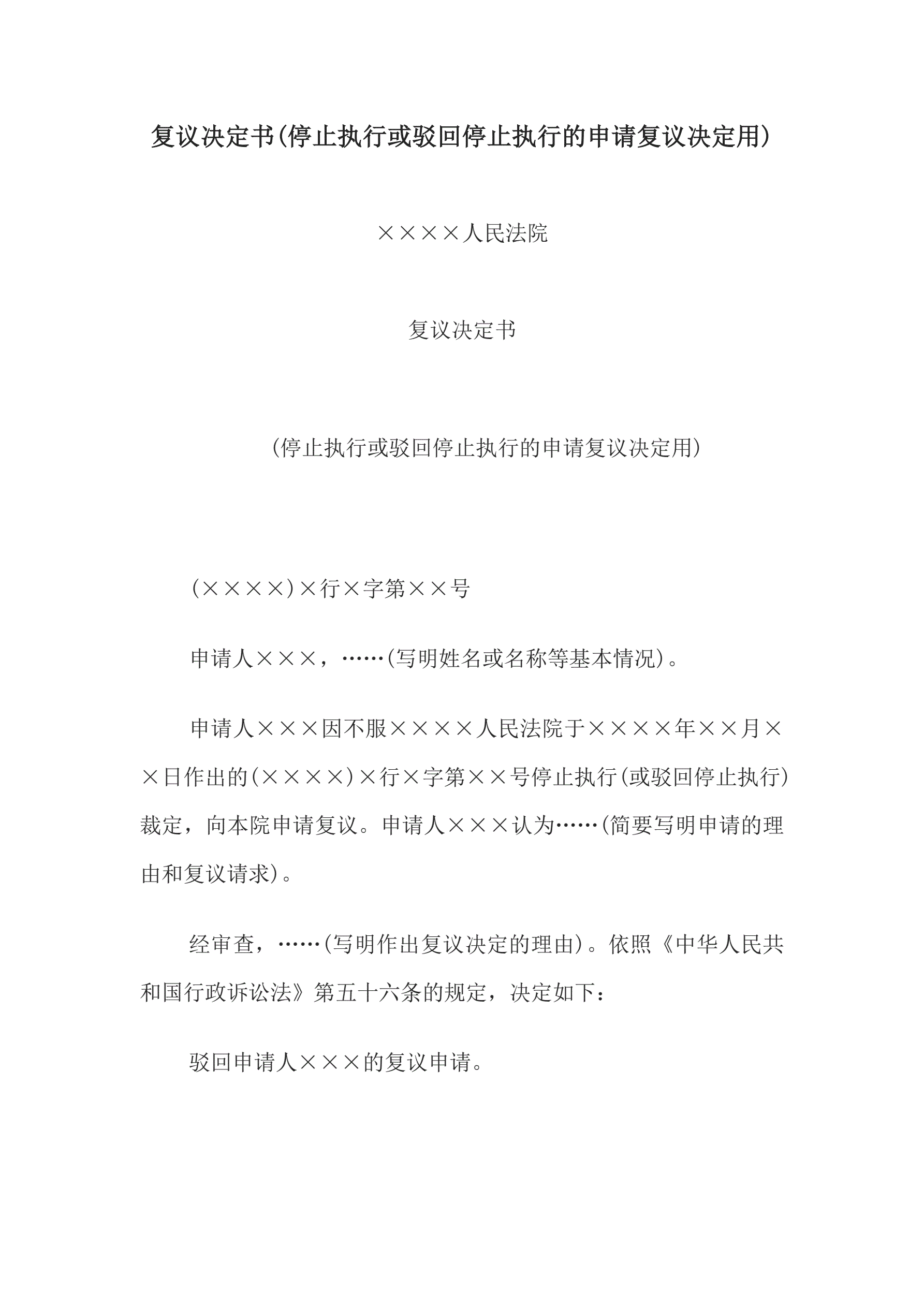 >复议决定书(停止执行或驳回停止执行的申请复议决定用)