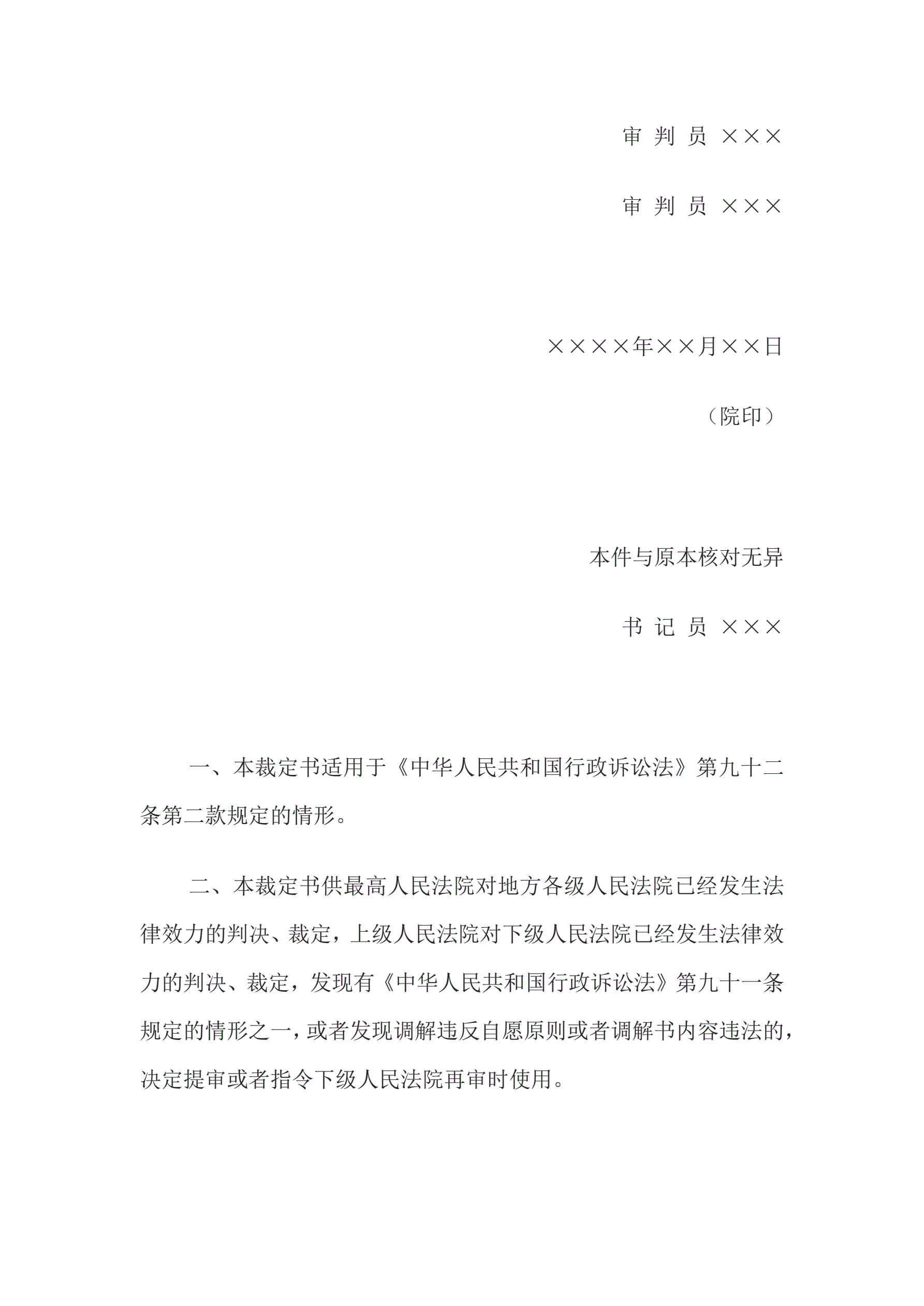 >行政裁定书(依职权提审或者指令下级法院再审用)