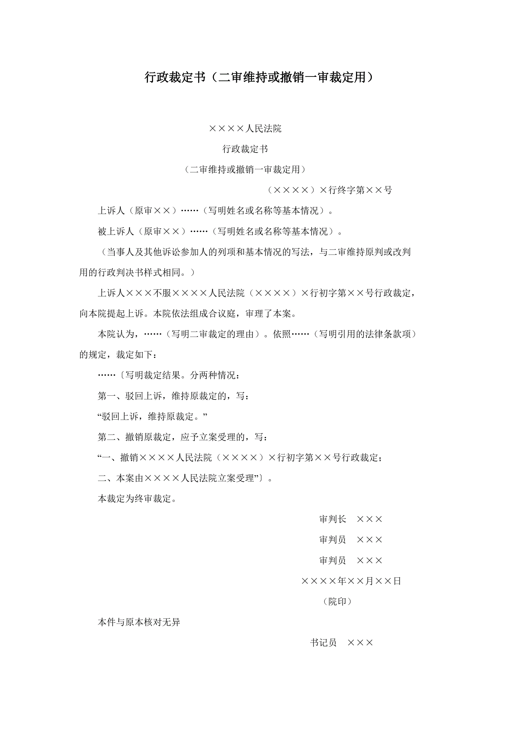 行政裁定书(二审维持或撤销一审裁定用)