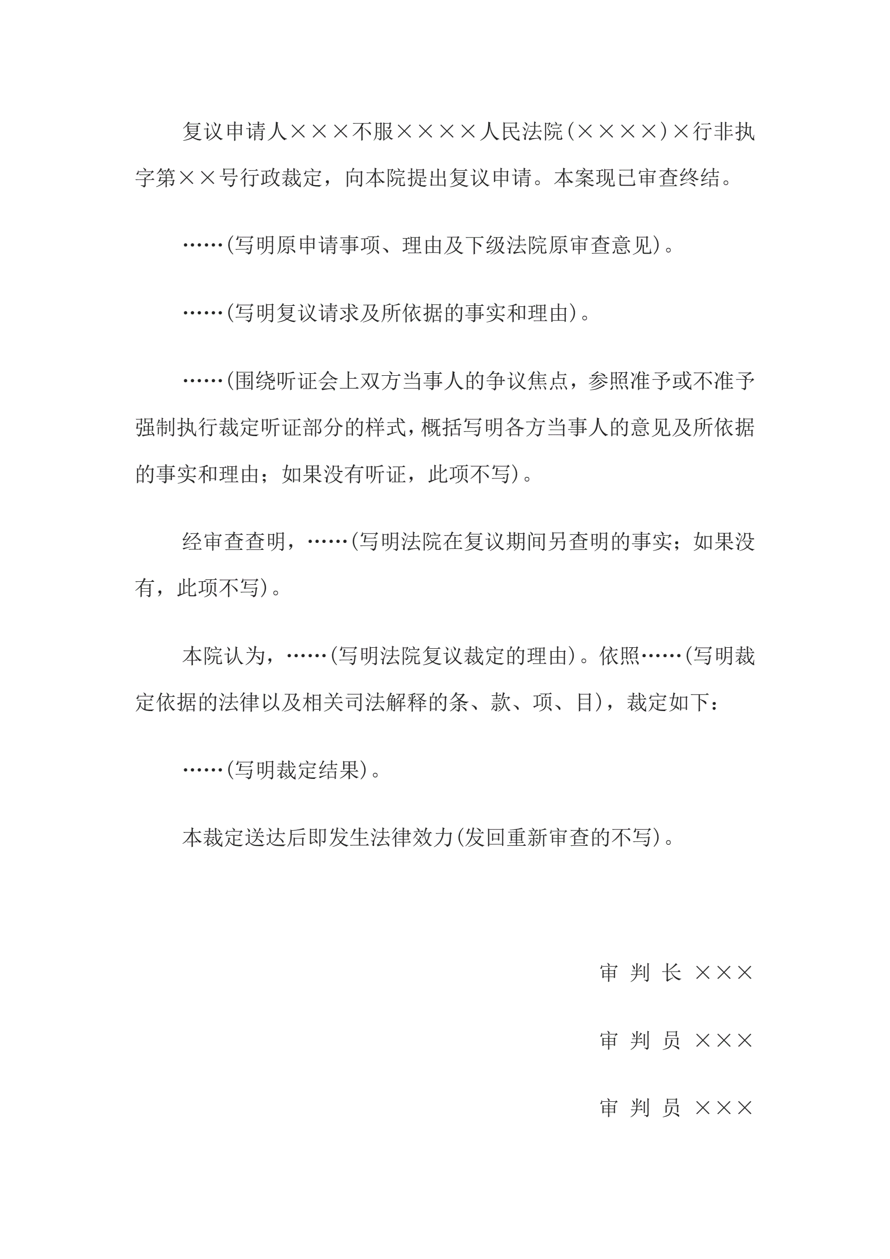 行政裁定书(上级法院复议非诉不予受理、不准予强制执行裁定用)