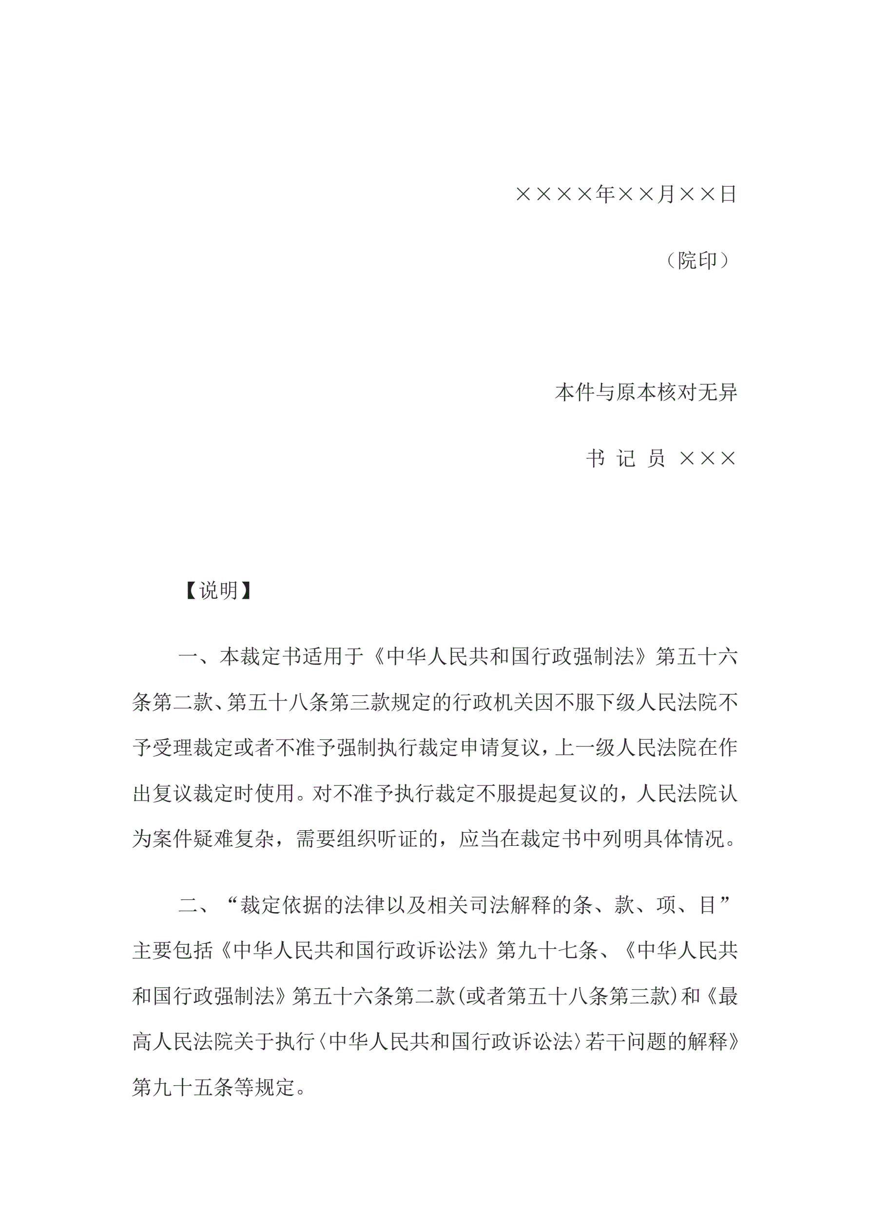 >行政裁定书(上级法院复议非诉不予受理、不准予强制执行裁定用)