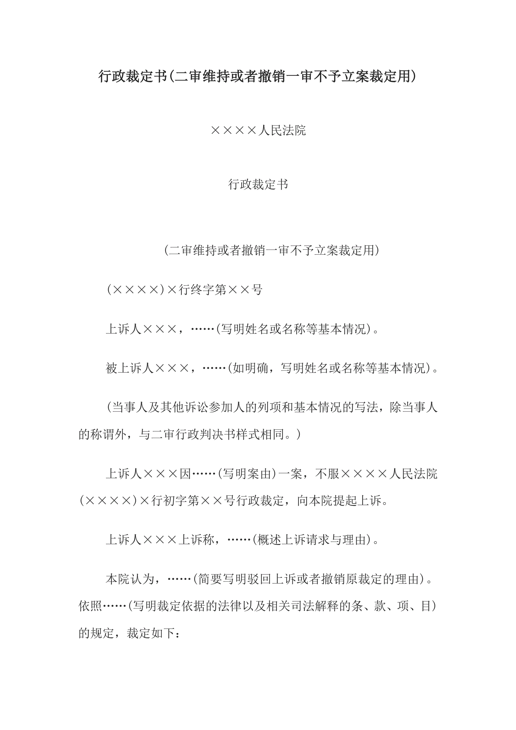 行政裁定书(二审维持或者撤销一审不予立案裁定用)