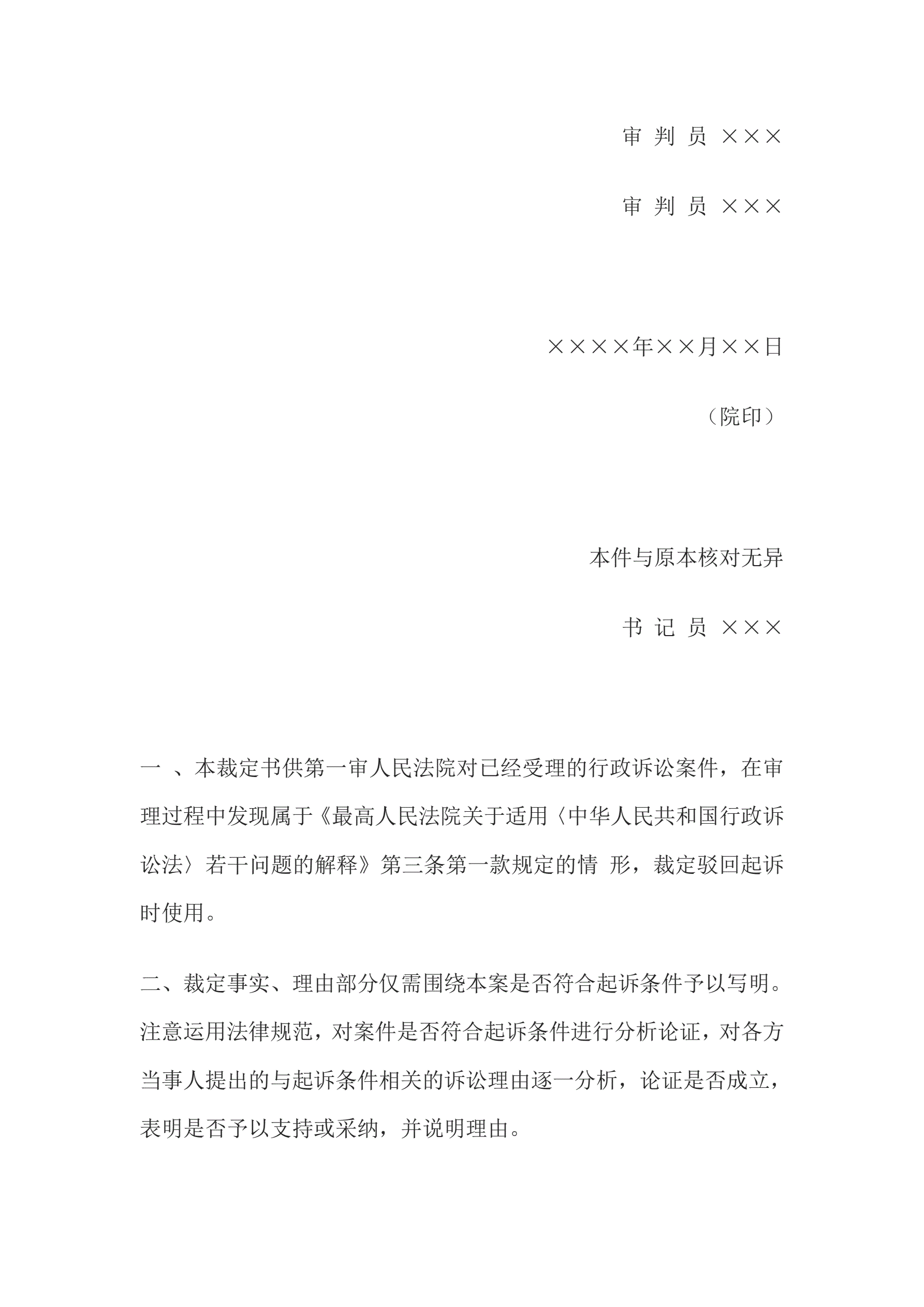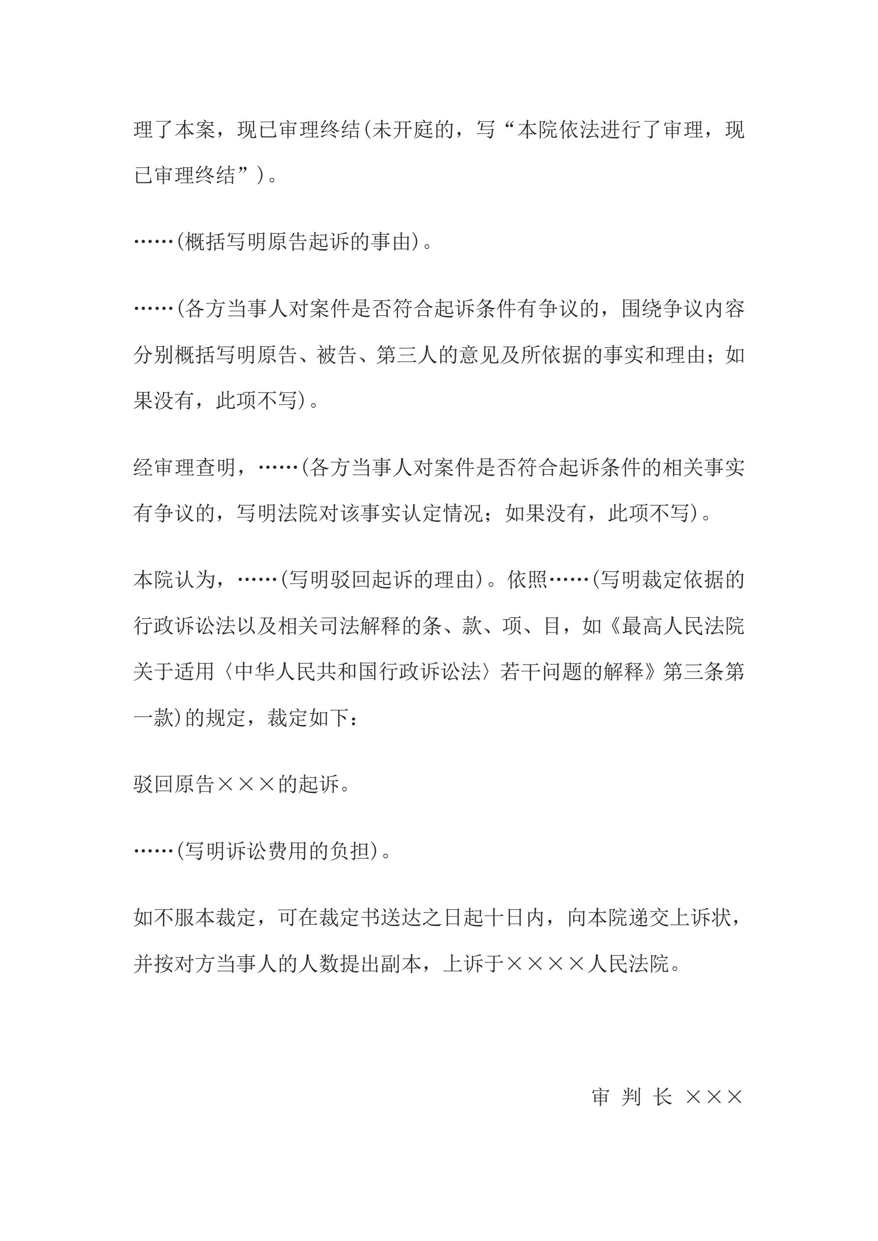 >行政裁定书(驳回起诉用)