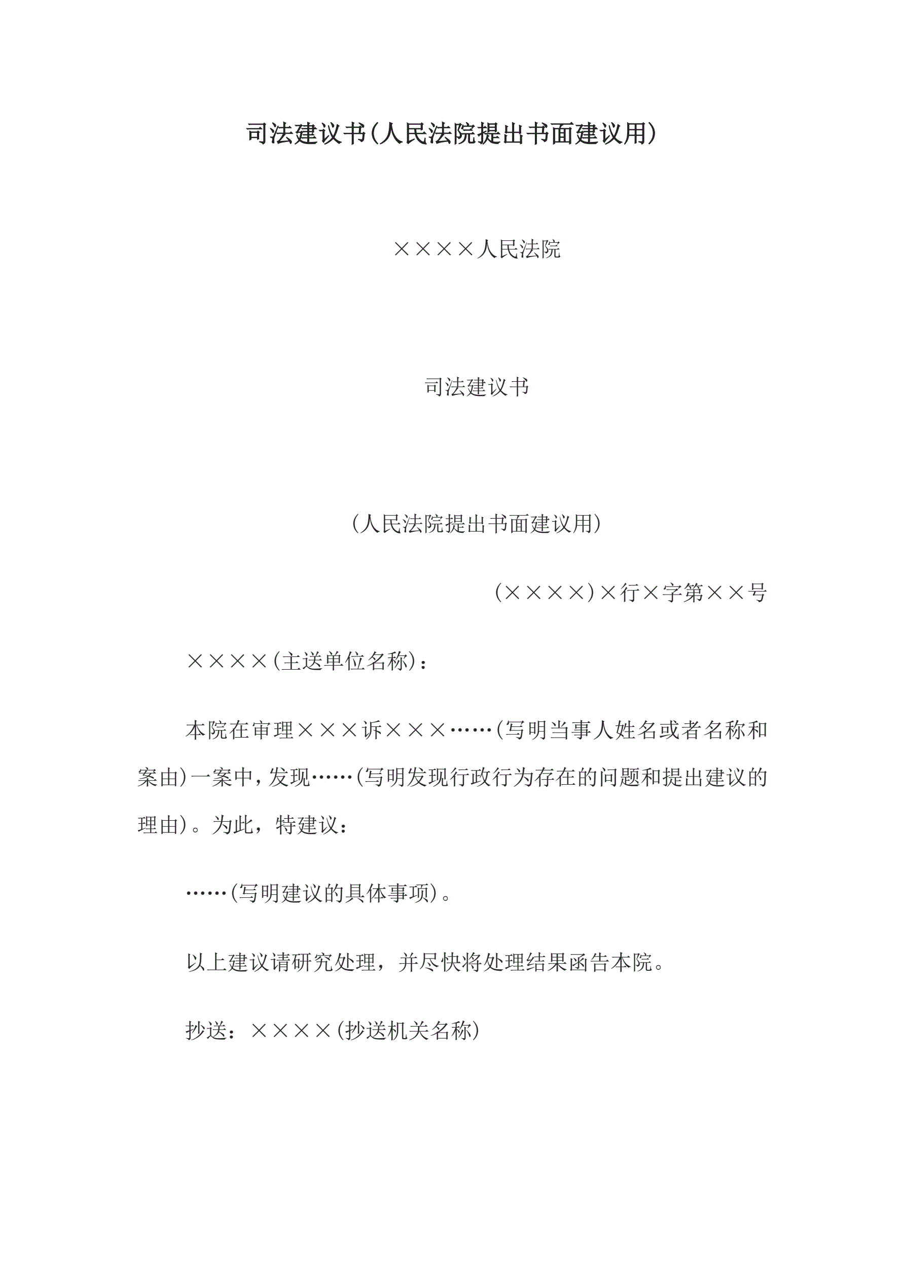 >司法建议书(人民法院提出书面建议用)