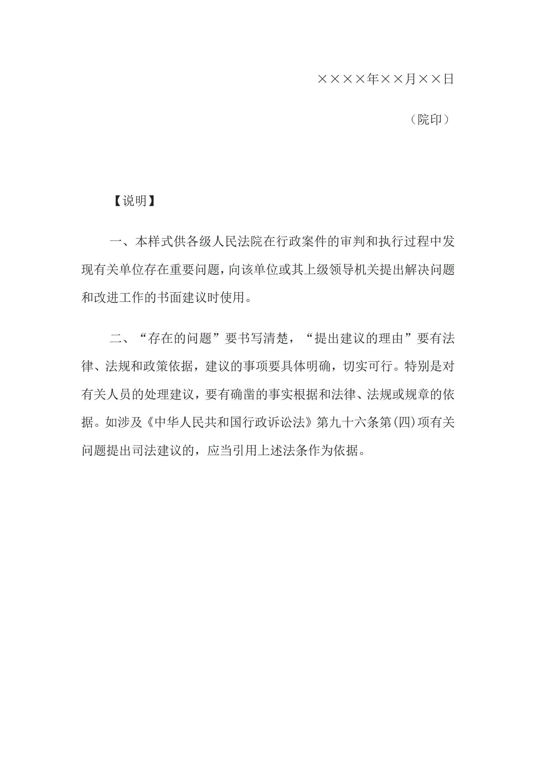 司法建议书(人民法院提出书面建议用)