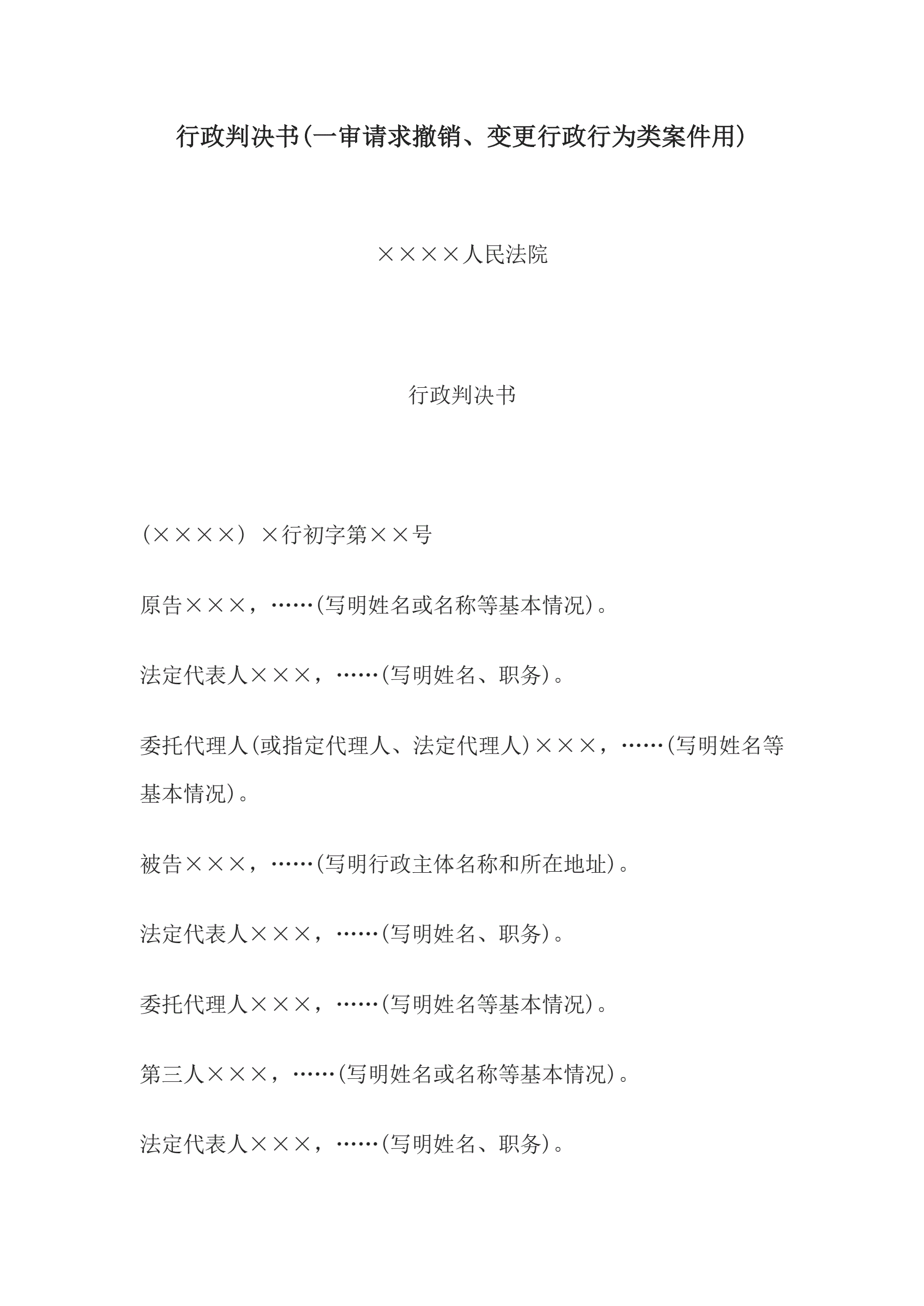 >行政判决书(一审请求撤销、变更行政行为类案件用)