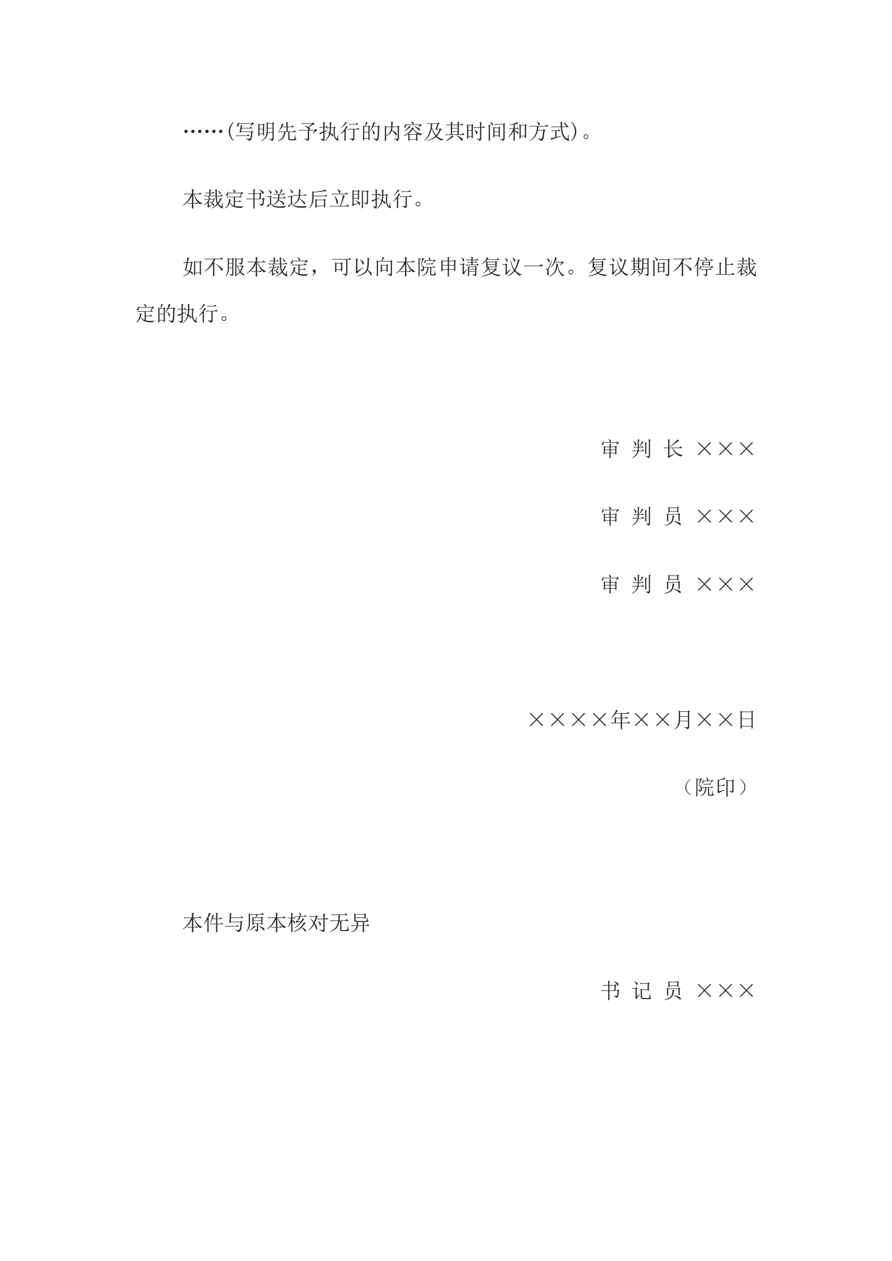 >行政裁定书(先予执行用)