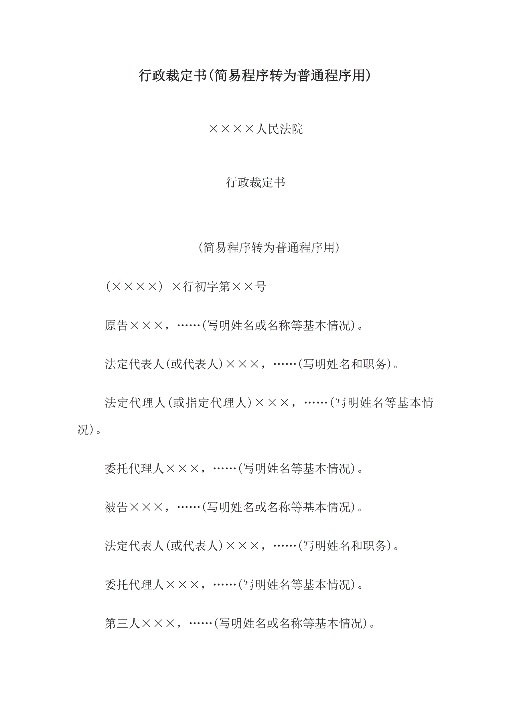 合同名称:行政裁定书(简易程序转为普通程序用)