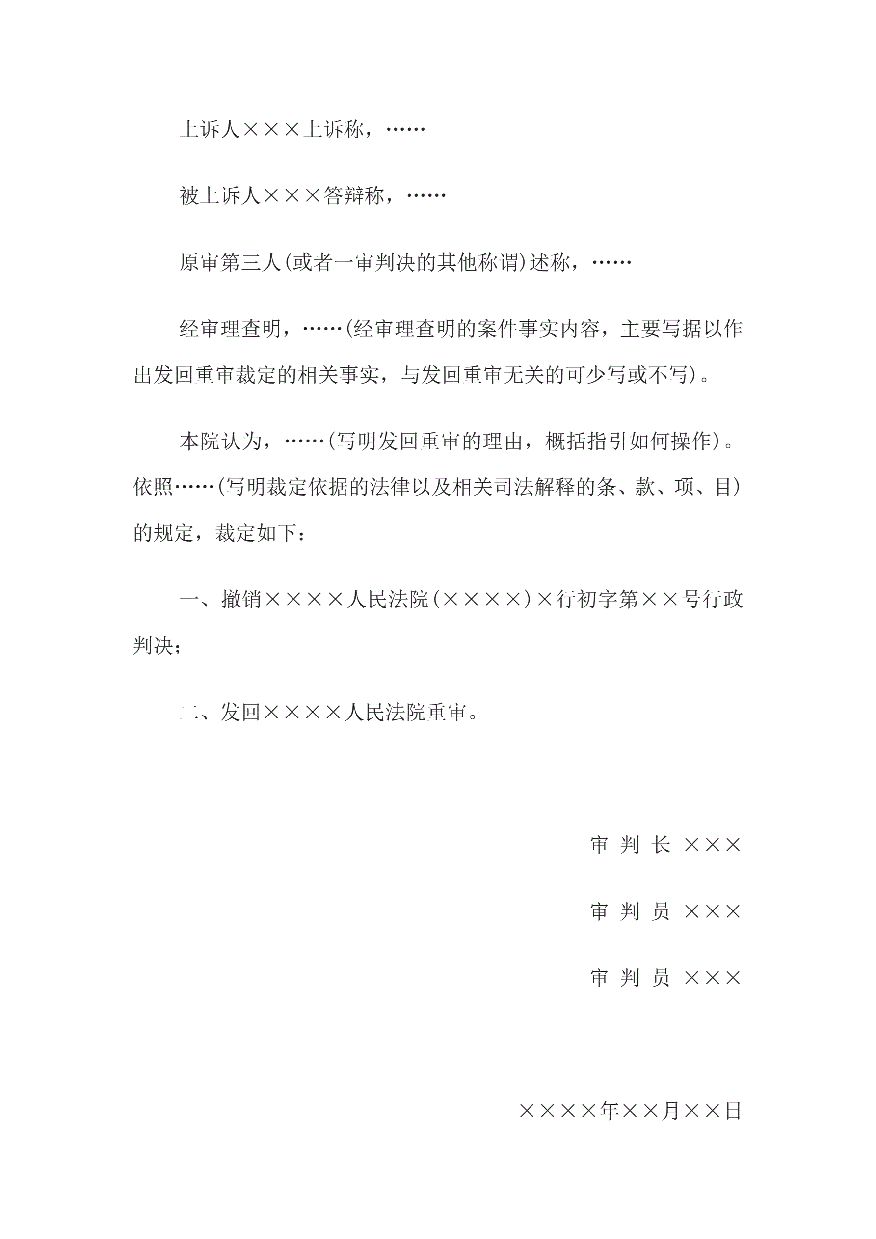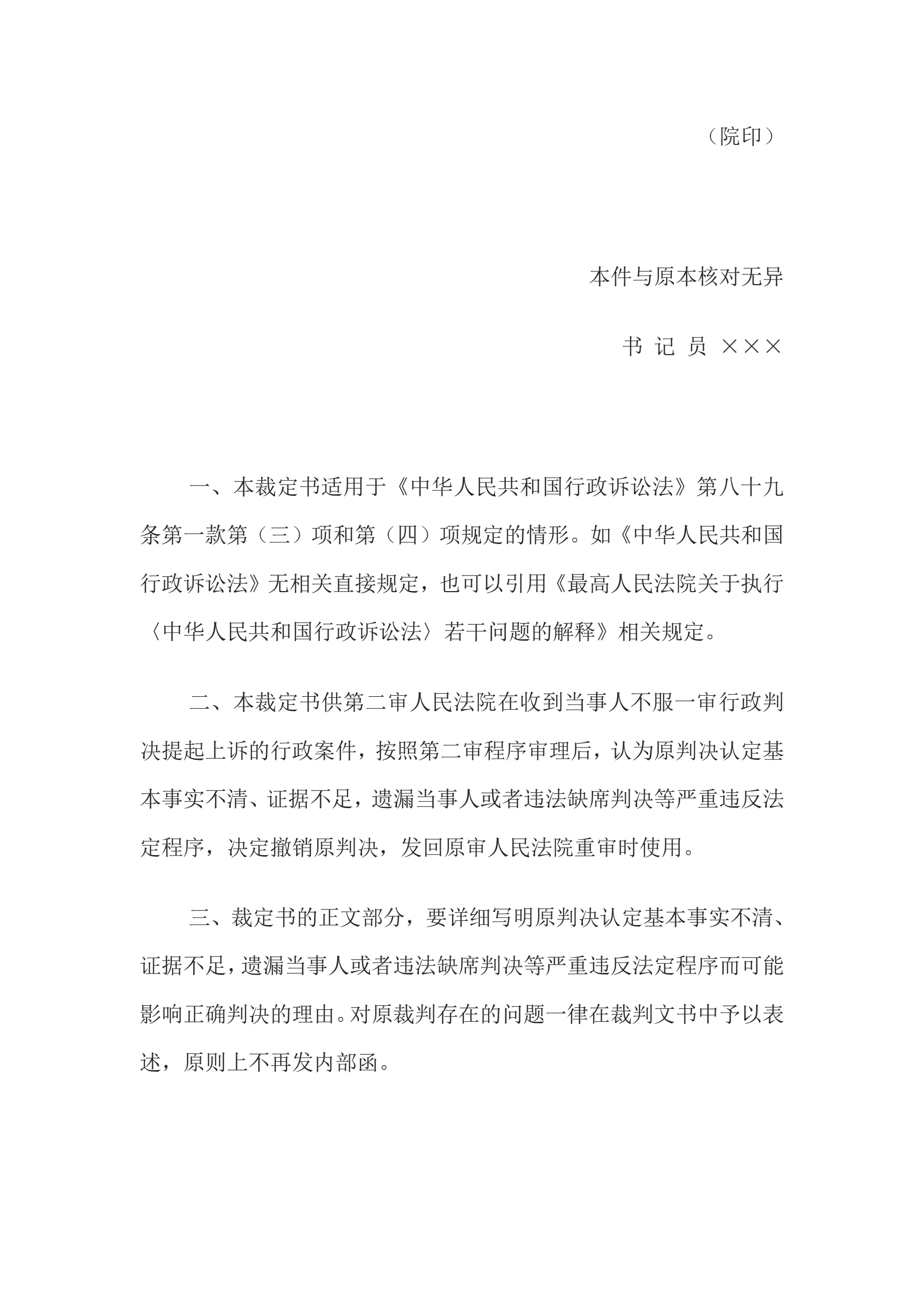 >行政裁定书(二审发回重审用)