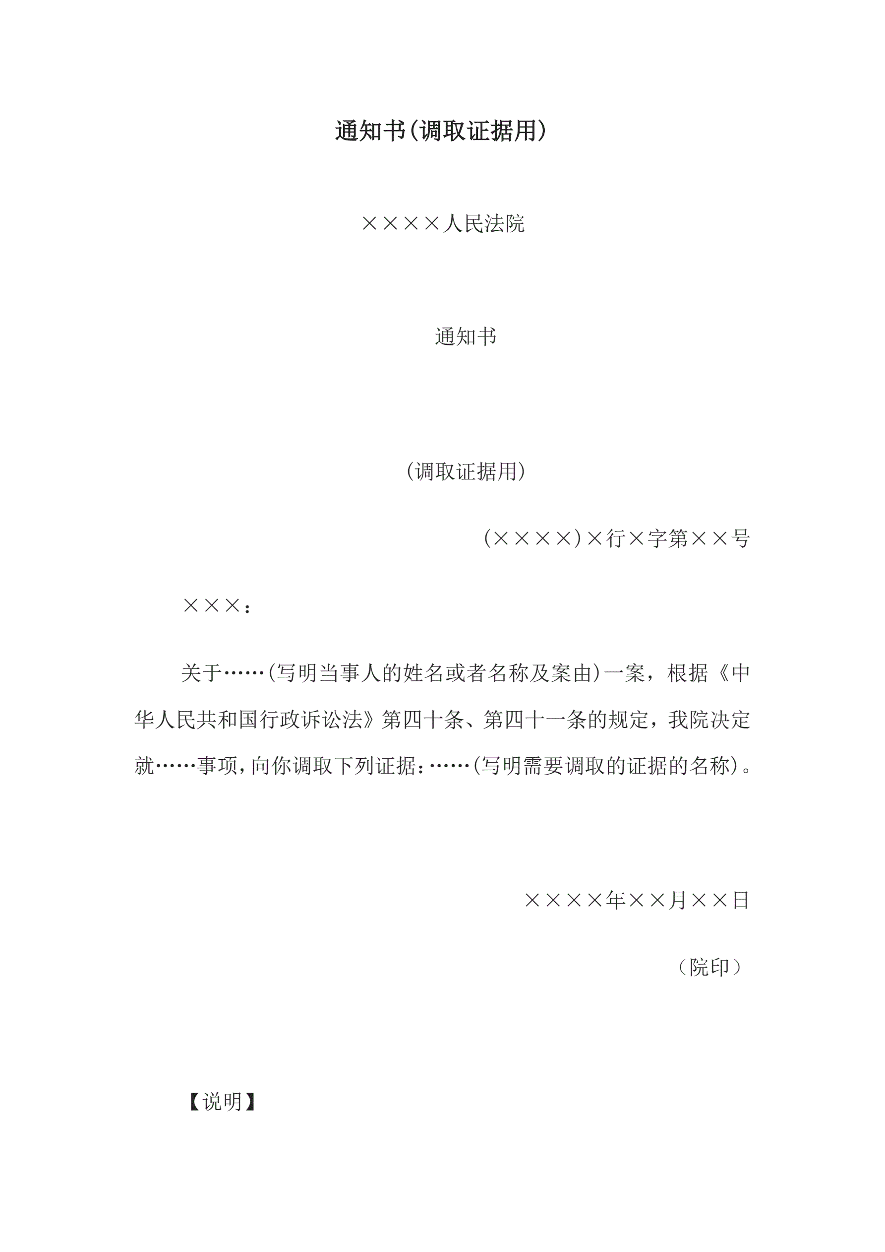 >通知书(调取证据用)