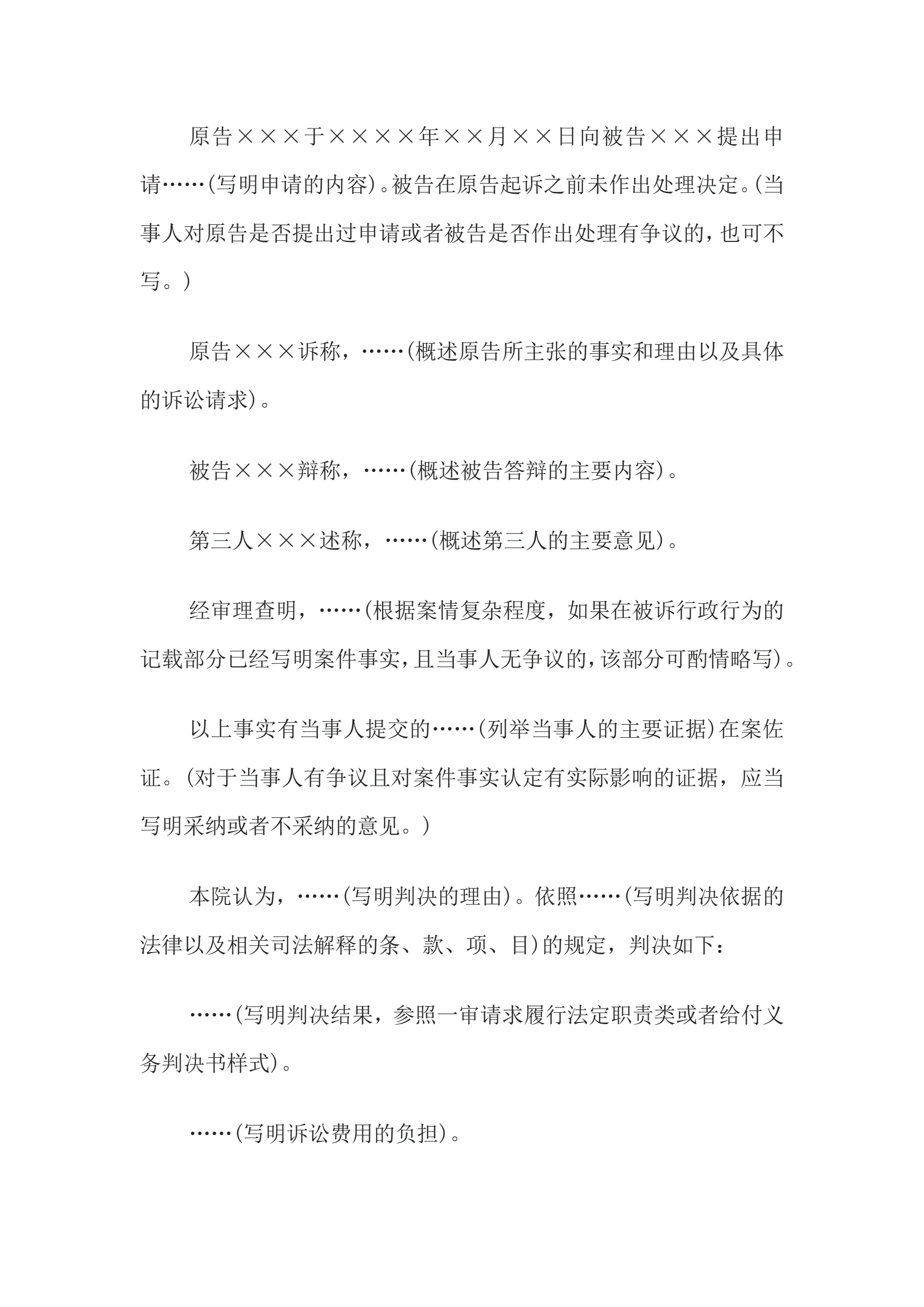 >行政判决书(一审请求履行法定职责或给付类简易程序案件用)