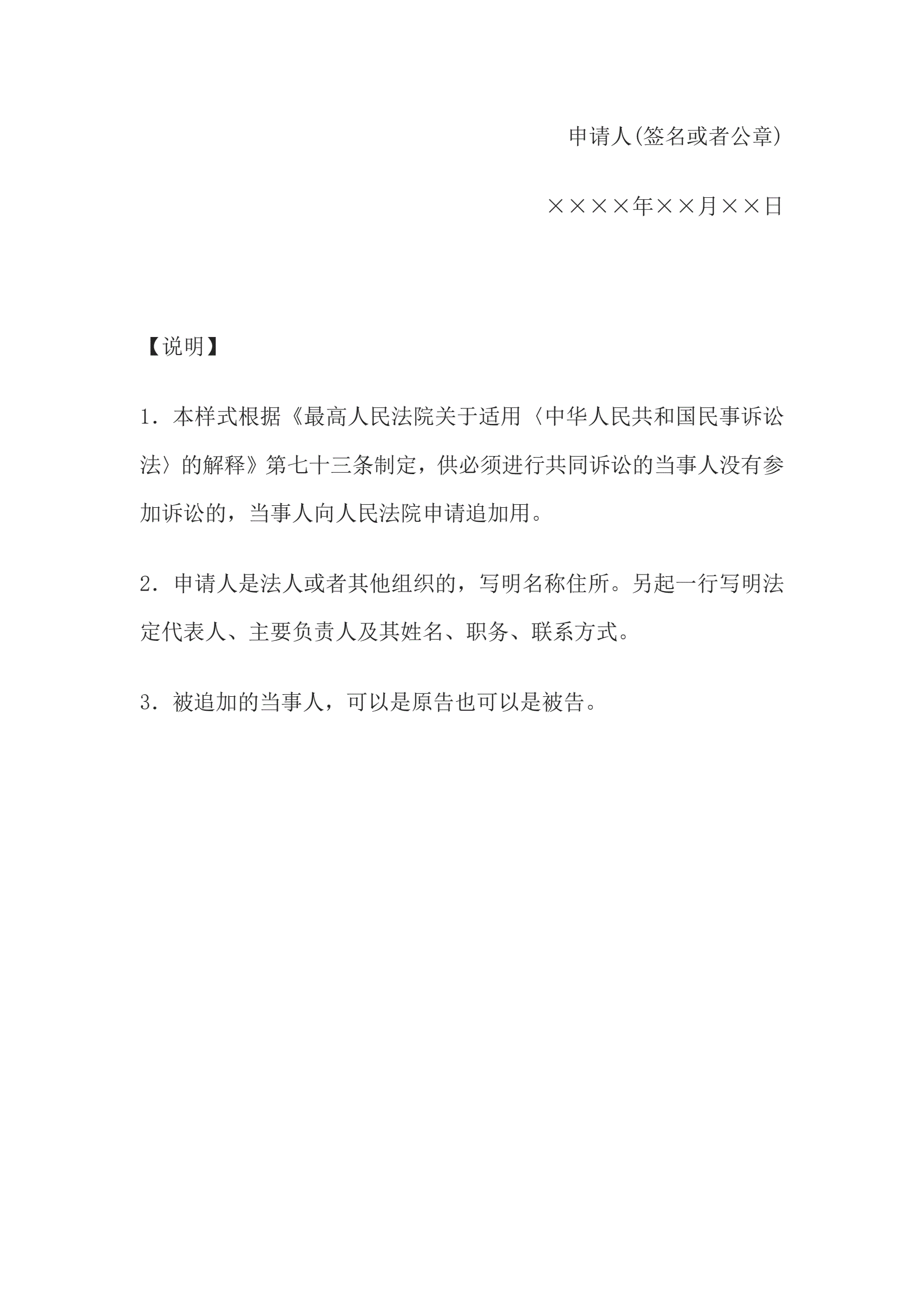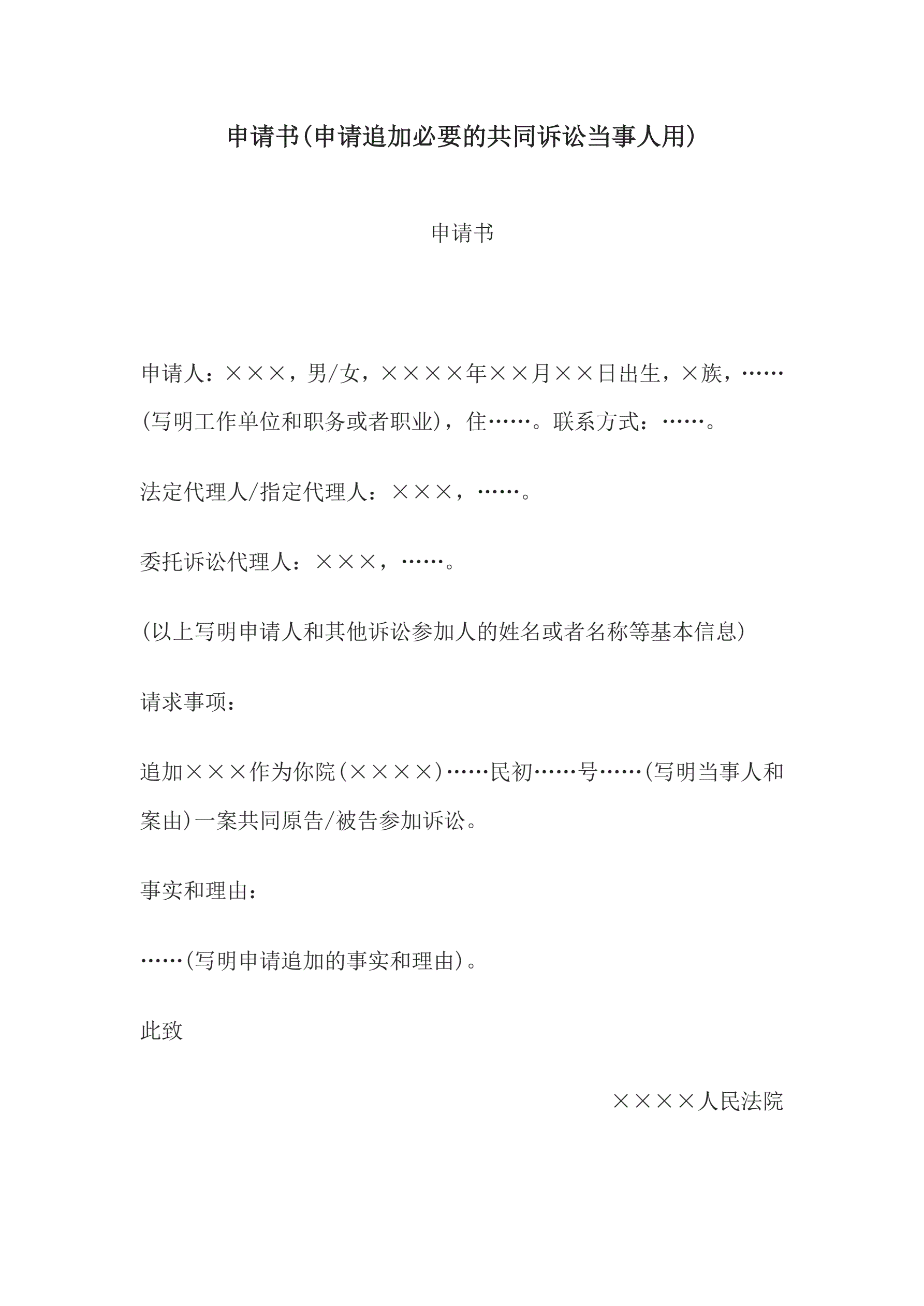 合同名称:申请书(申请追加必要的共同诉讼当事人用)