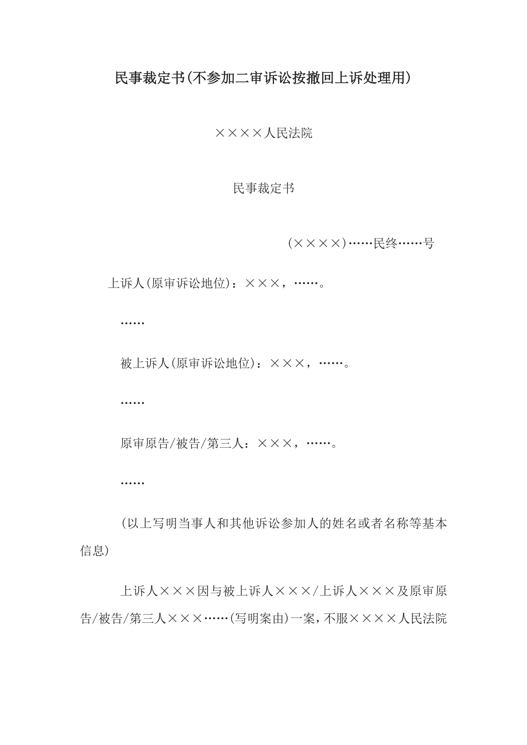 >民事裁定书(不参加二审诉讼按撤回上诉处理用)
