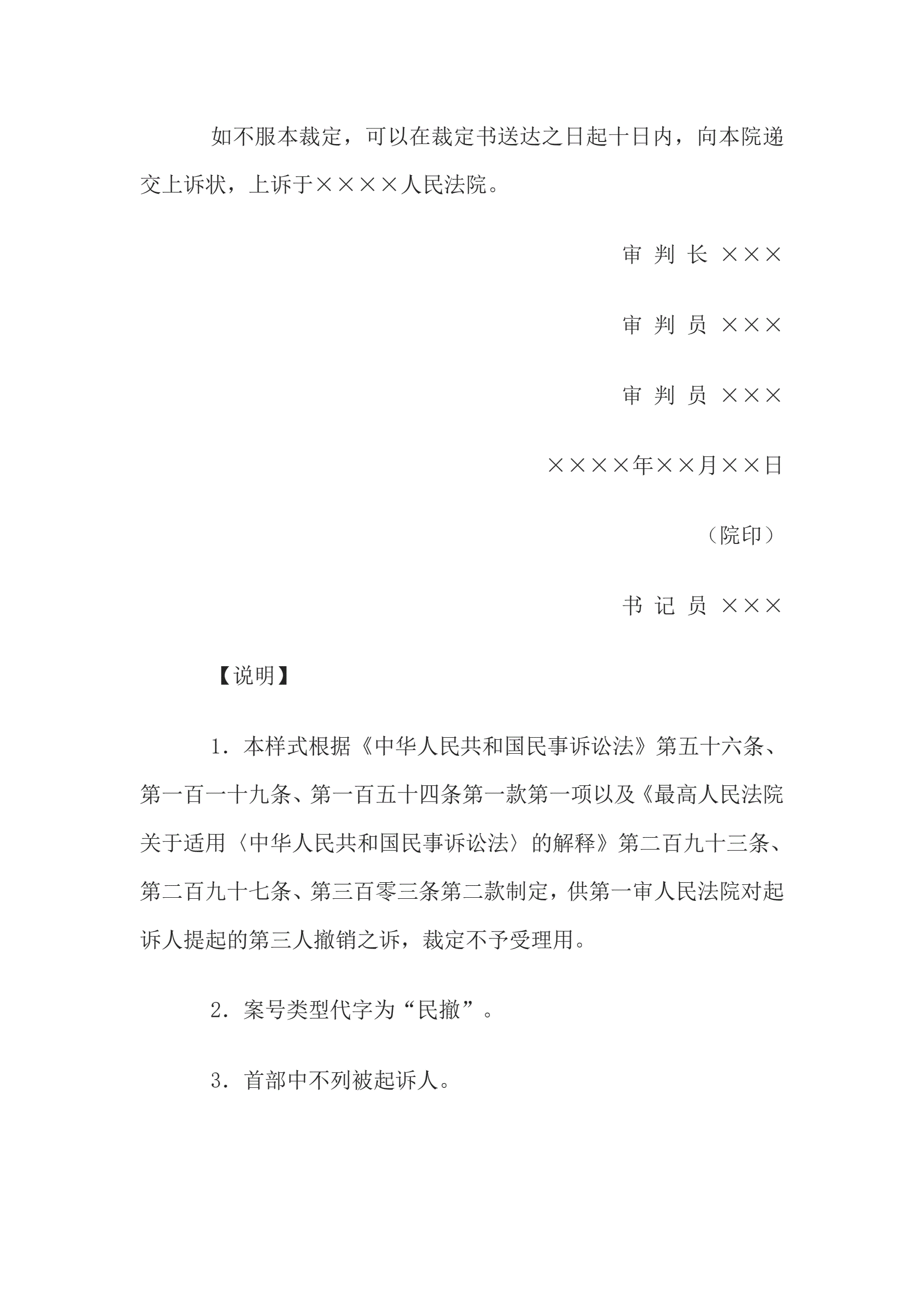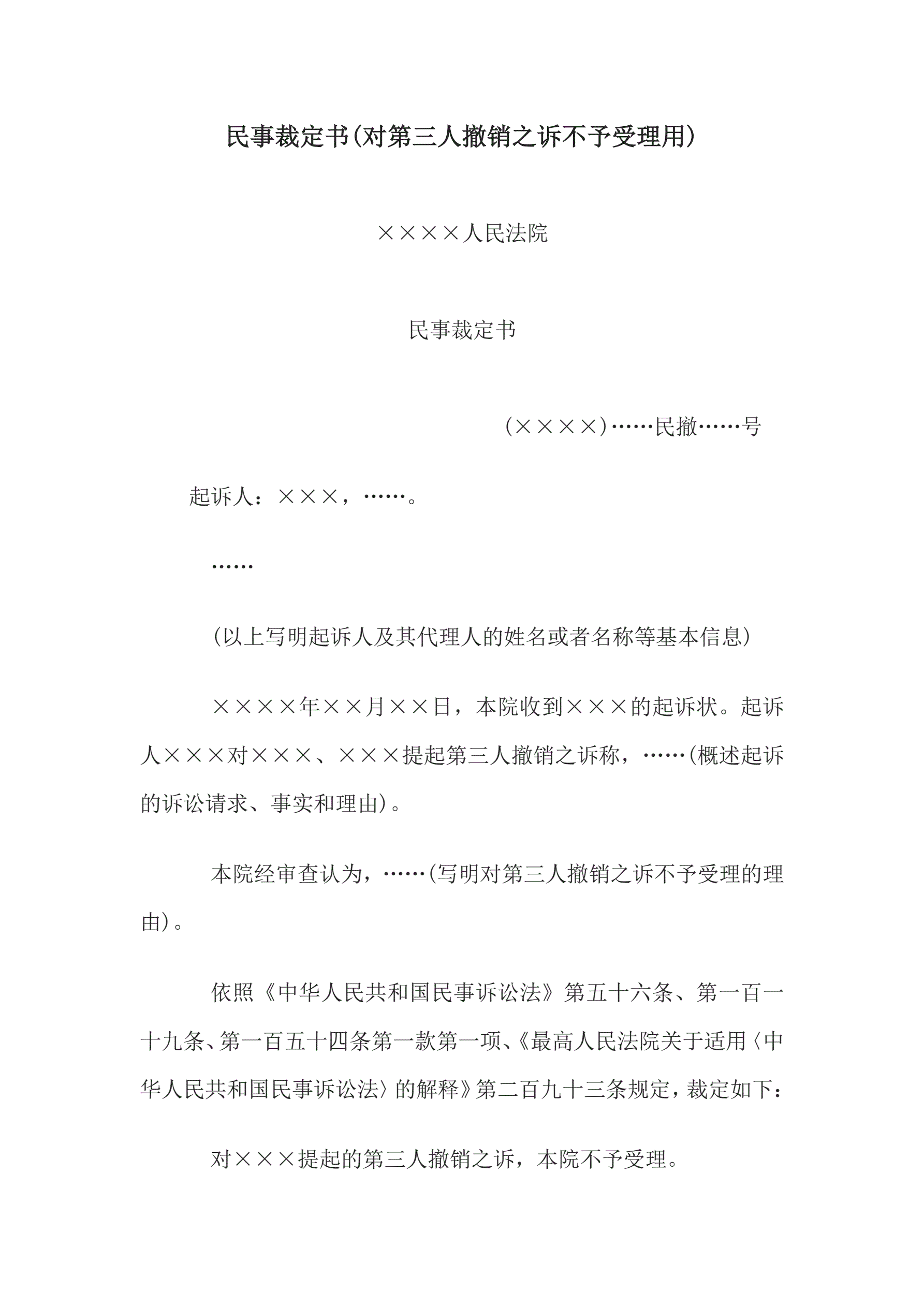 >民事裁定书(对第三人撤销之诉不予受理用)
