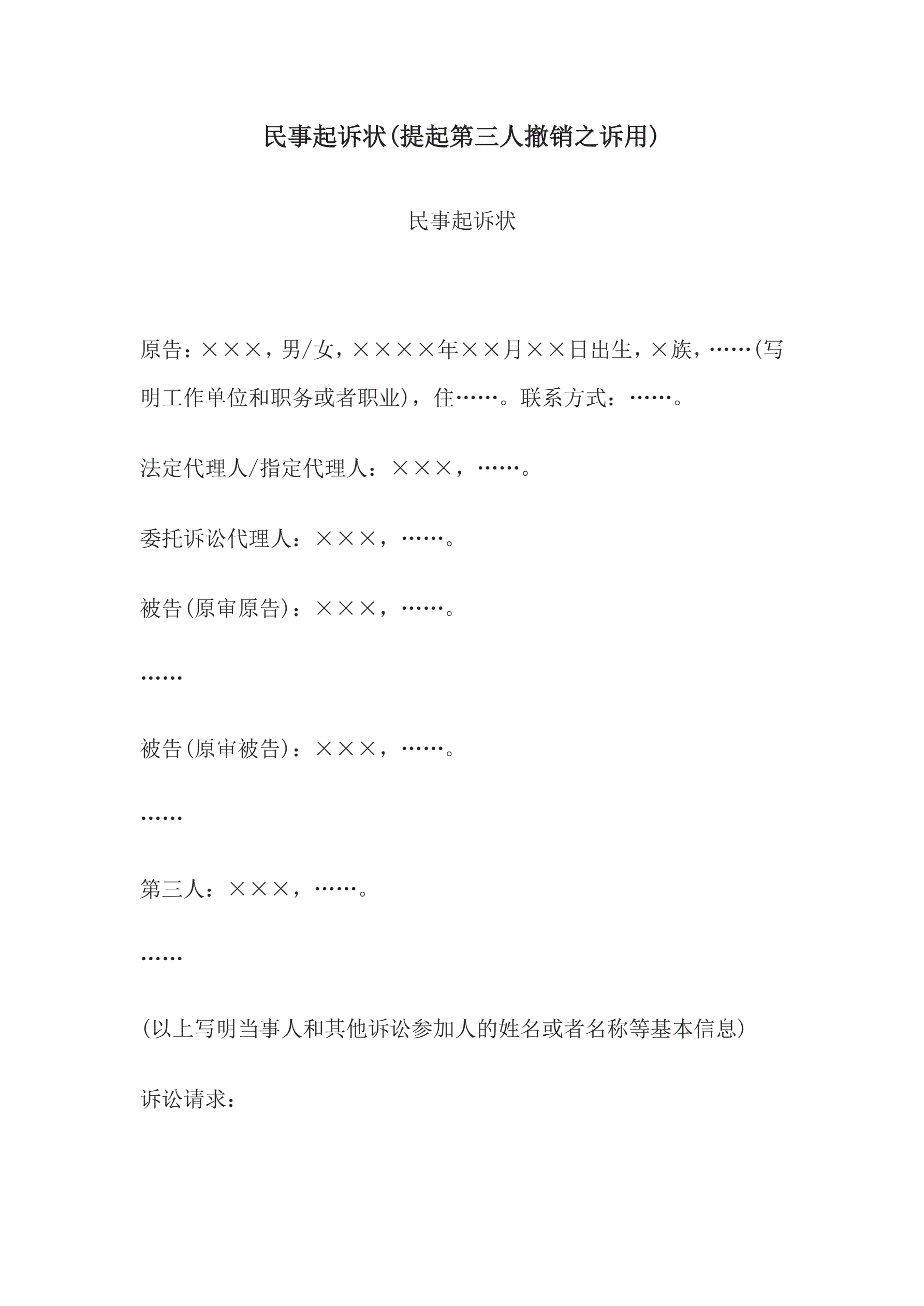 >民事起诉状(提起第三人撤销之诉用)