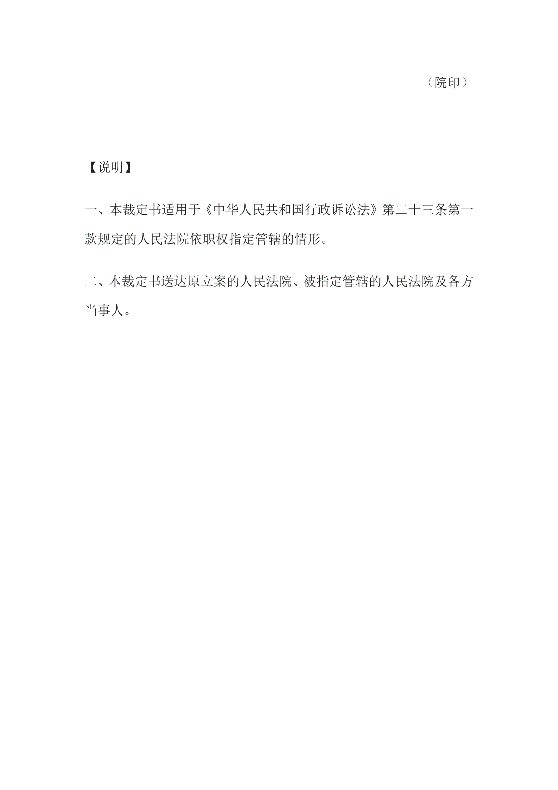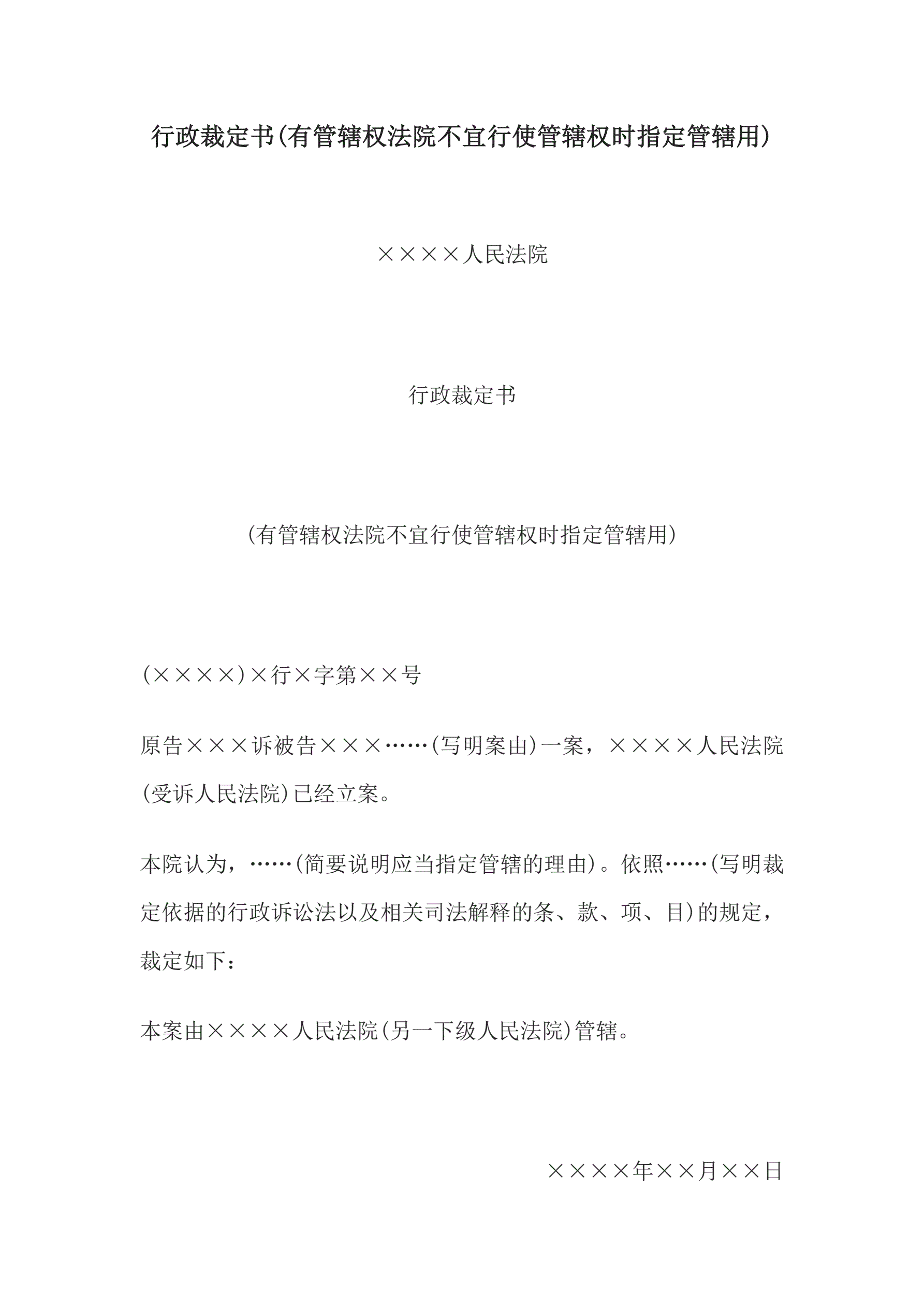 >行政裁定书(有管辖权法院不宜行使管辖权时指定管辖用)